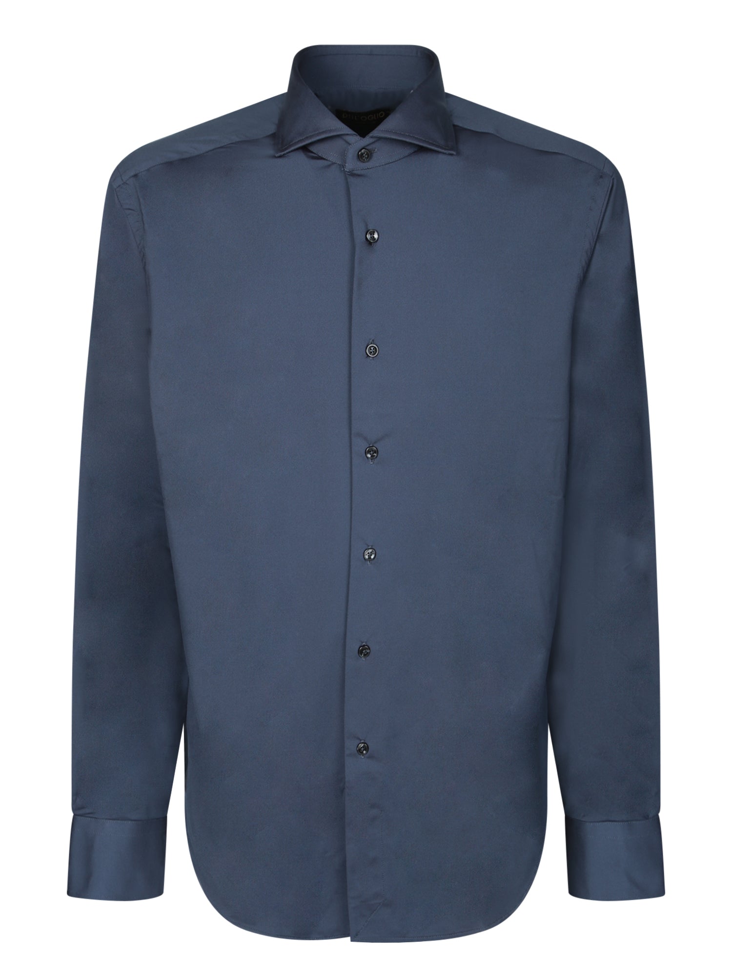 This blue shirt by Dell'Oglio, model Active, features a clean and sophisticated design, perfect for both formal and casual chic looks.
