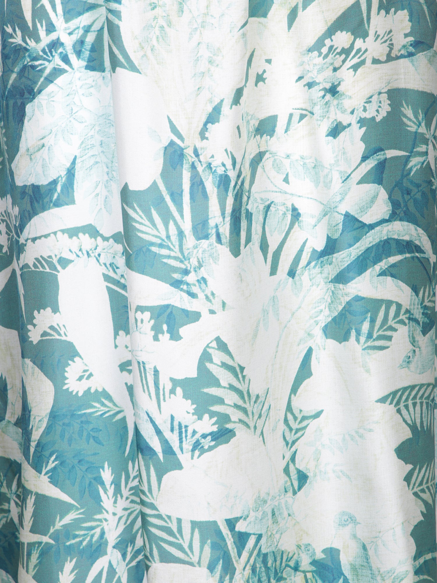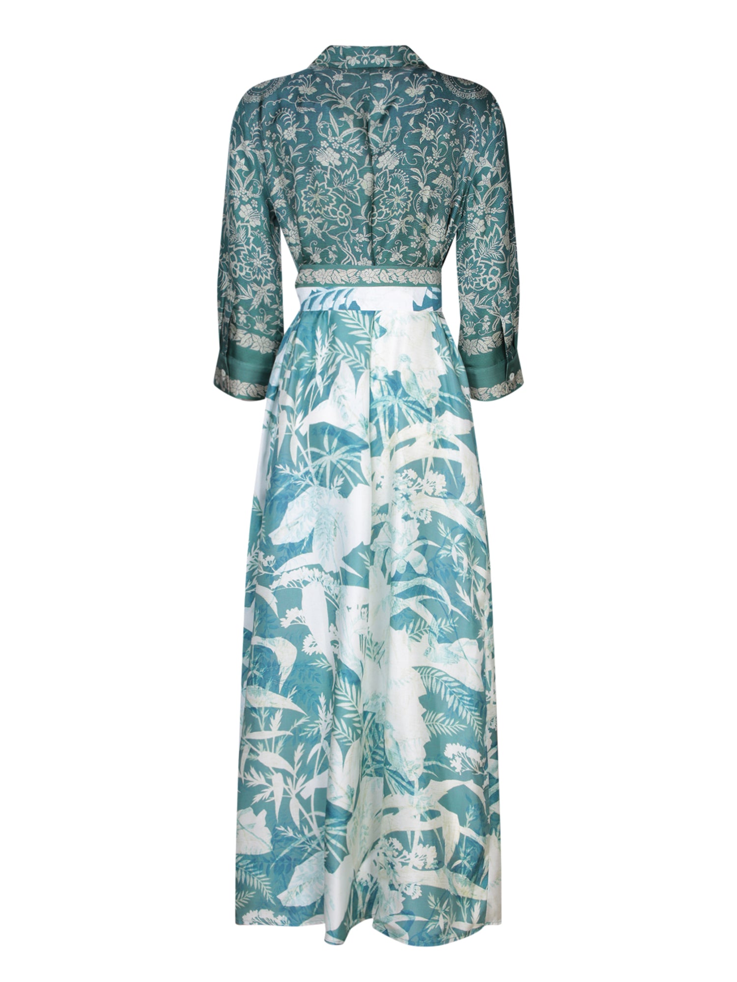 Belt waistband. Button fastening. Side pockets. Loose fit. Long sleeves.