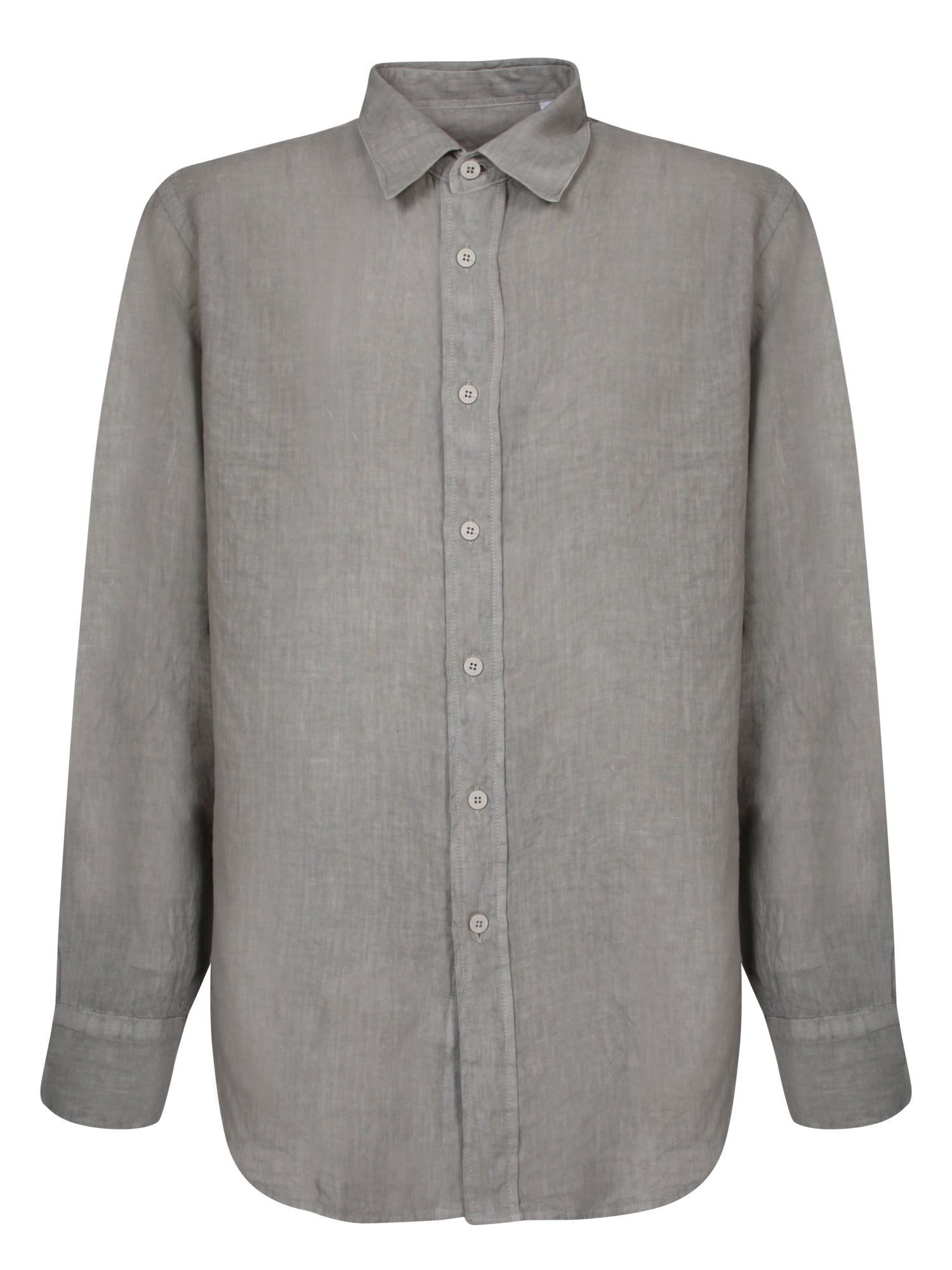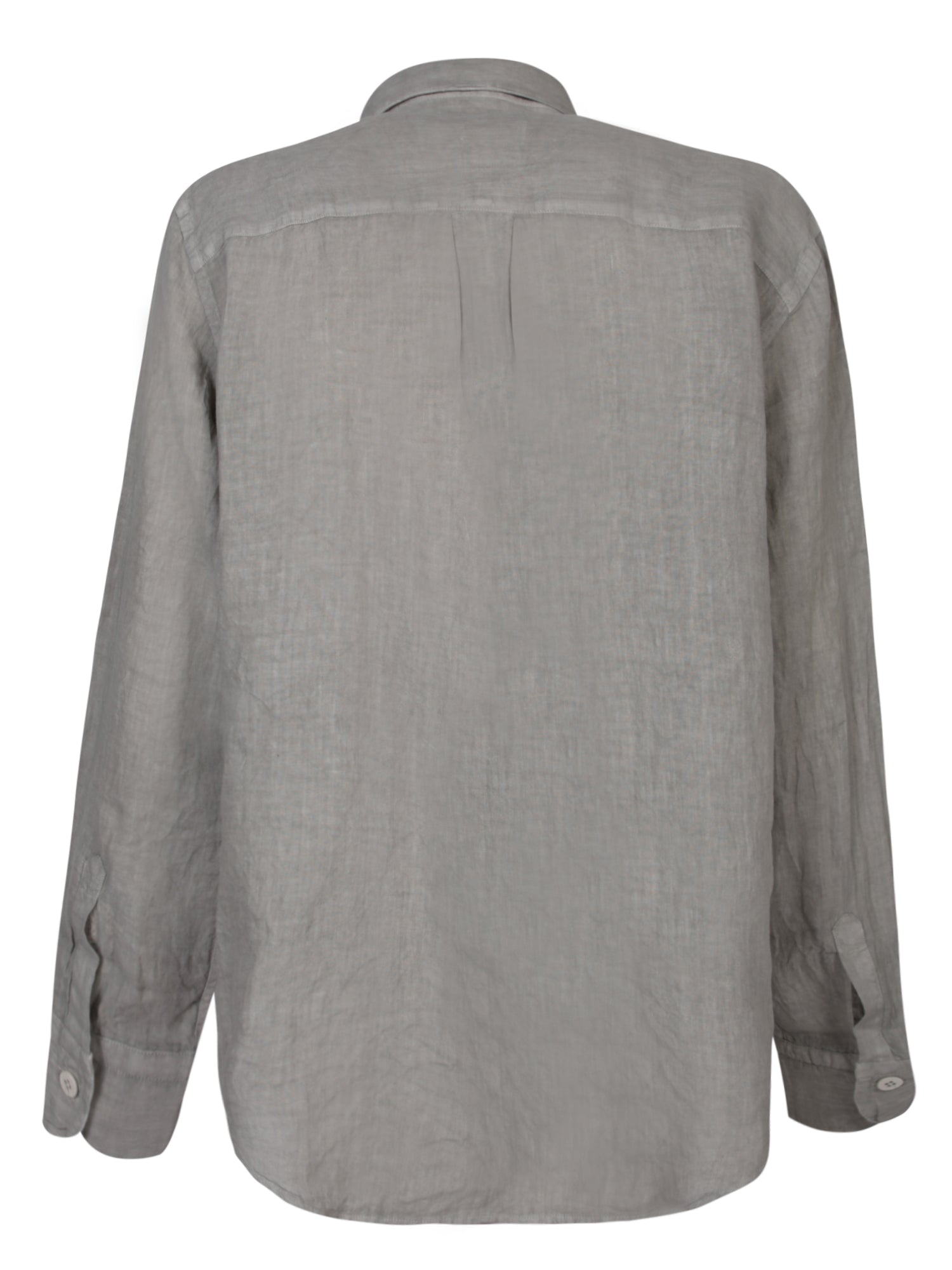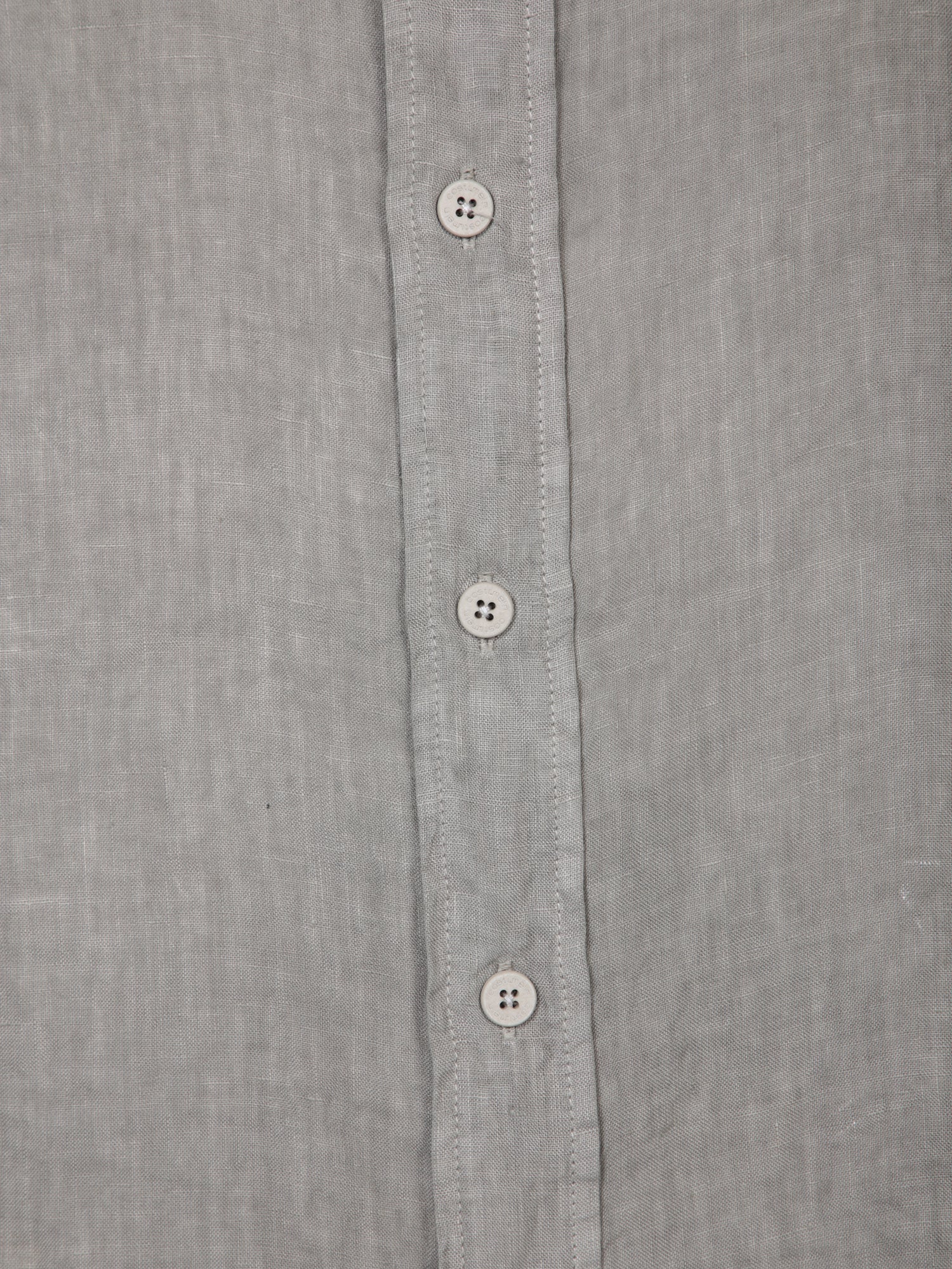 Linen shirt with subtle texture. Long sleeves, classic collar, front button closure.