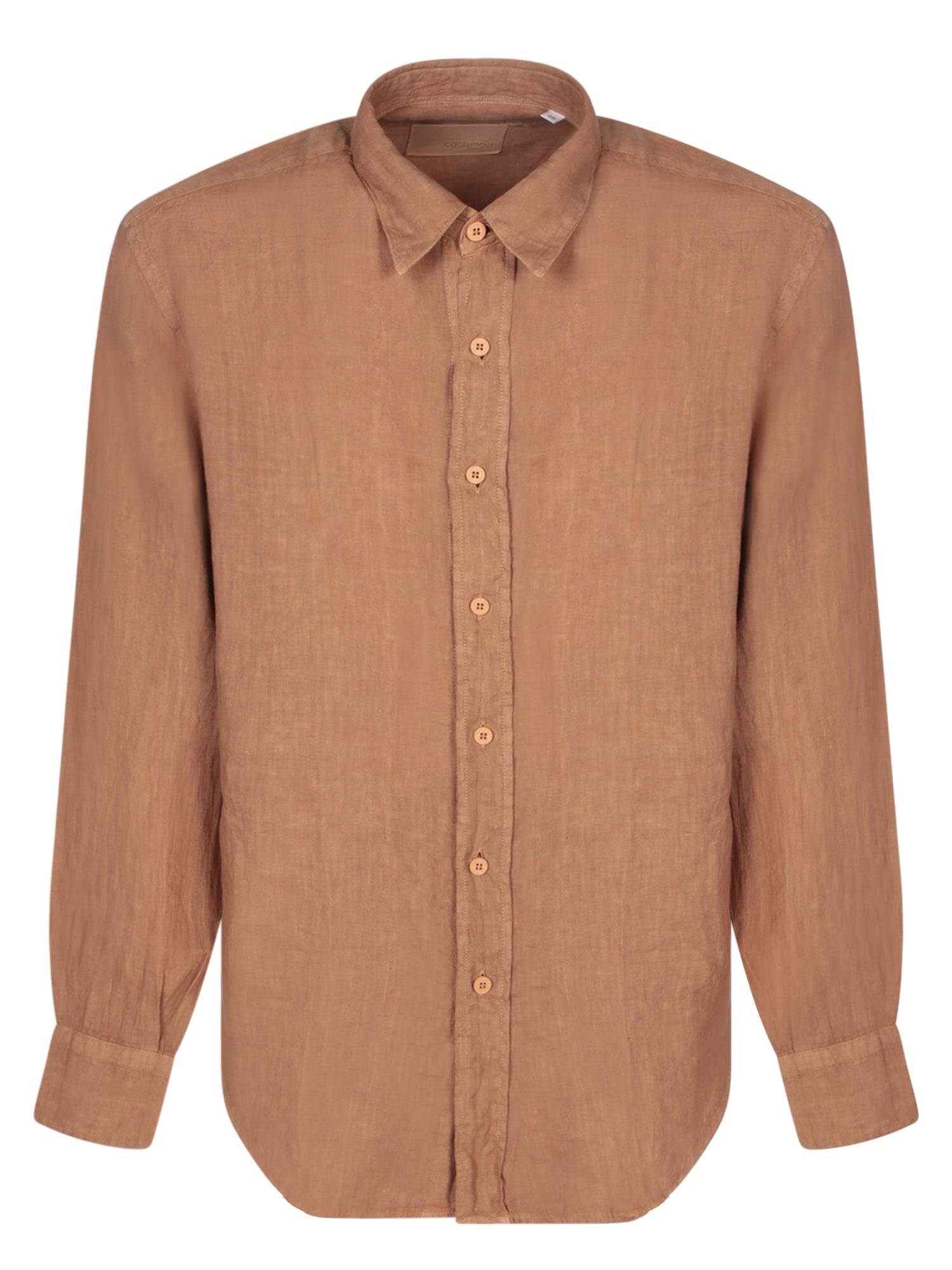 Long sleeves, front button closure, linen fabric.