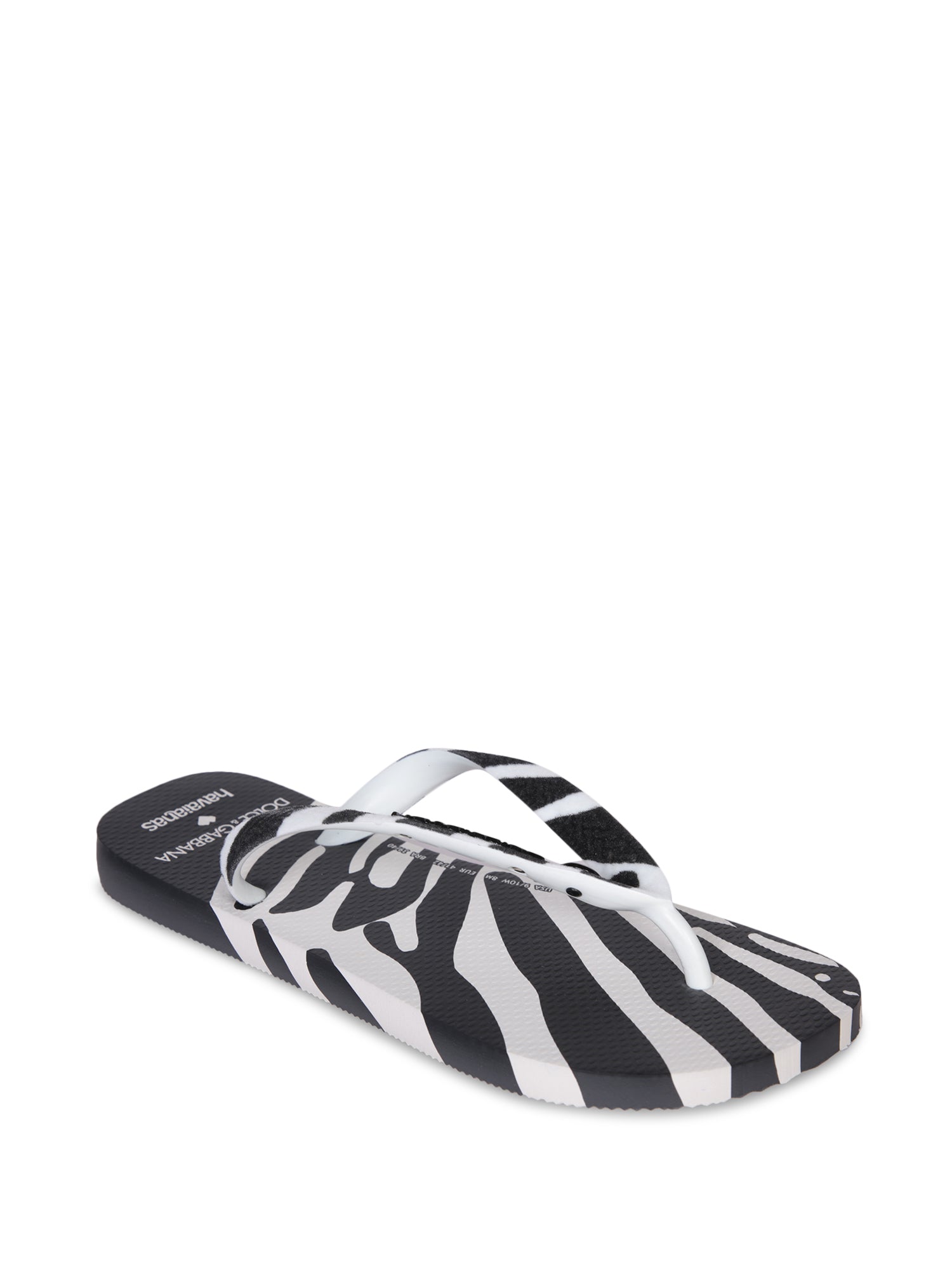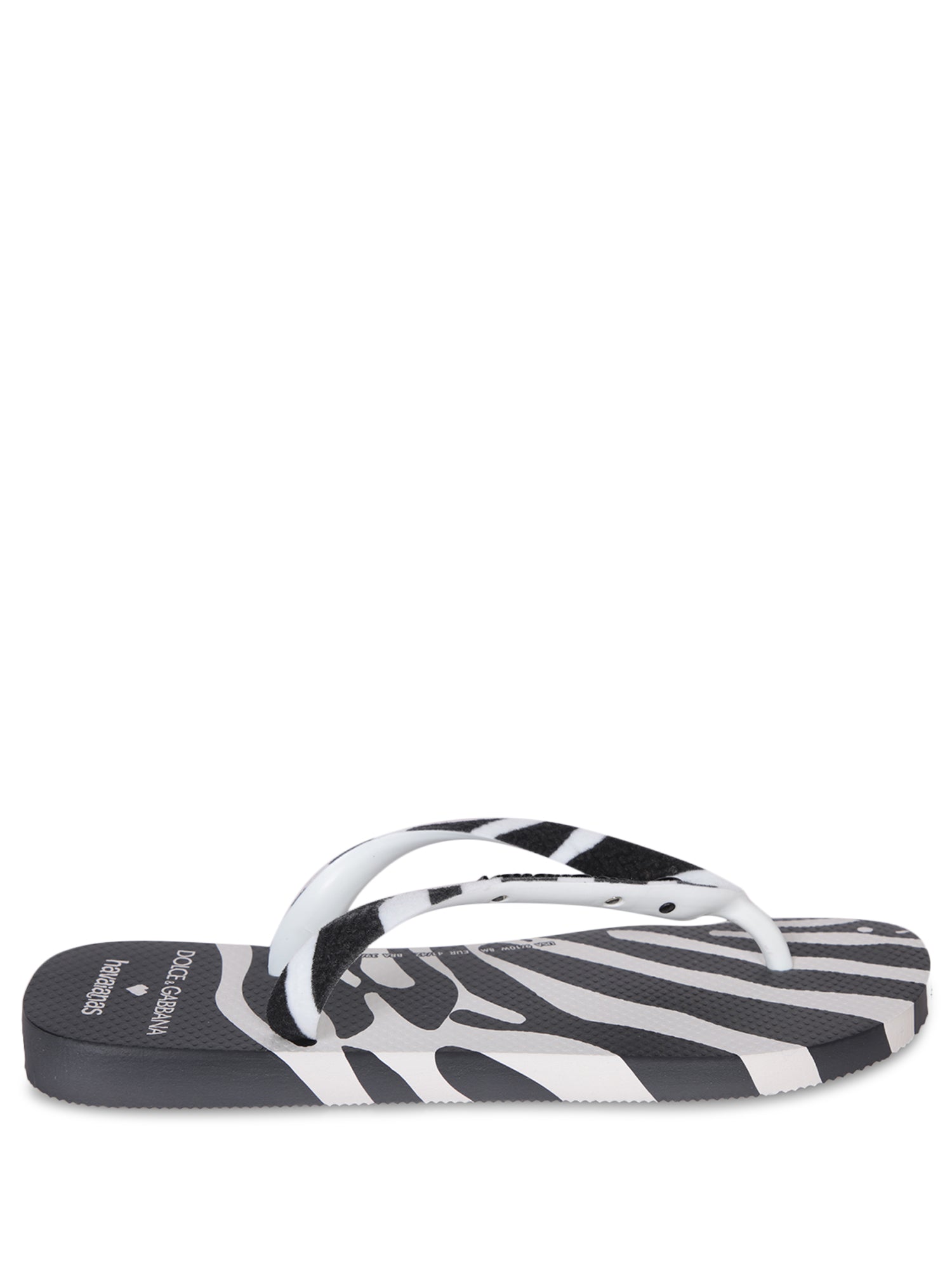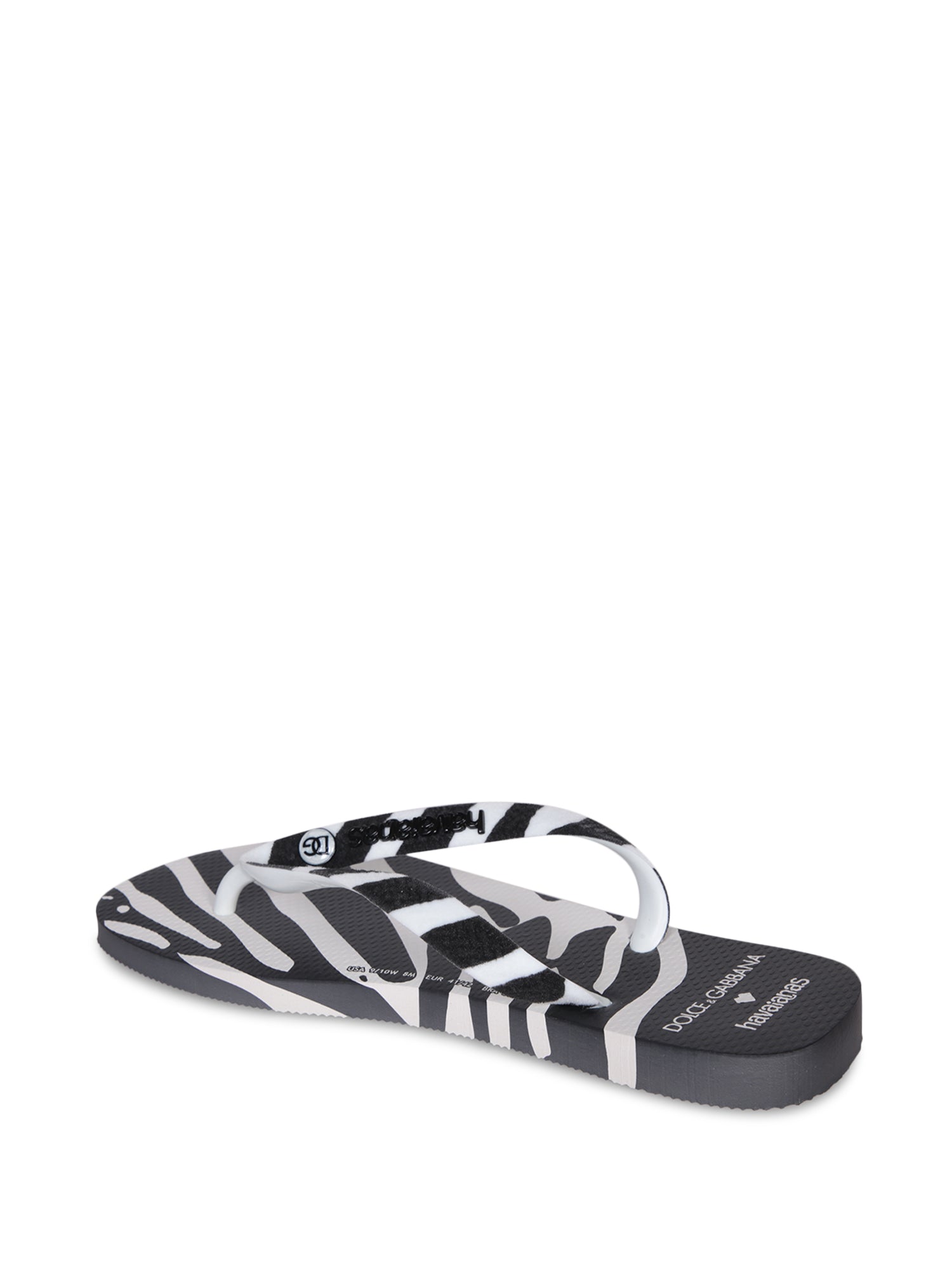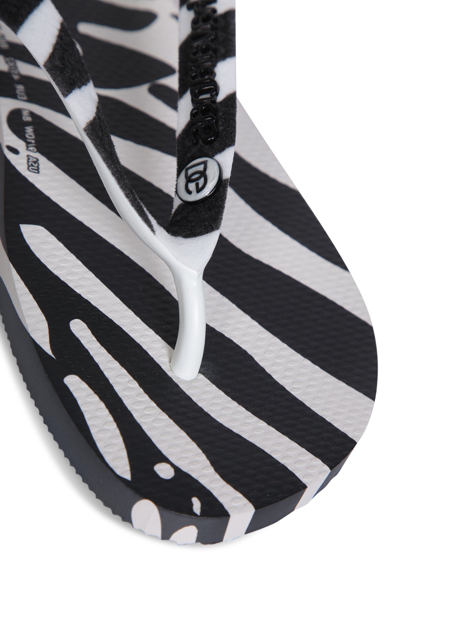 Animal print design in black and white. PVC straps. Non-slip sole.