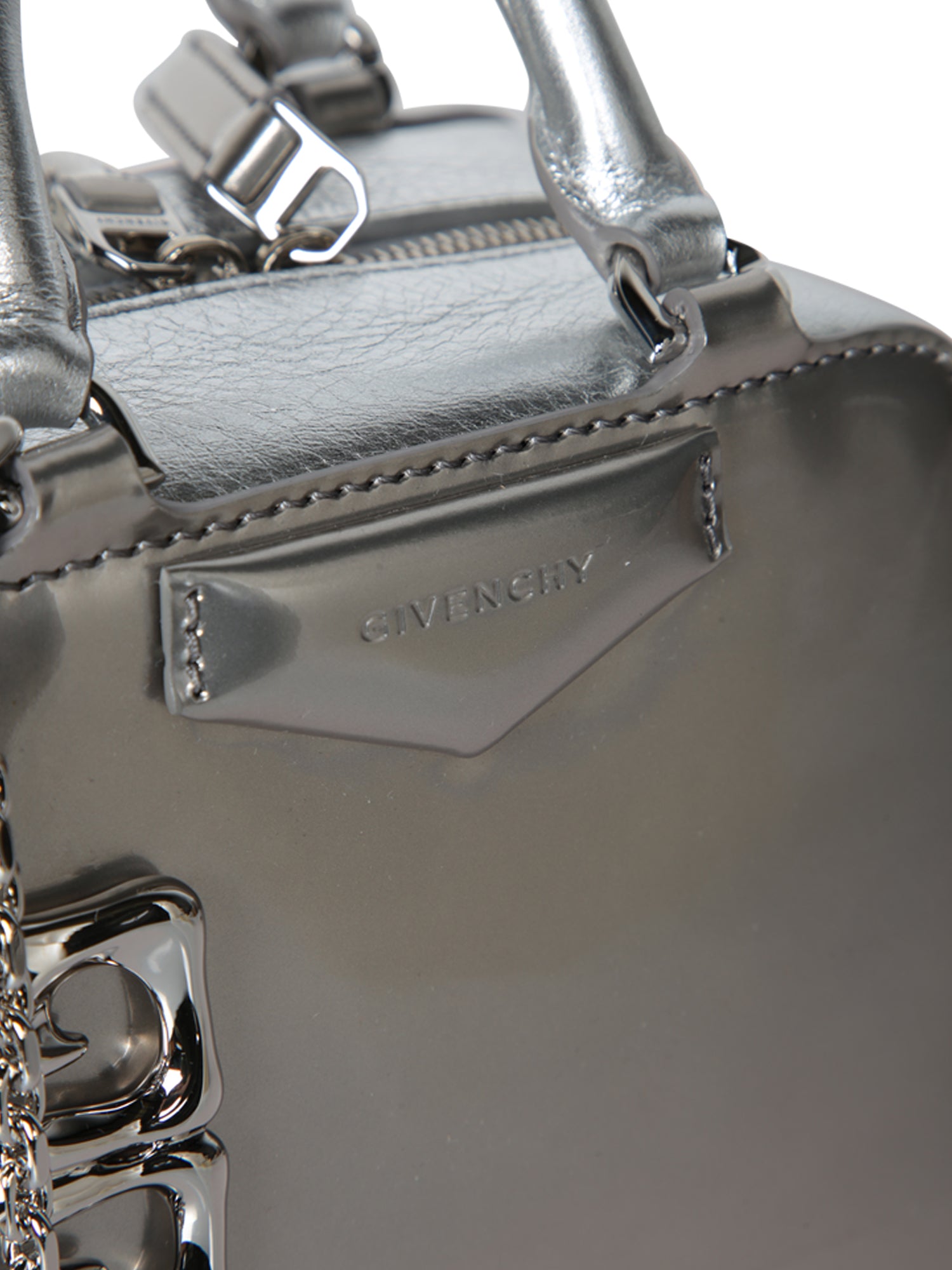 This Givenchy bag elevates any ensemble with a splash of luxury. The silver laminated leather combined with sparkling details adds timeless elegance, perfect for special occasions or exclusive evenings.