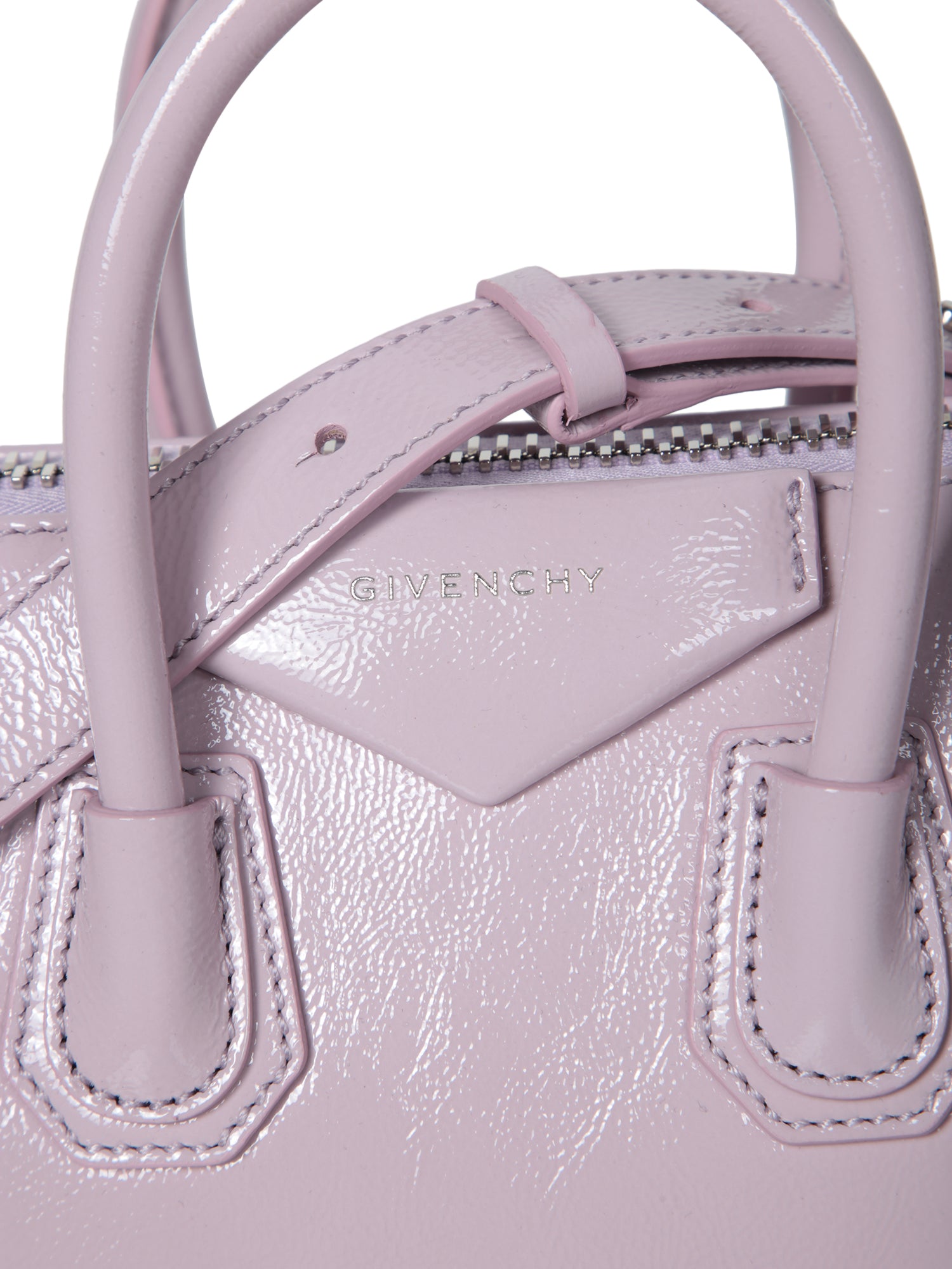 Givenchy’s glossy pink leather bag features refined details and a subtle logo, blending elegance and functionality for any occasion.