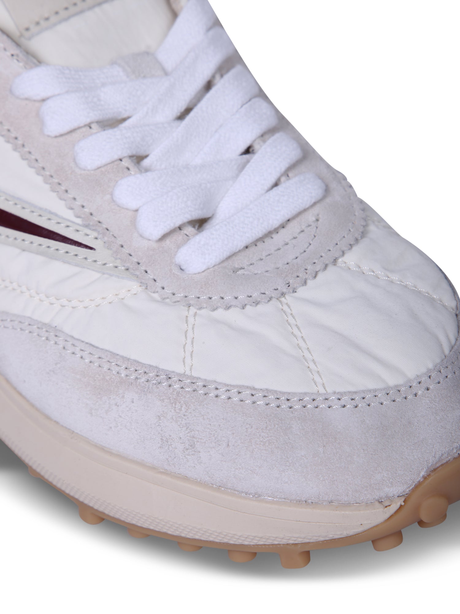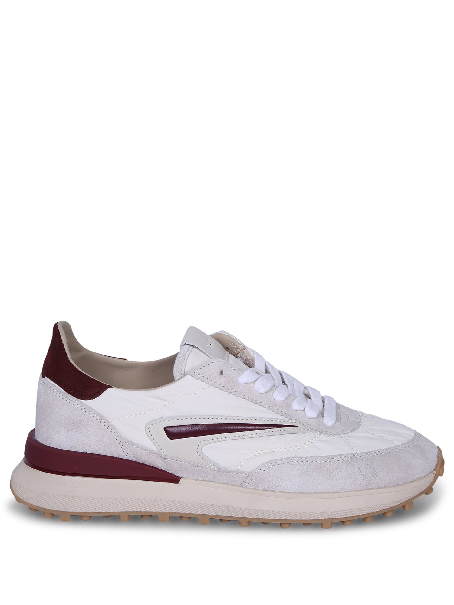 Sneakers in nylon and suede leather. Burgundy leather details. Rubber sole.