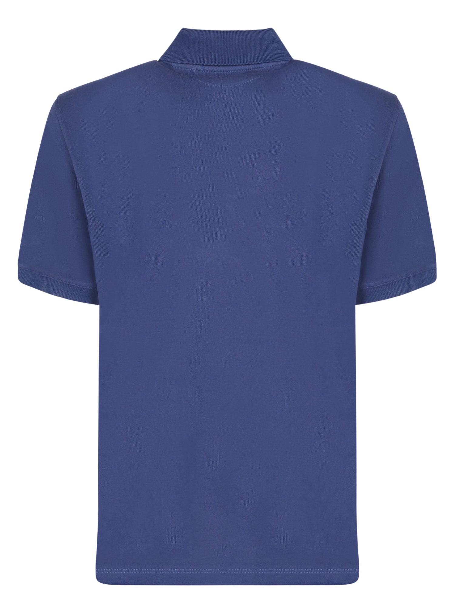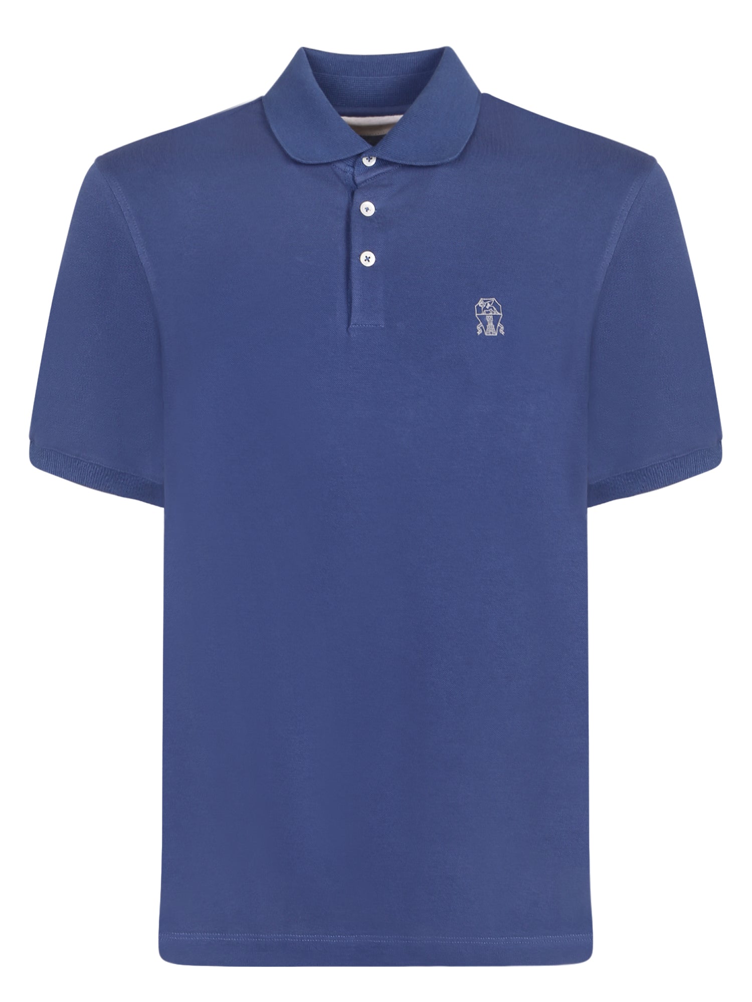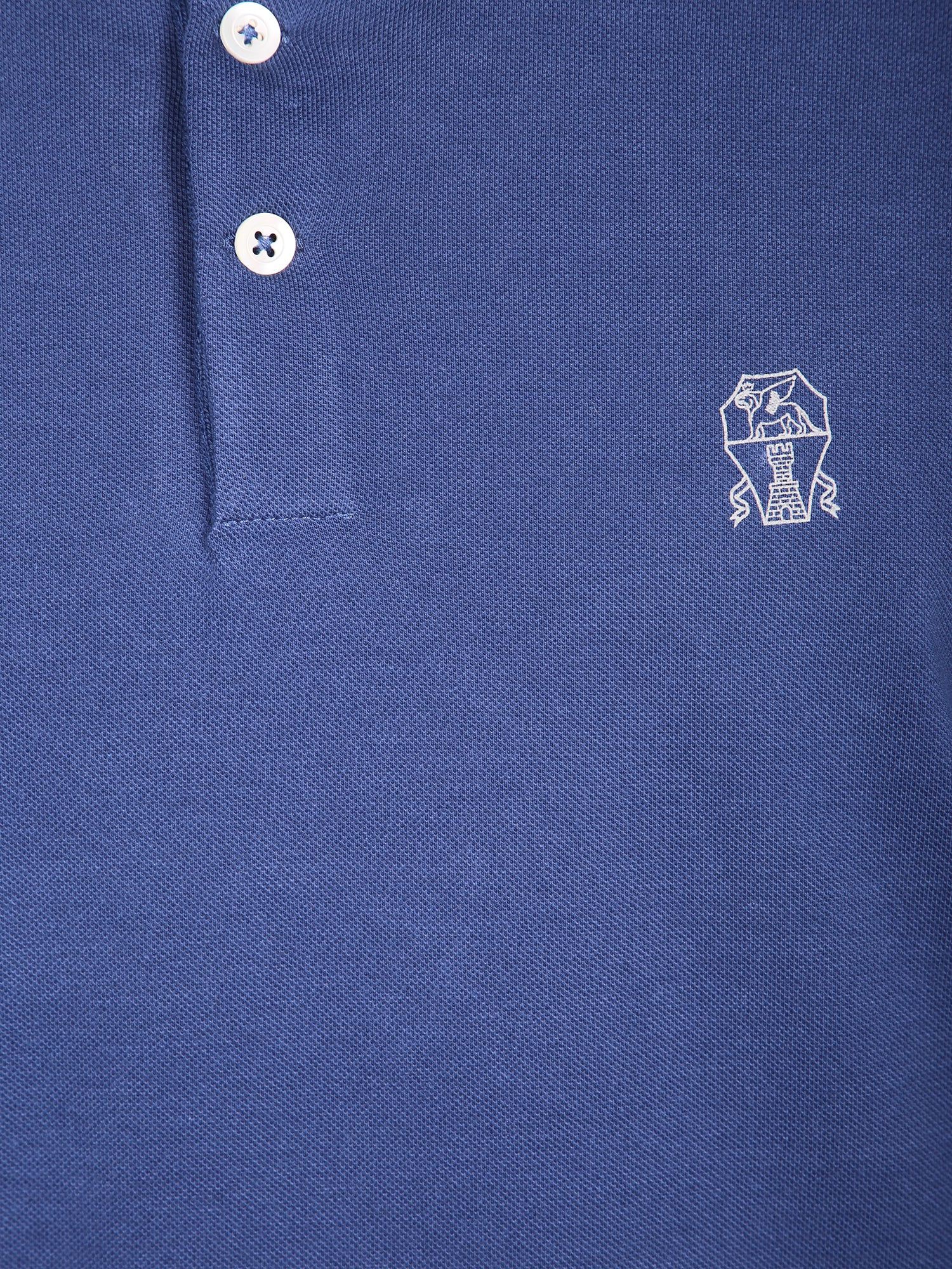 Cotton piqué polo. Avio blue color. Three-button closure. Embroidered logo.