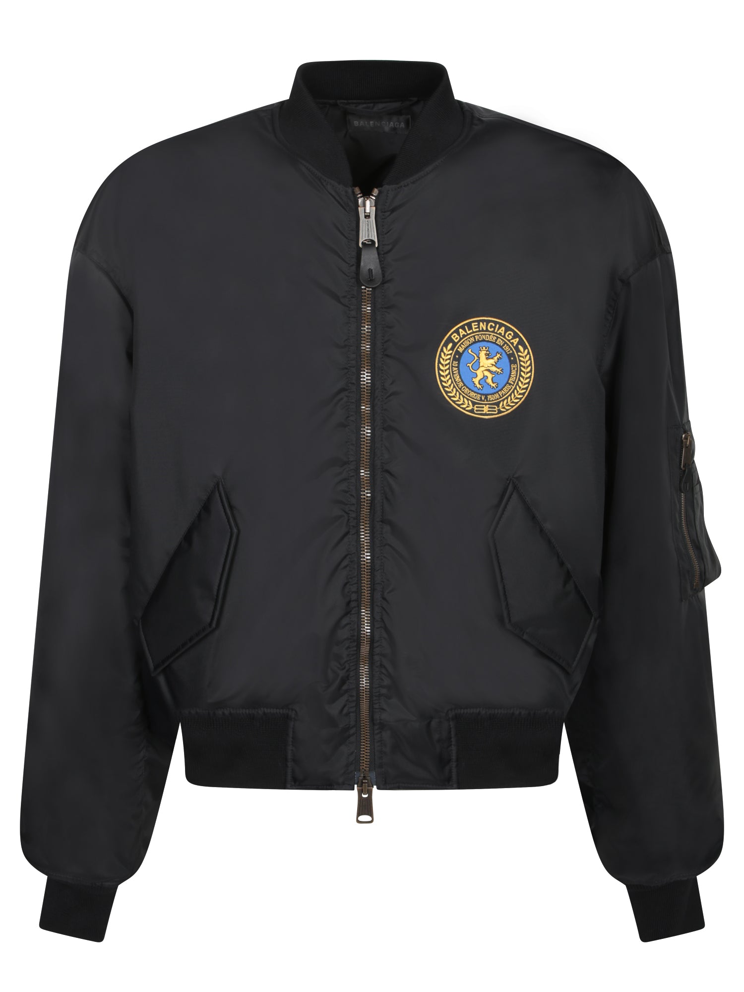 An expression of sporty luxury, this black Balenciaga jacket offers a versatile design with distinctive features such as the embroidered logo and practical zippered pockets.