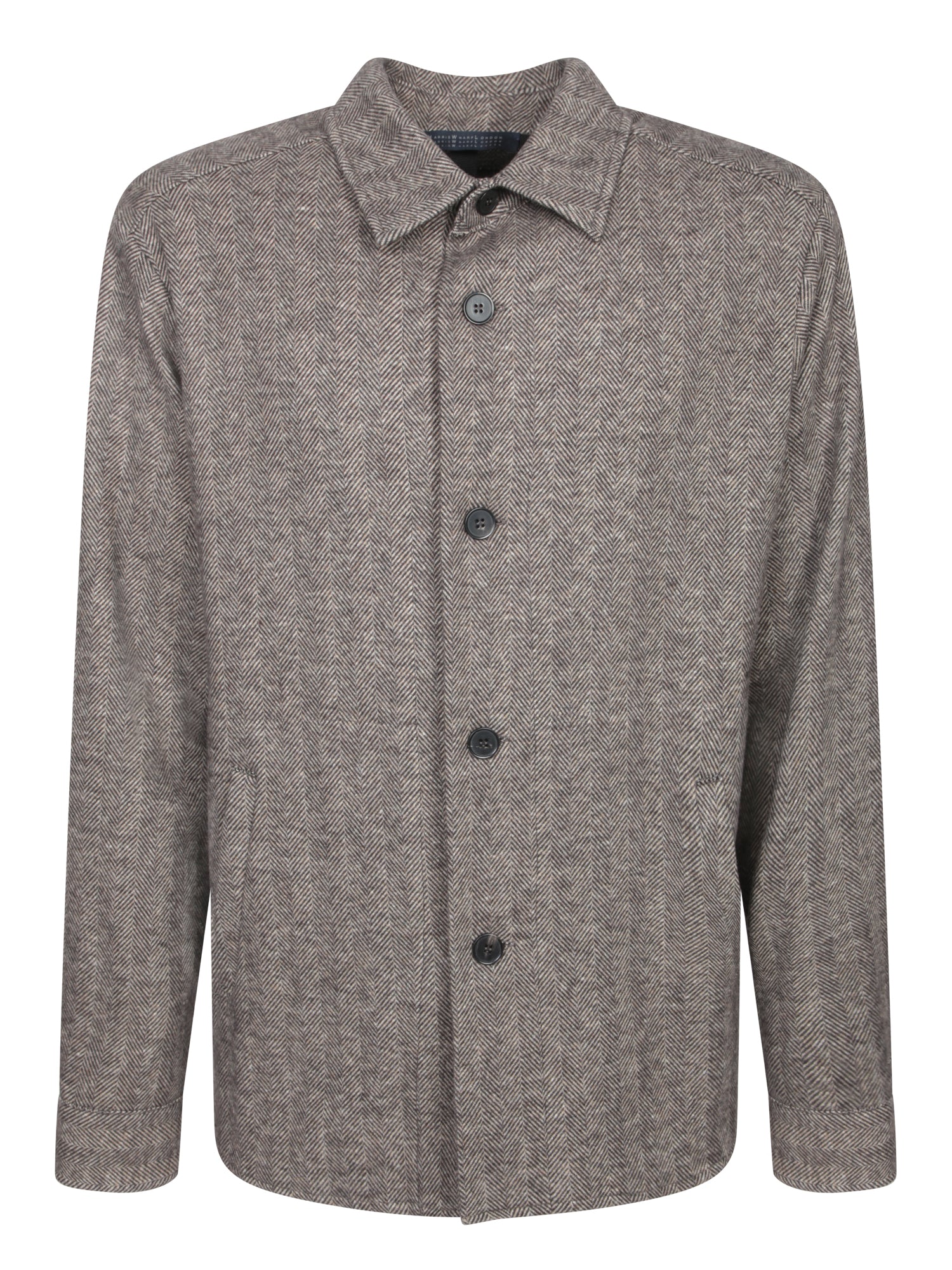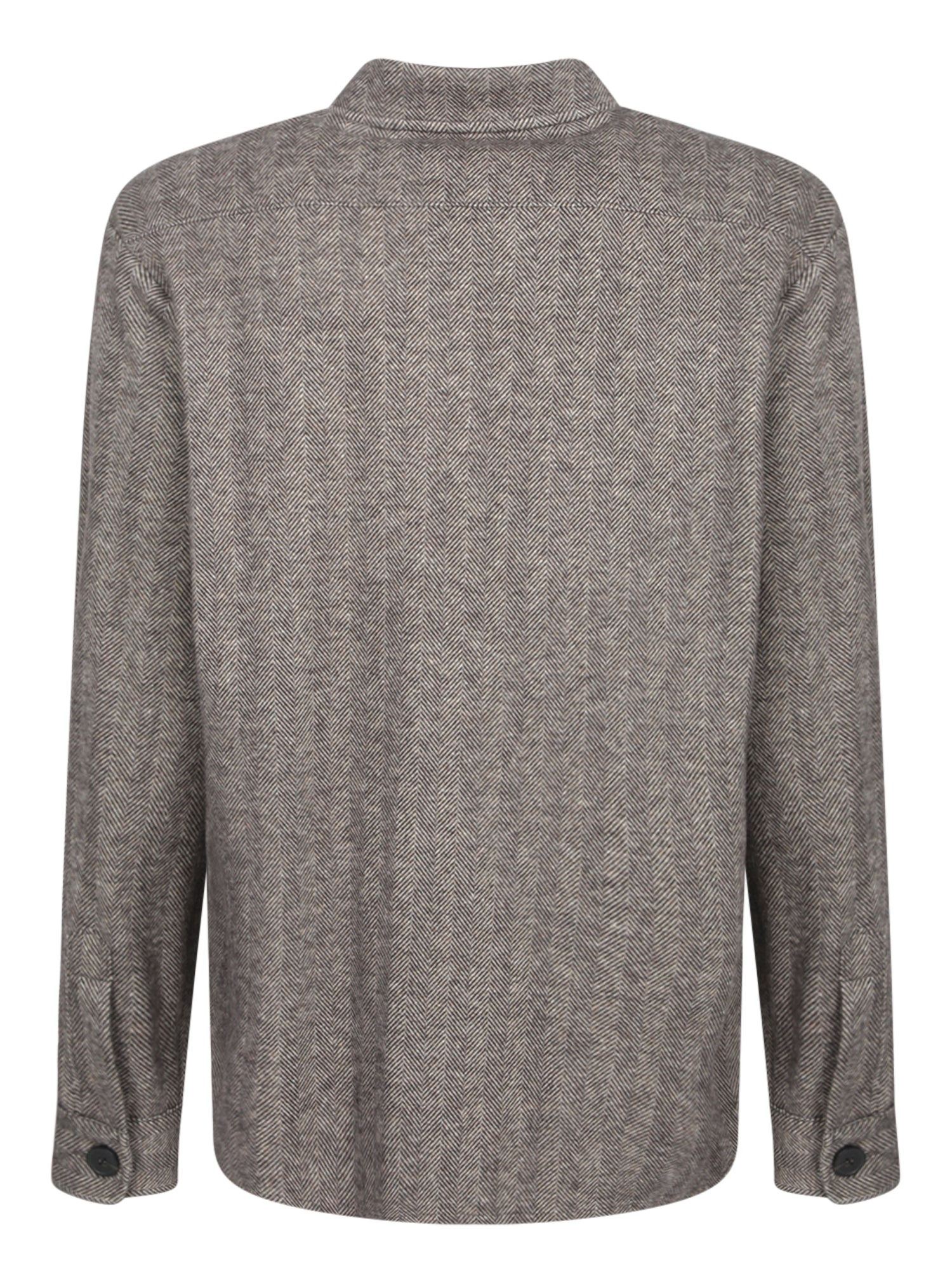 Wool shirt with herringbone pattern. Classic collar and button front closure.