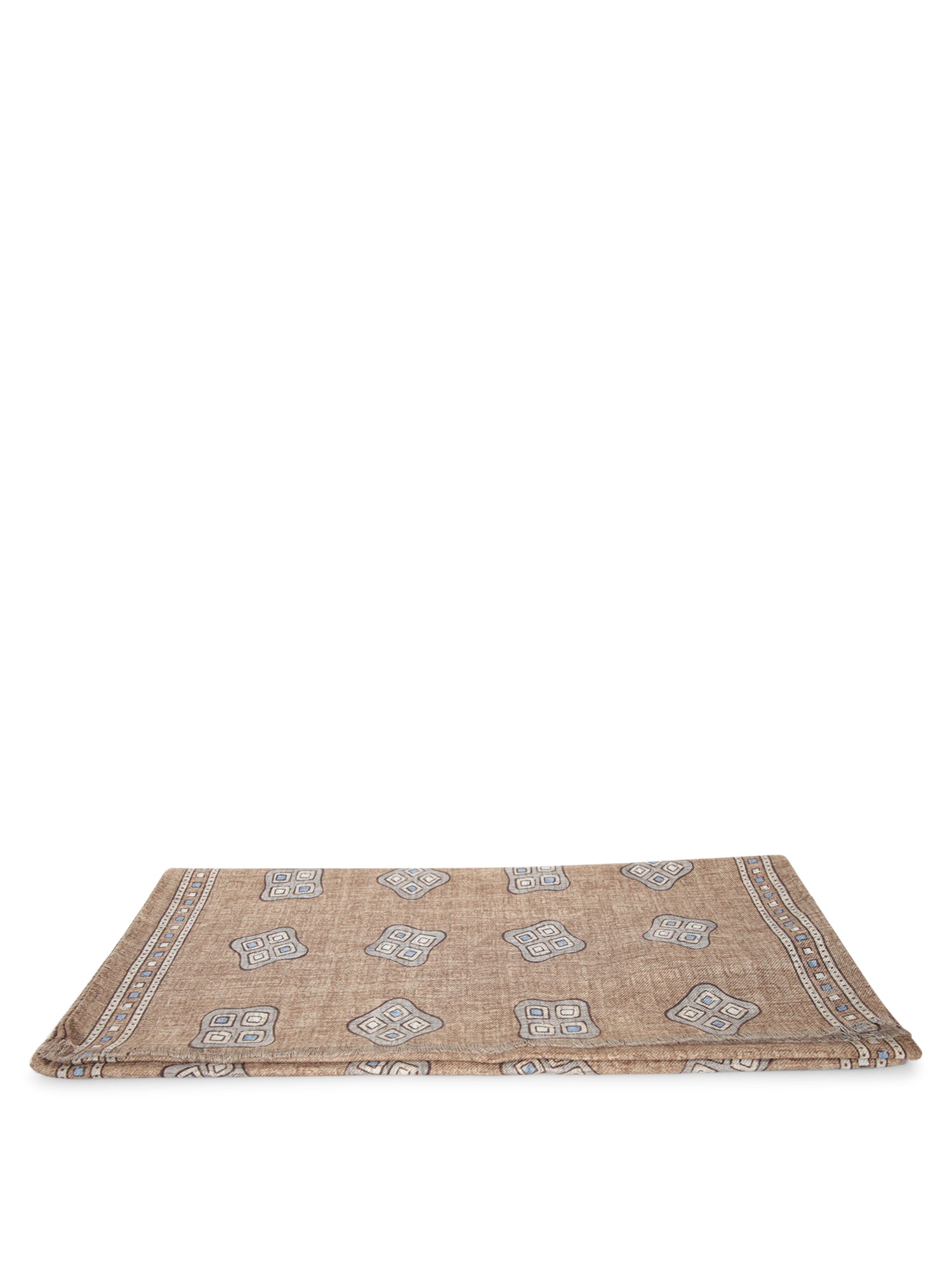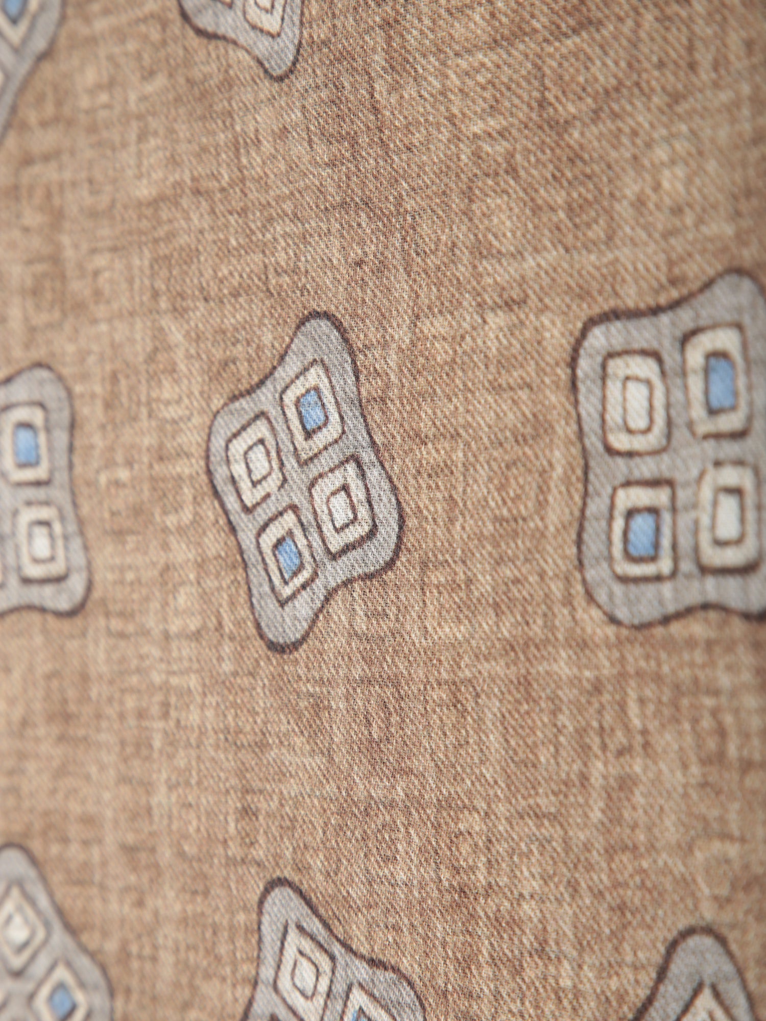 Wool scarf measuring 45x180 cm. Features a dual pattern design in beige and brown shades.