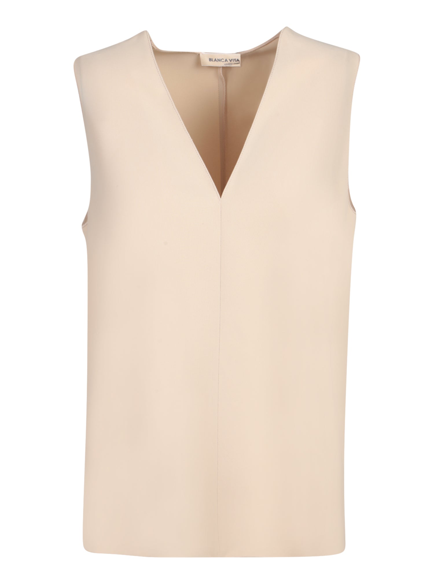 Sleeveless tank top. Deep V-neckline. Cady fabric.