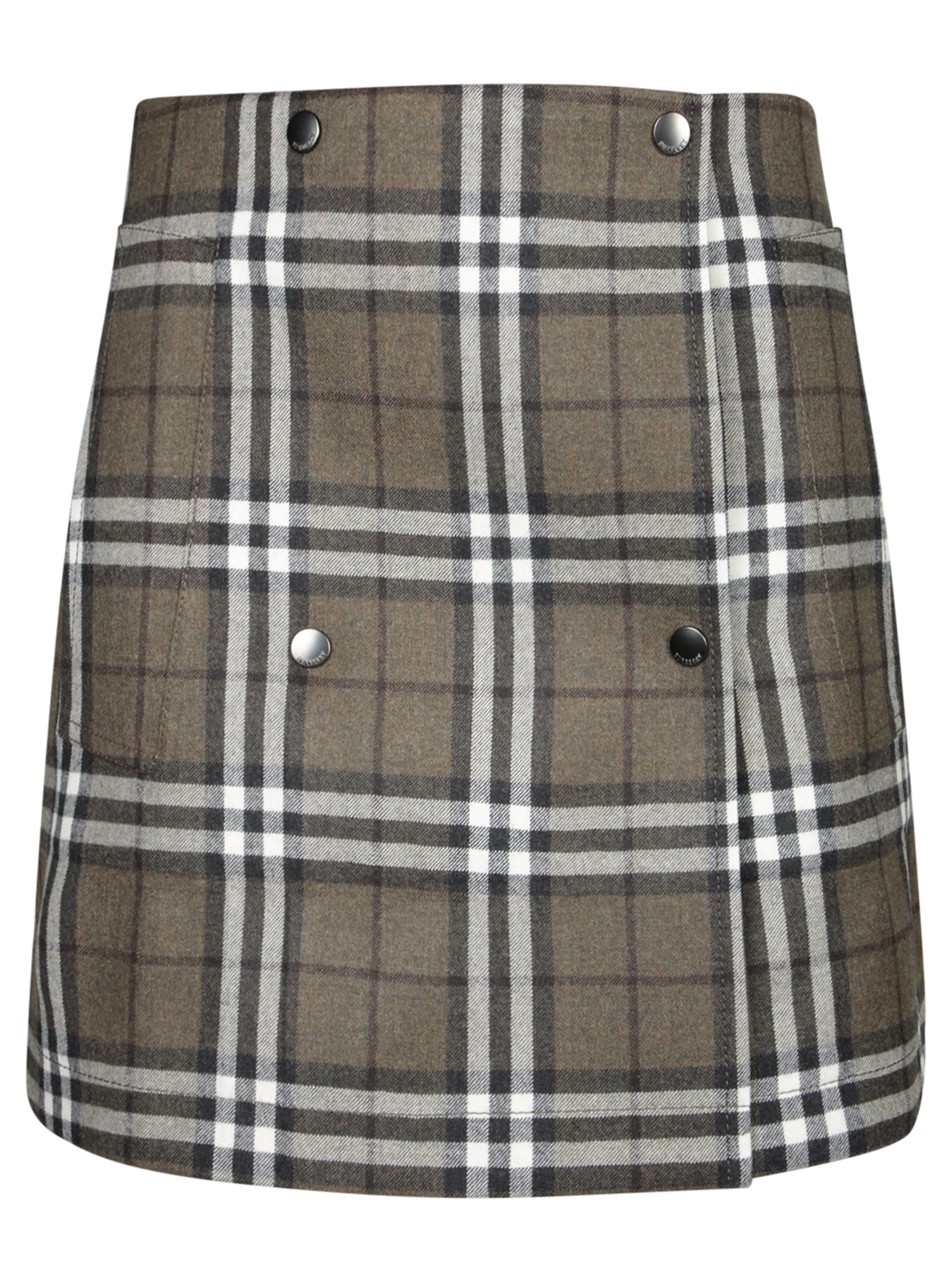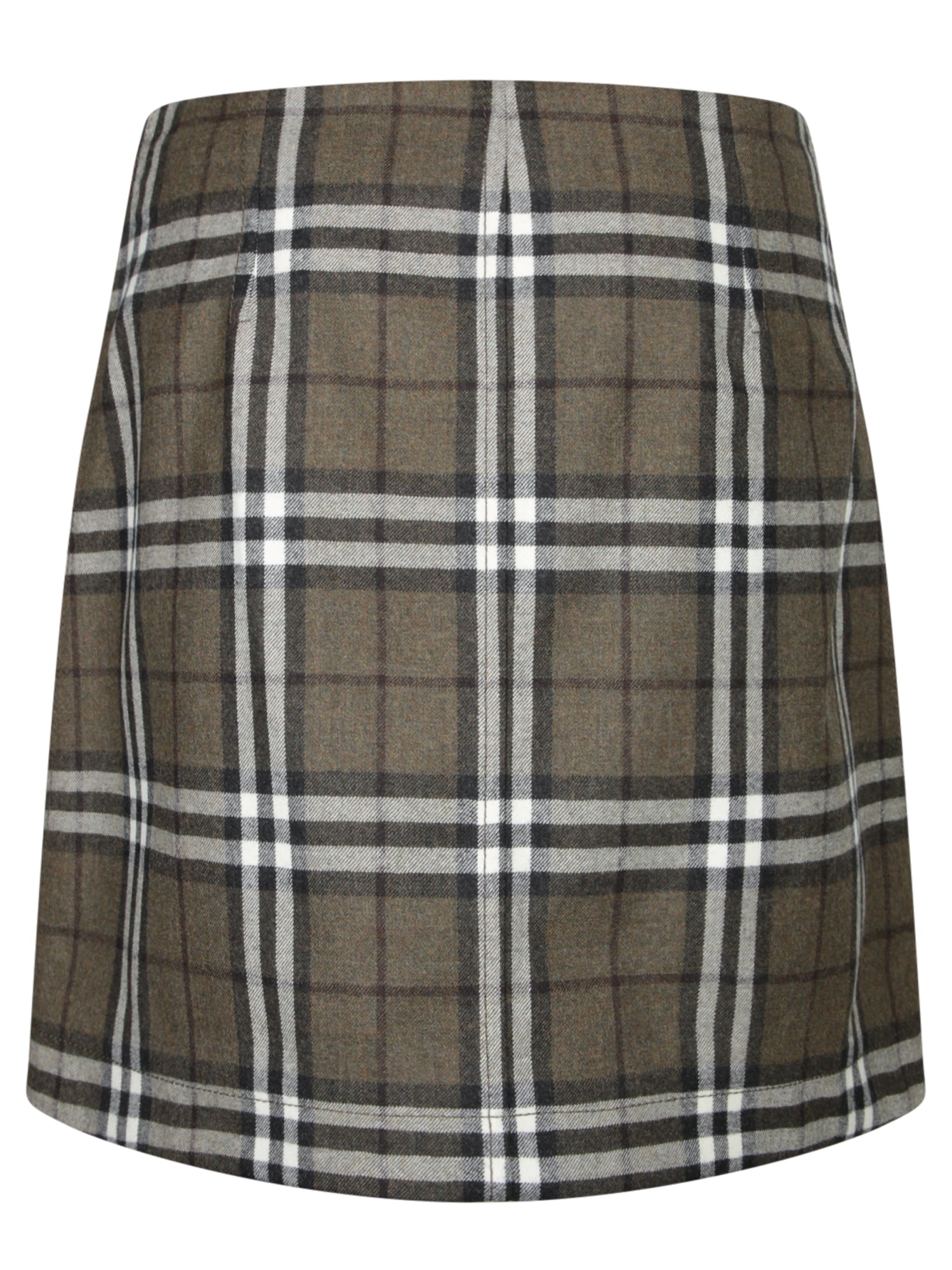 Checkered mini skirt. Wool fabric. Two decorative buttons.