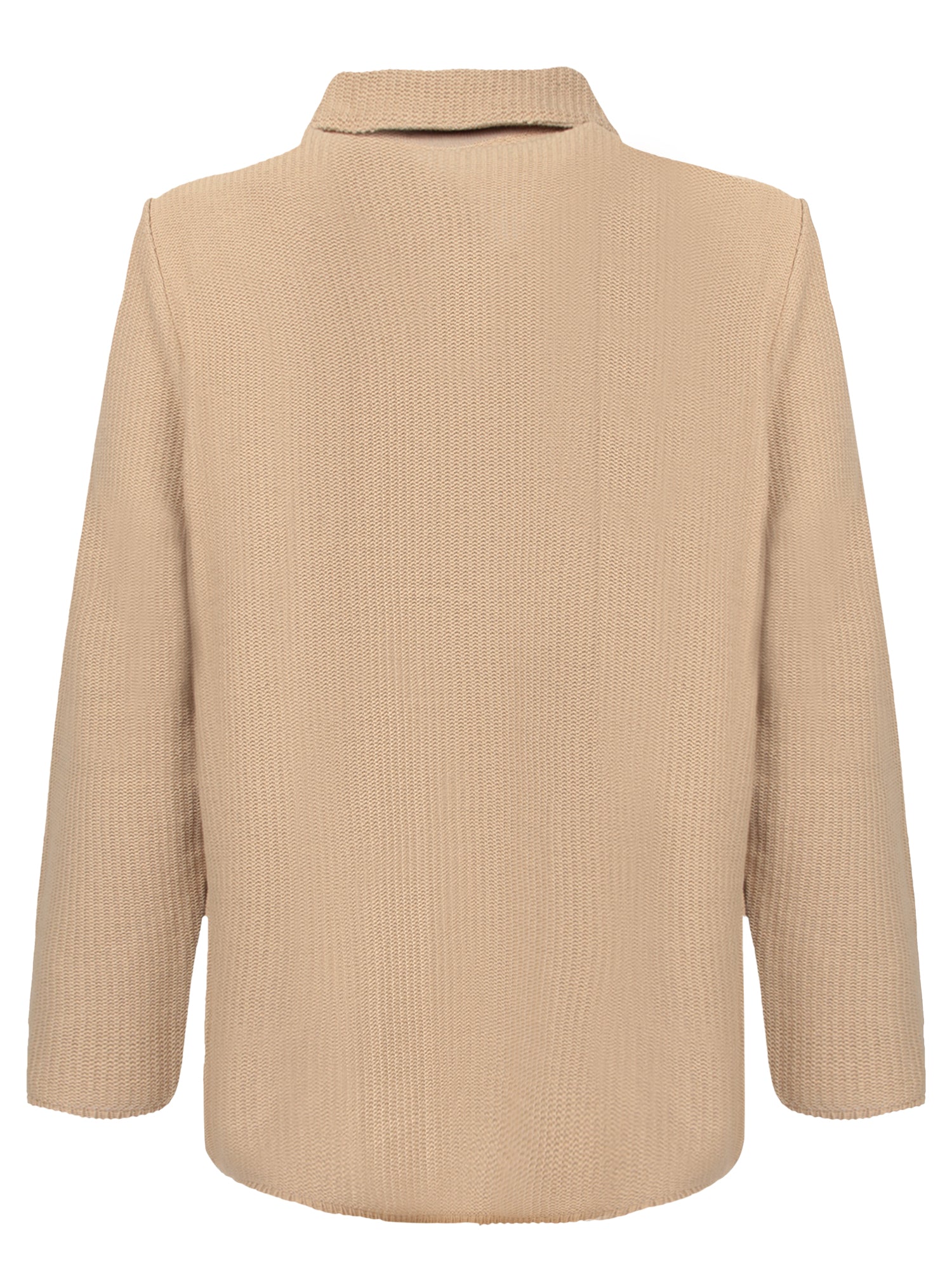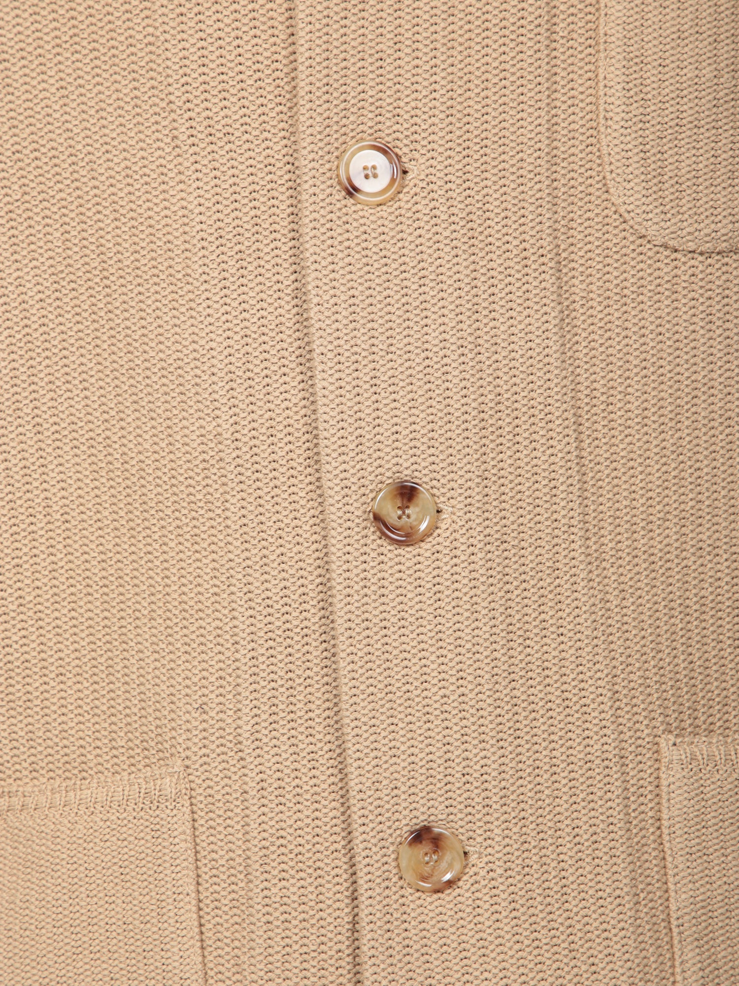 Shirt collar, button front closure, patch pockets on chest and hips.