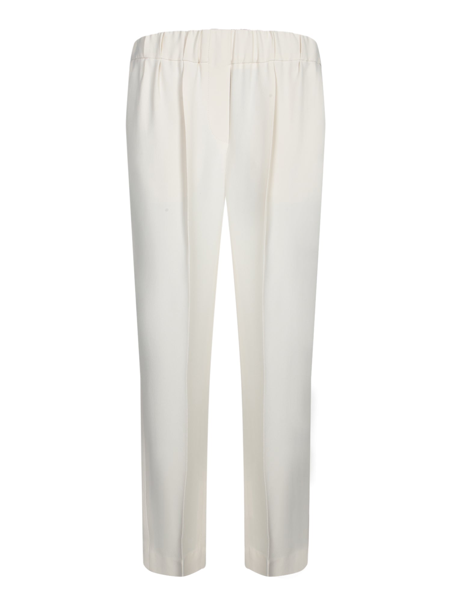 High-waisted trousers with elastic waistband. Straight cut and cady fabric.