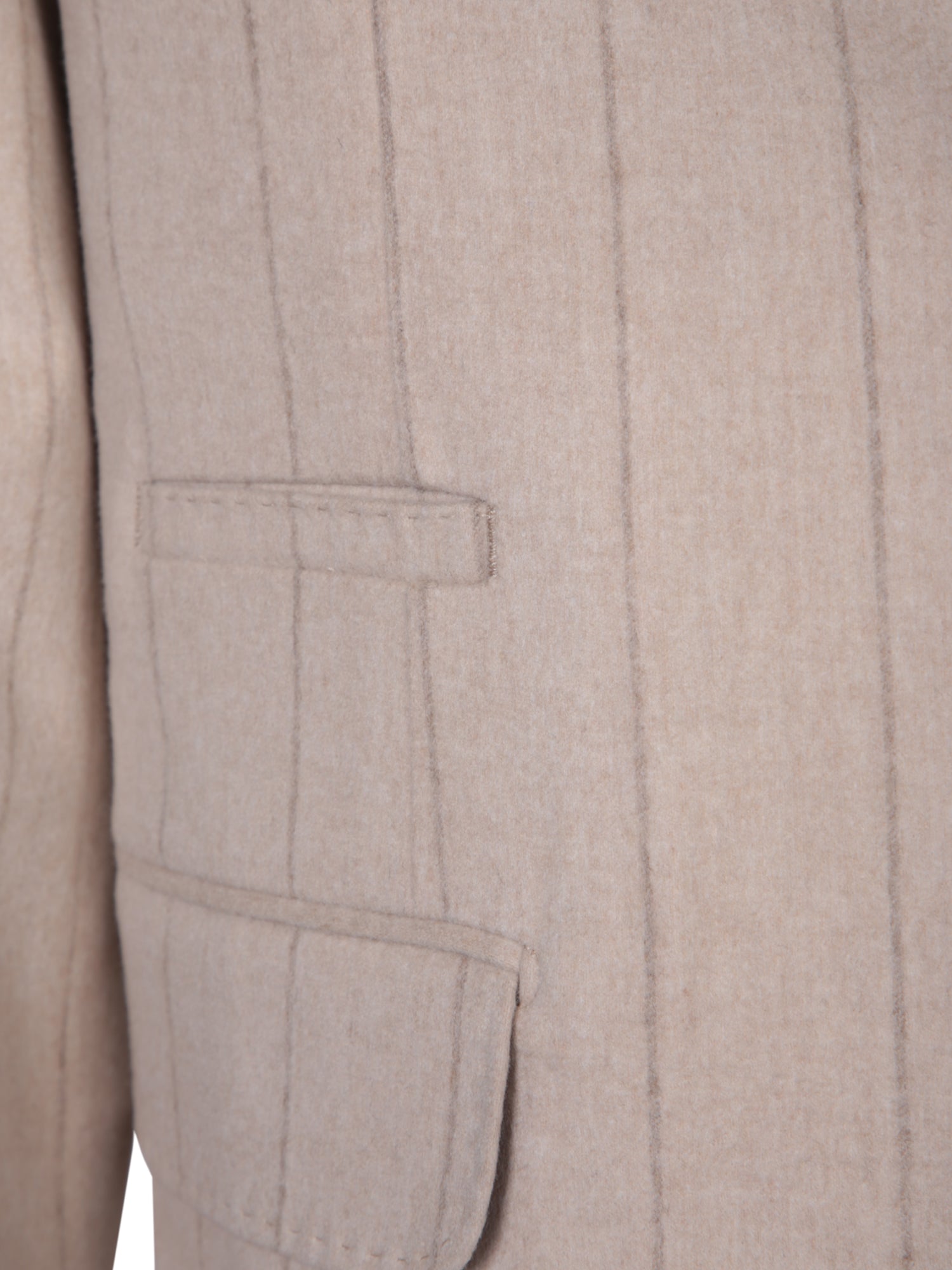 Crafted by Brunello Cucinelli, this beige flannel jacket is a hallmark of tailoring elegance. Featuring a classic cut and refined details, it perfectly completes any men's wardrobe.