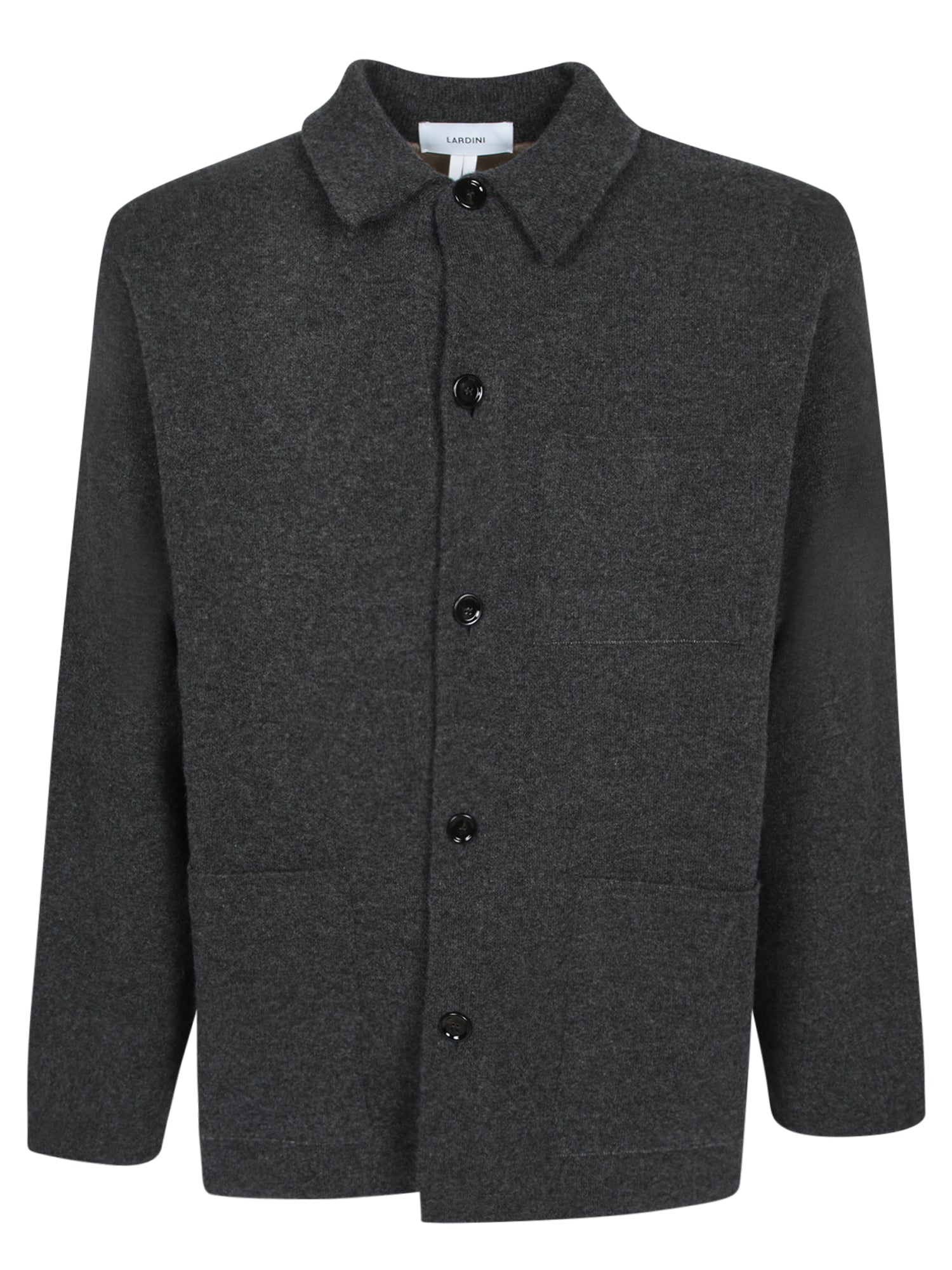 Wool overshirt with button closure. Features a classic collar and two front applied pockets.