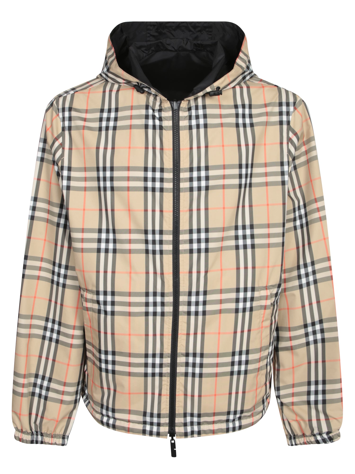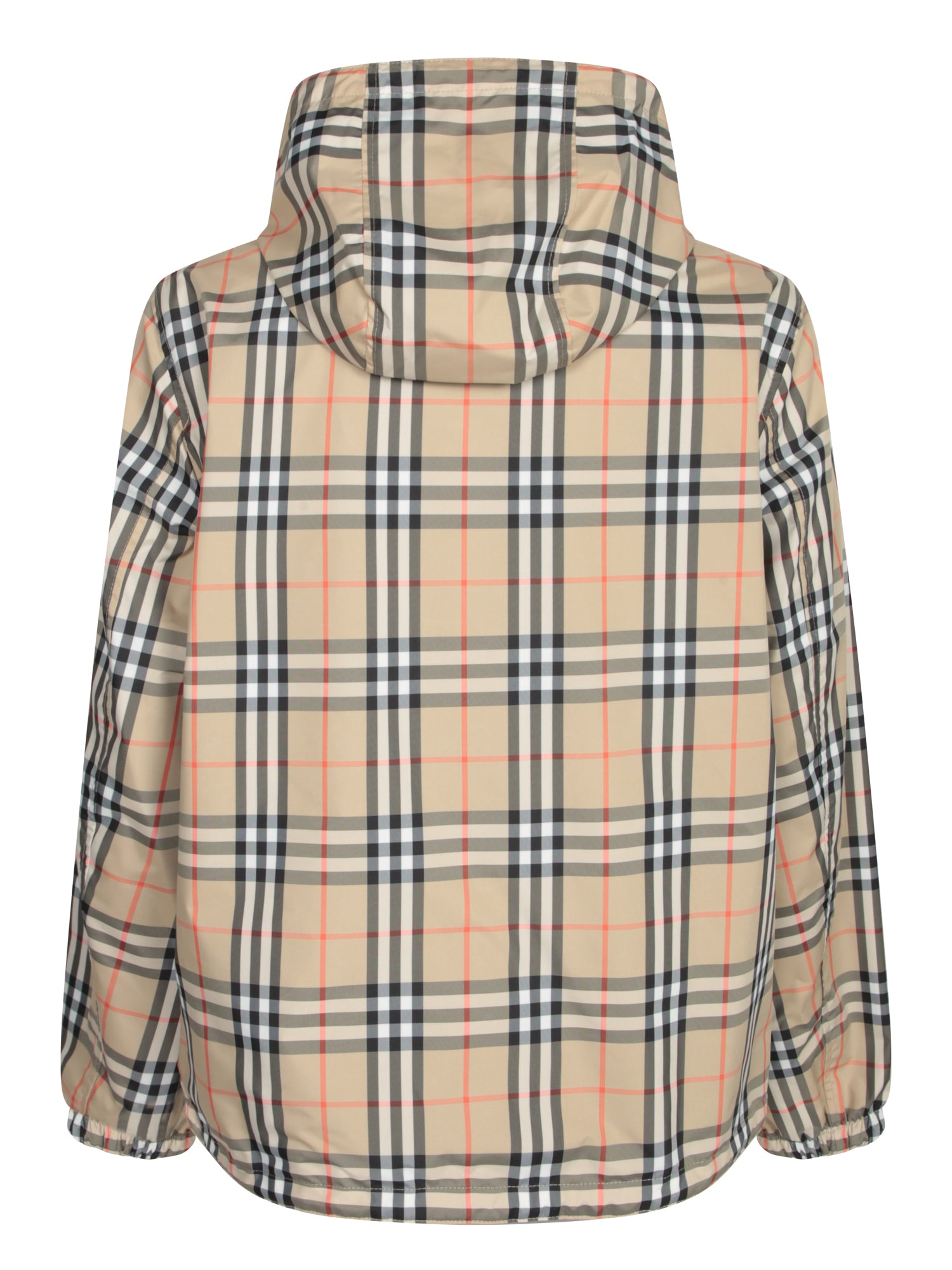 Hooded jacket. Front zip closure. Iconic check pattern.
