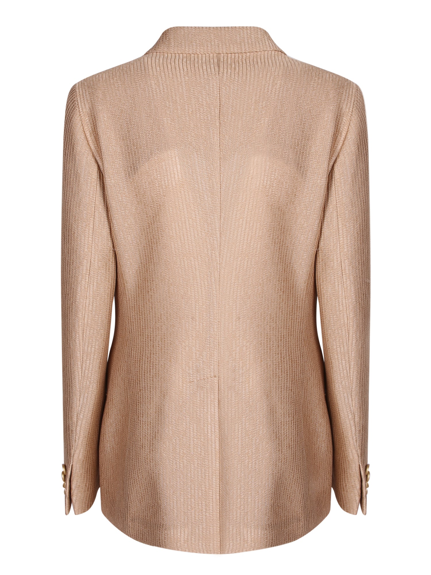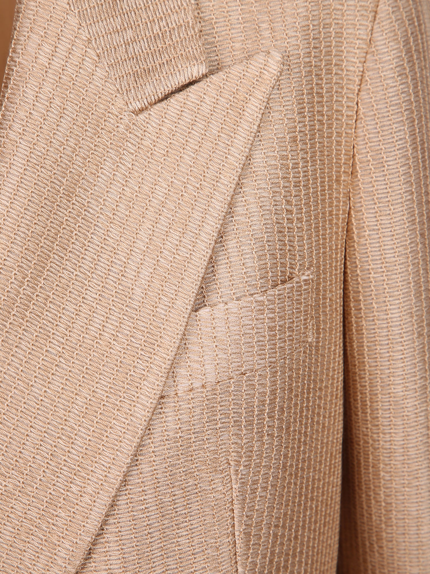Elegant double-breasted. Washed cotton fabric. Refined beige color. Golden buttons.