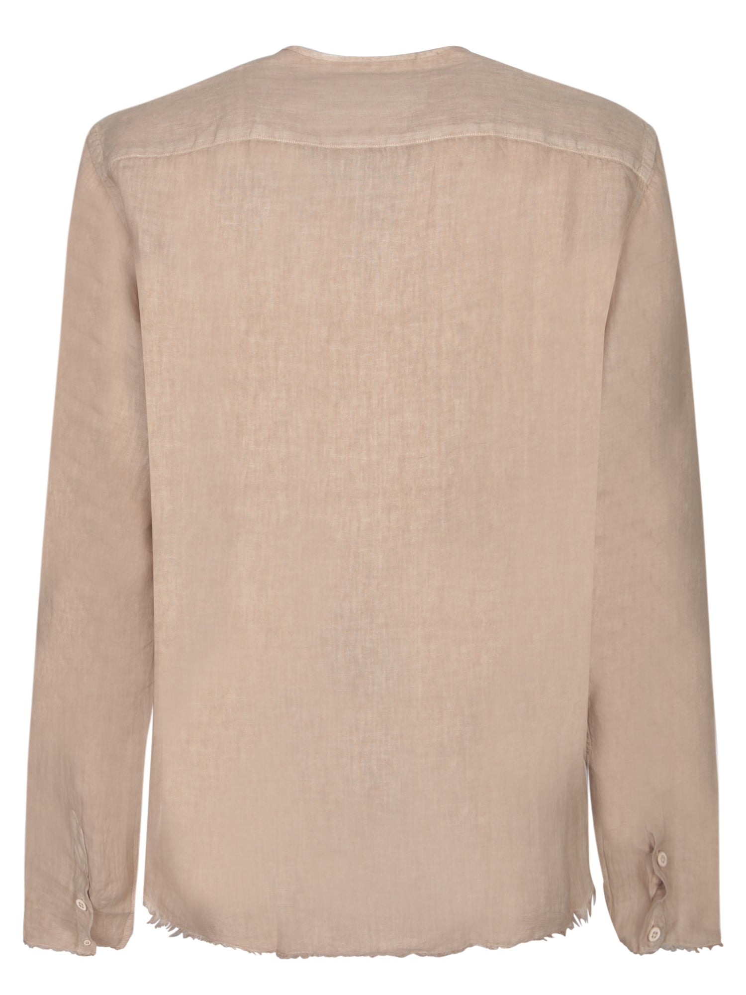 Elegant COSTUMEIN beige linen shirt, featuring a front button closure and a modern raw hem for a uniquely stylish touch.