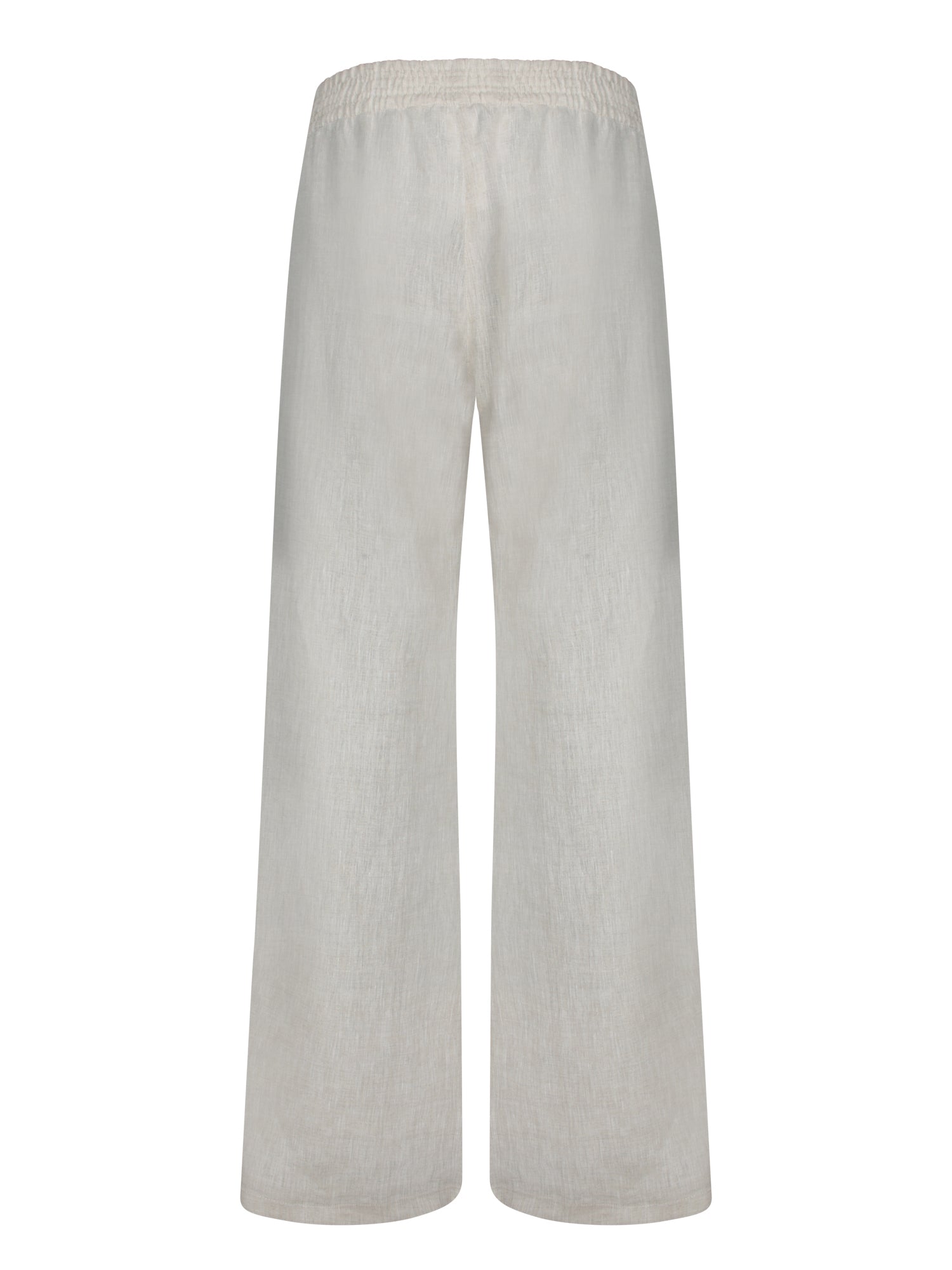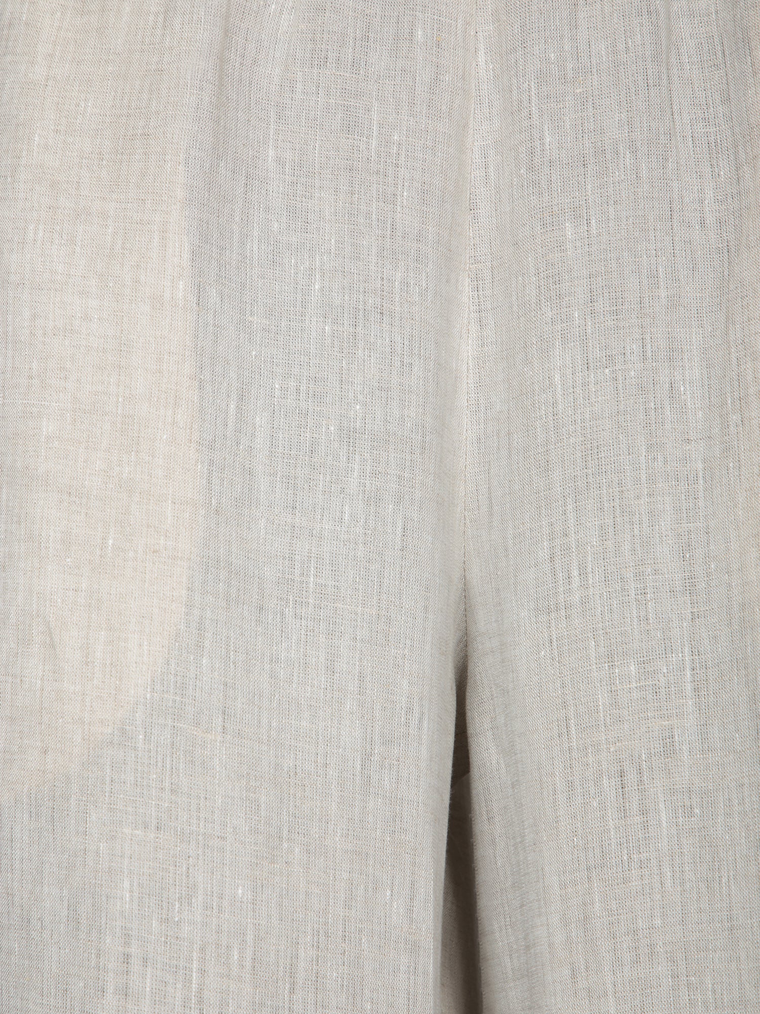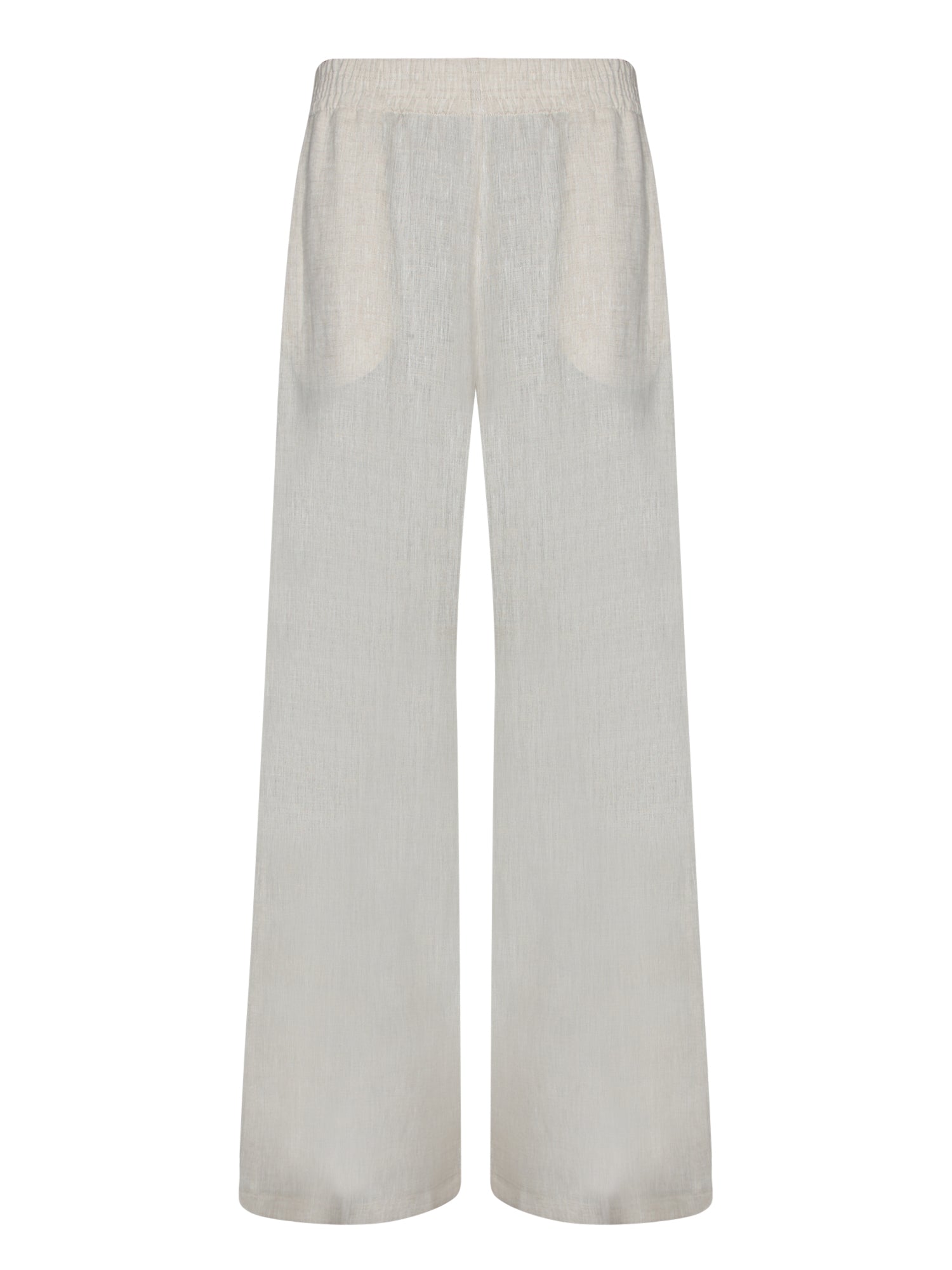 Elegant Fabiana Filippi greige linen trousers featuring a comfortable elastic waist and a flared cut that provides a touch of casual sophistication.
