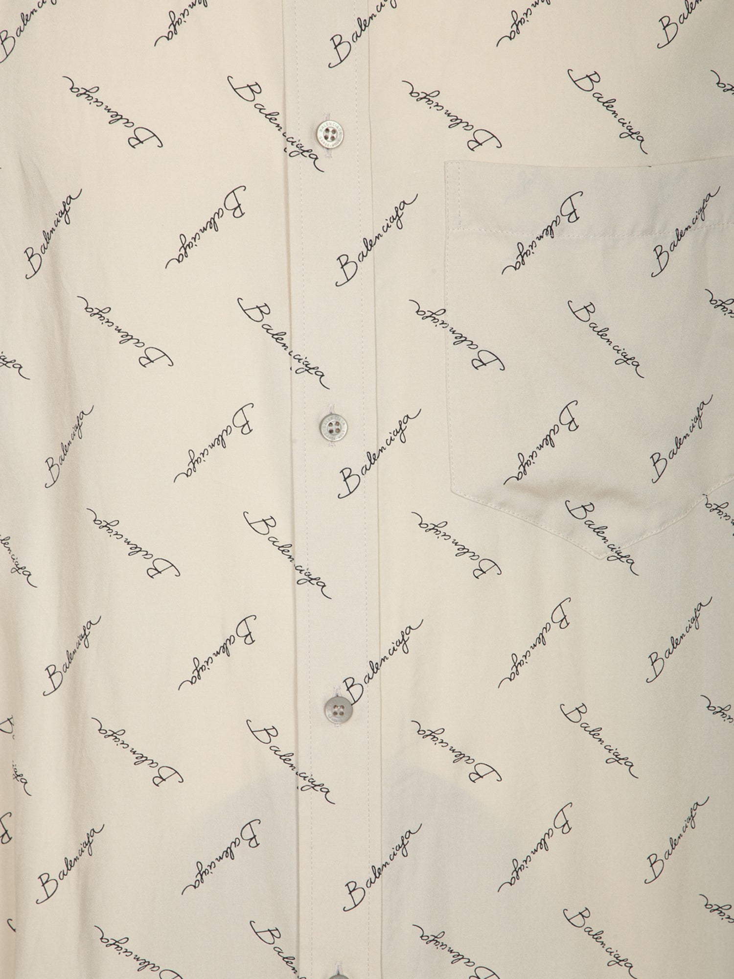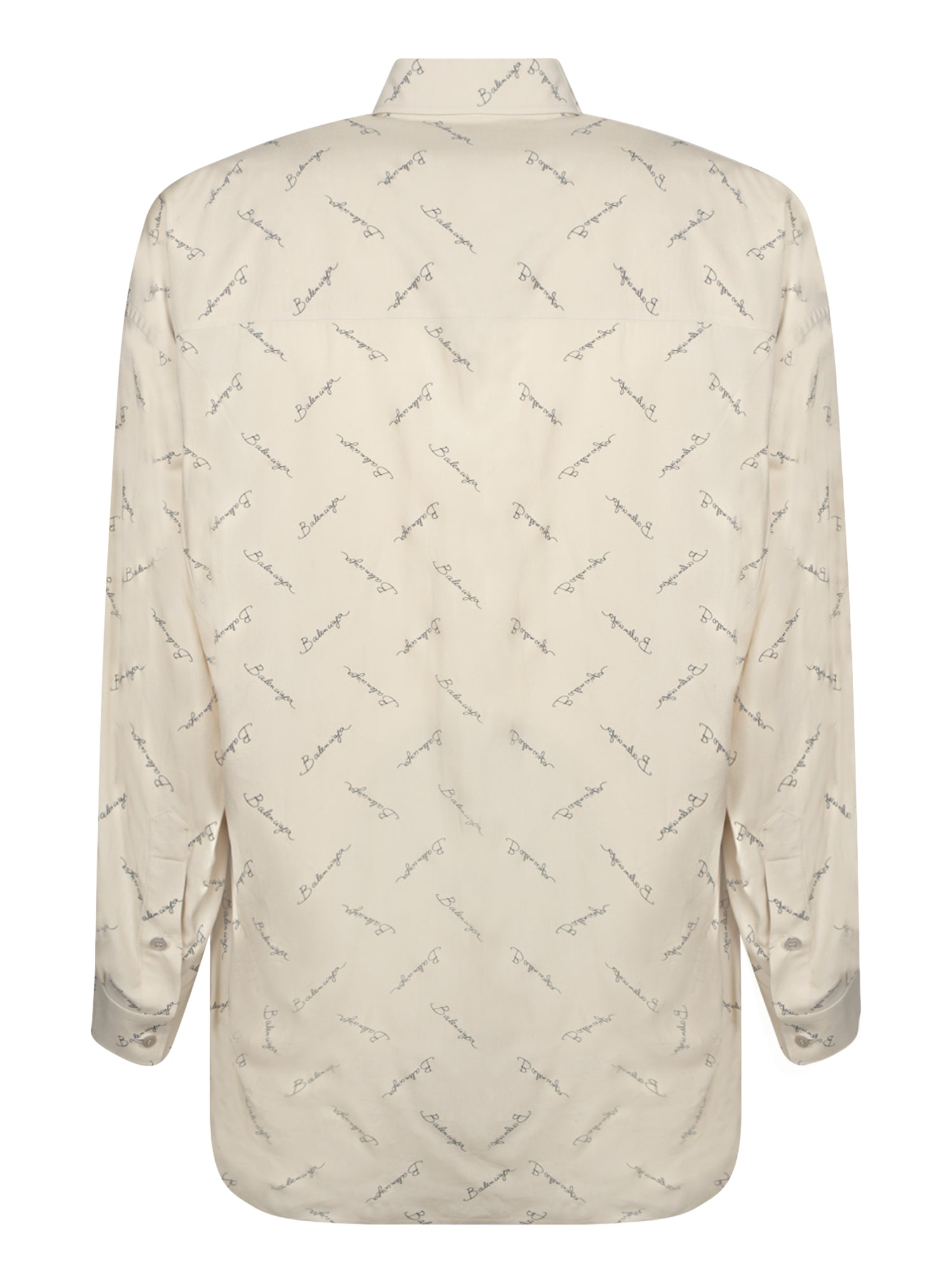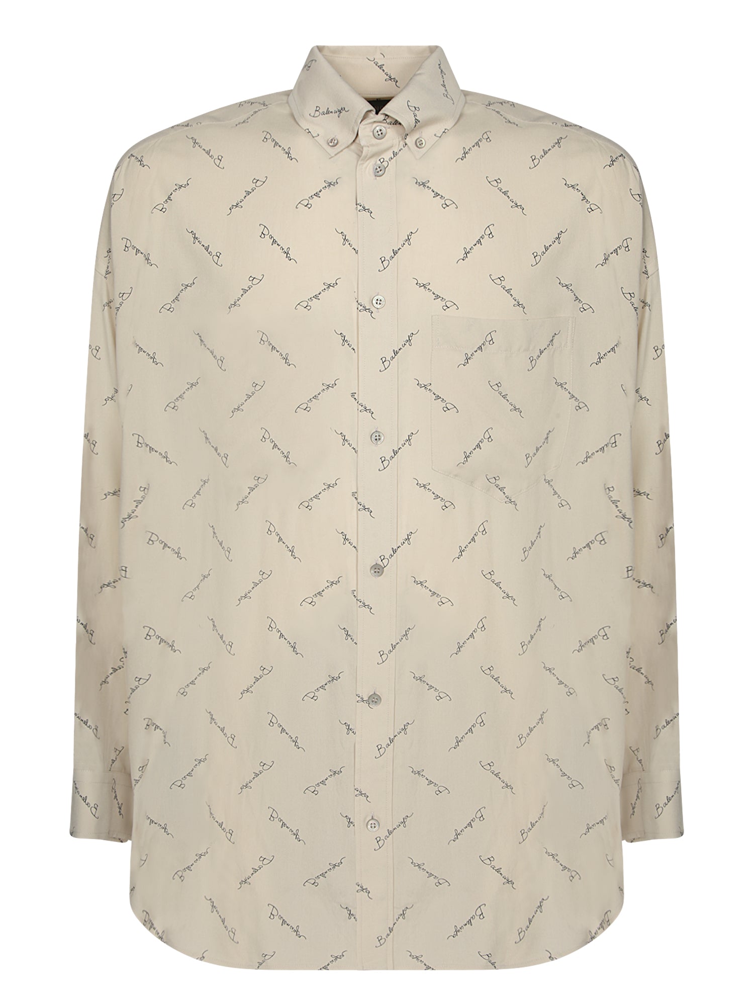 Long-sleeve shirt in a lightweight fabric. Features an all-over repetitive Balenciaga logo pattern. Front button closure.