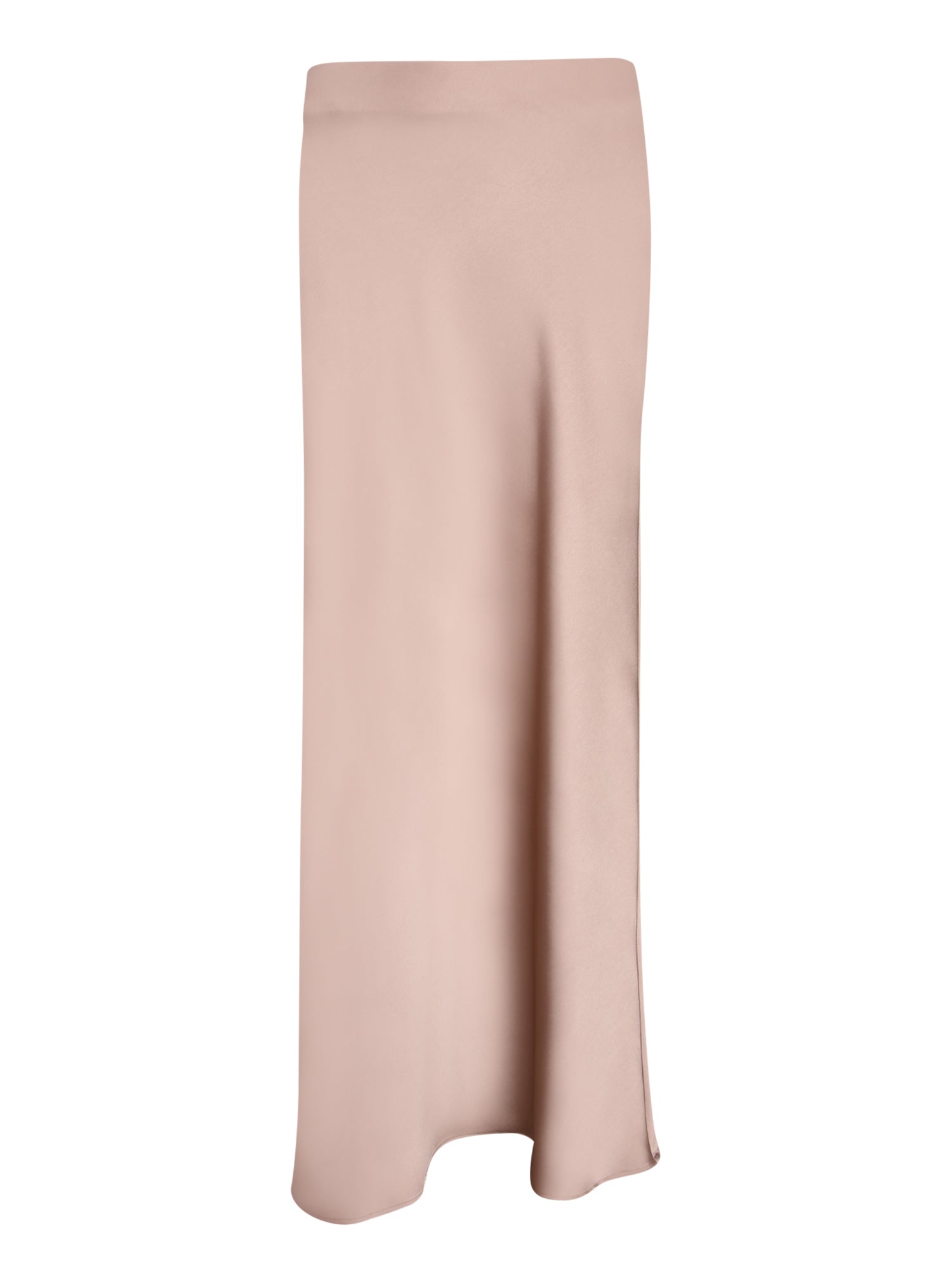Asymmetrical midi skirt in satin. Elegant diagonal line. Hidden closure.