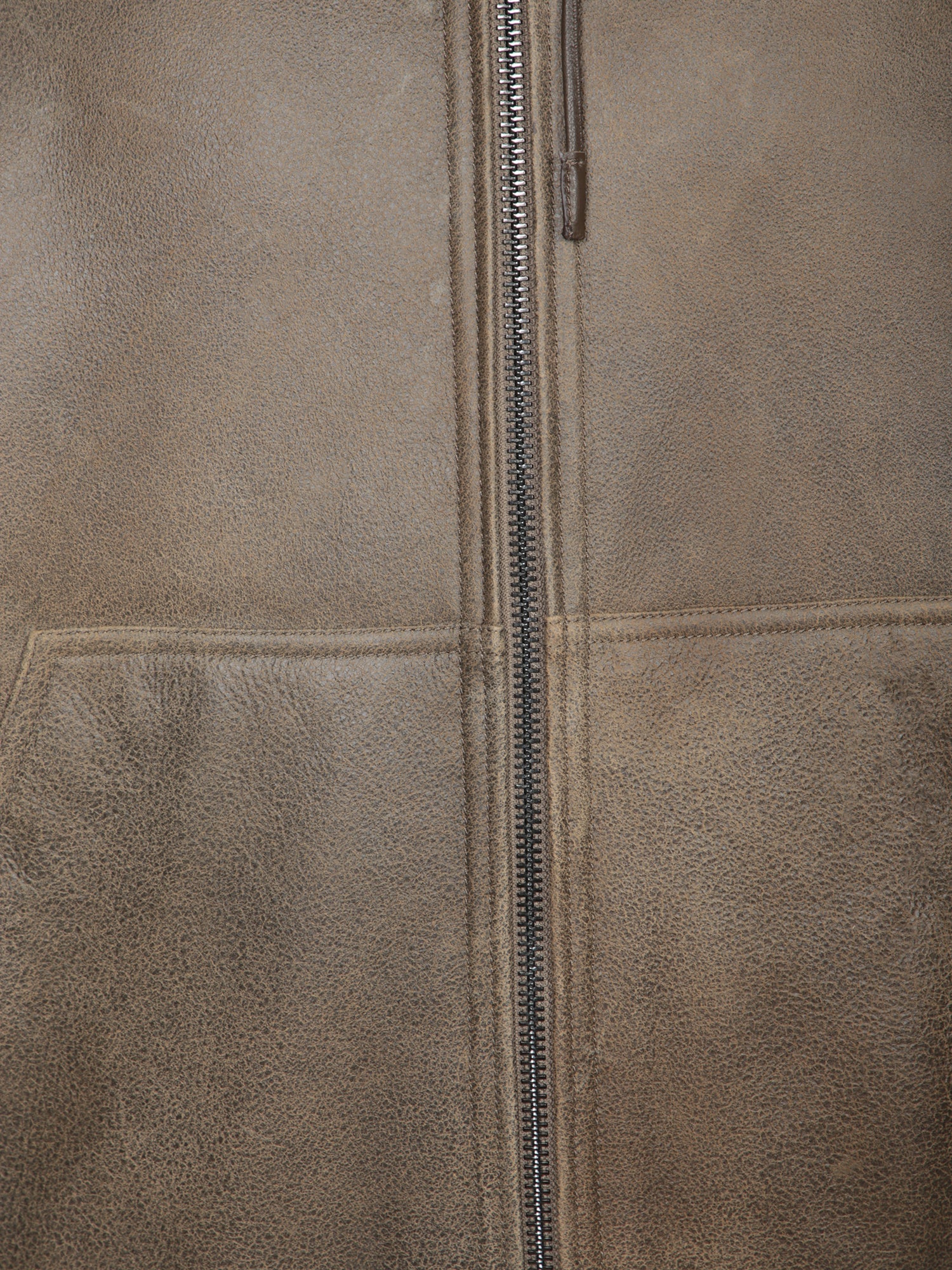 Beige Sherling Leather Zip Jacket