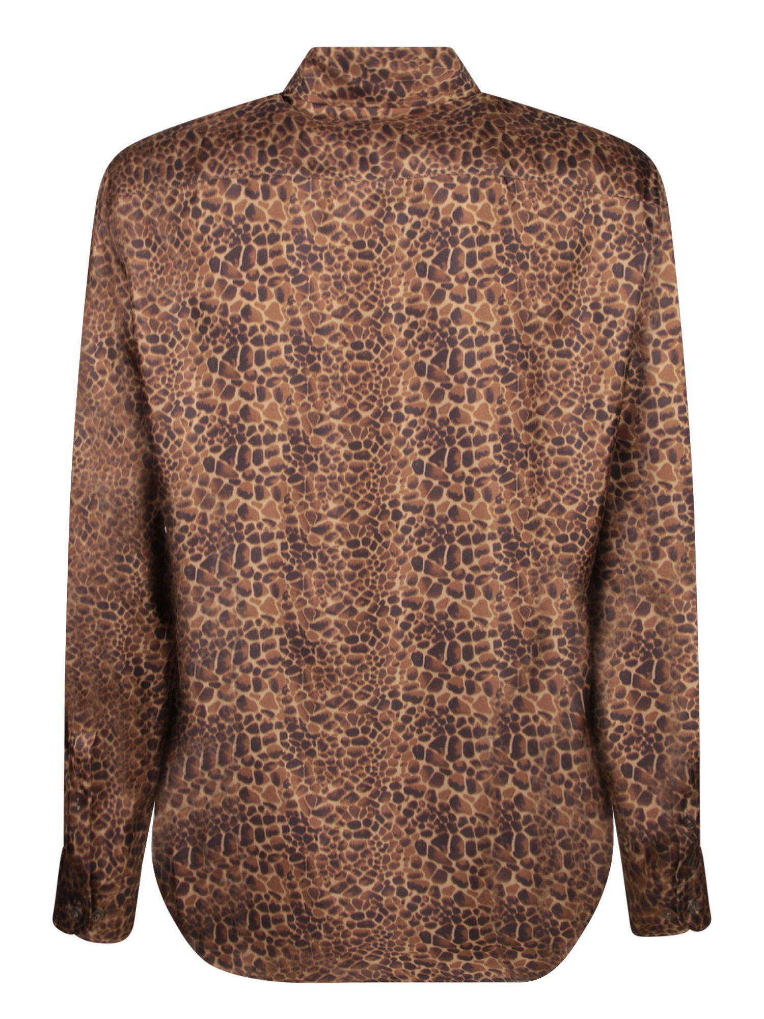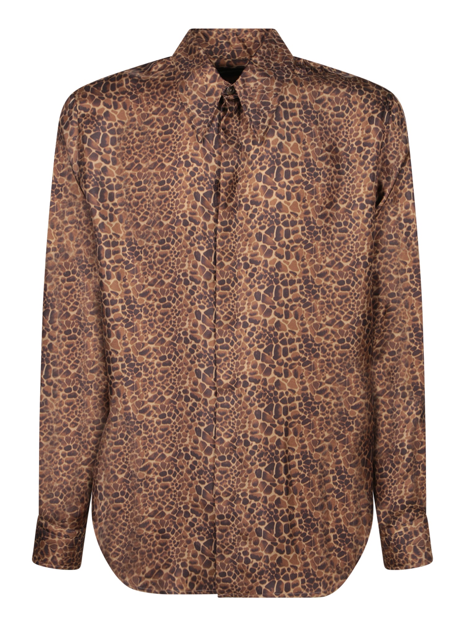 Long sleeve silk shirt. Cocco print design. Front button closure.