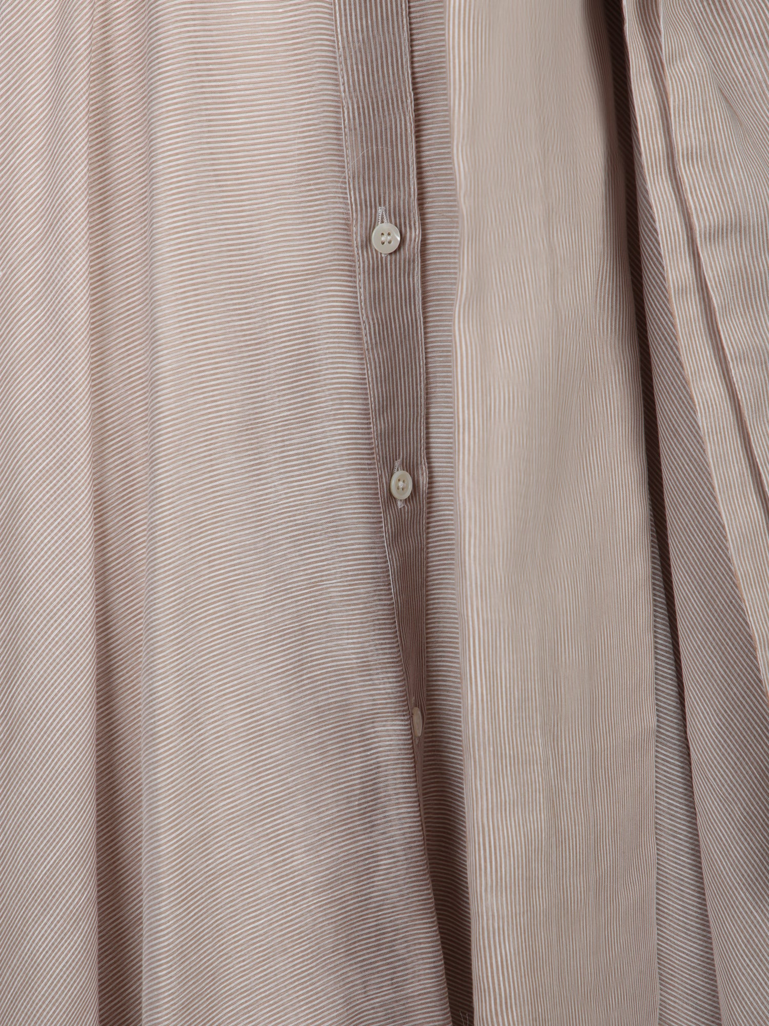 This elegant shirt dress from Blanca Vita is crafted from lightweight pure silk with vertical stripes pattern. Featuring a classic collar and button closure, it stands out with a fabric belt that enhances the feminine silhouette.