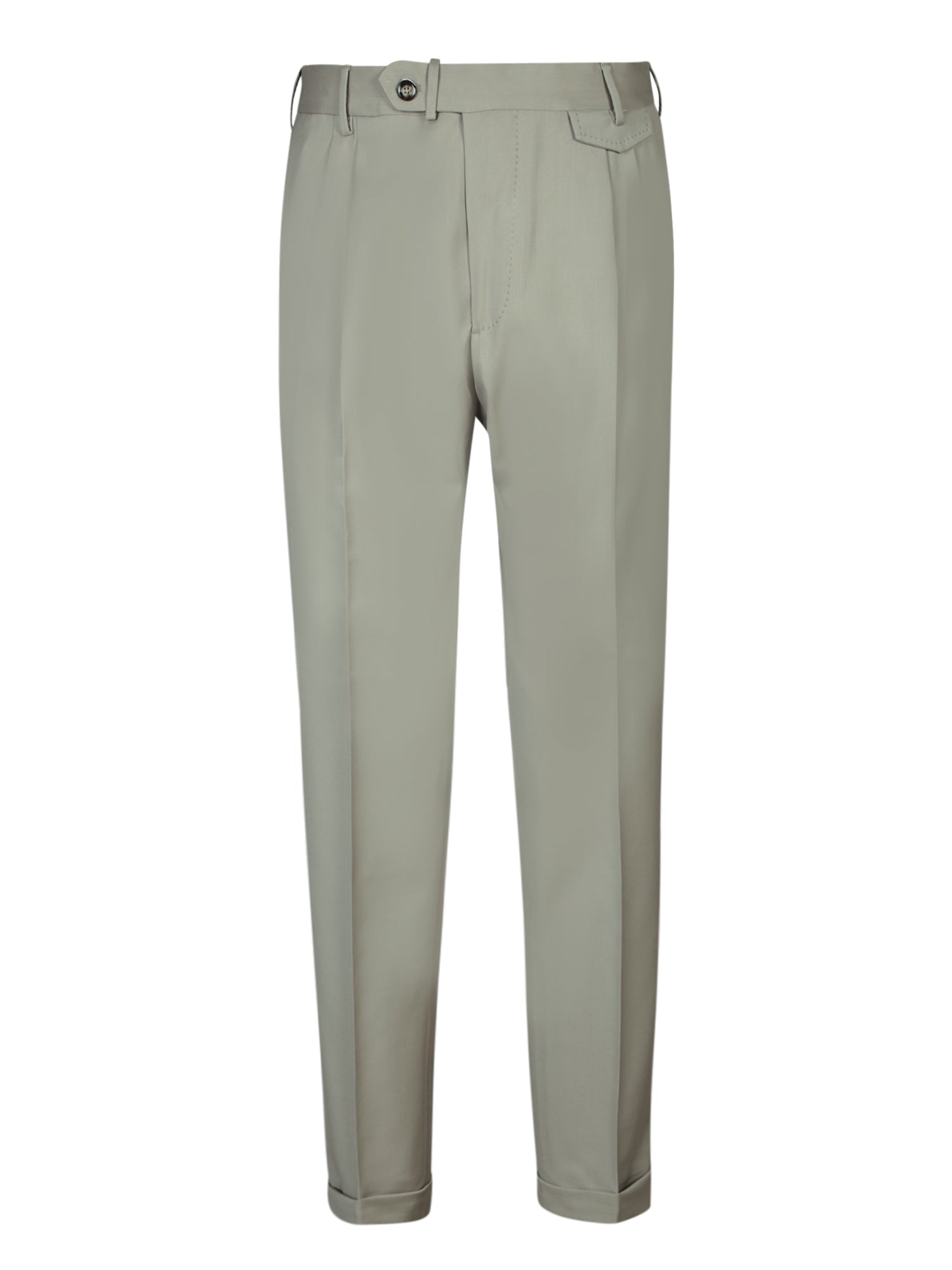 Soft fabric trousers, wide cut, minimalist design, uniform beige color.