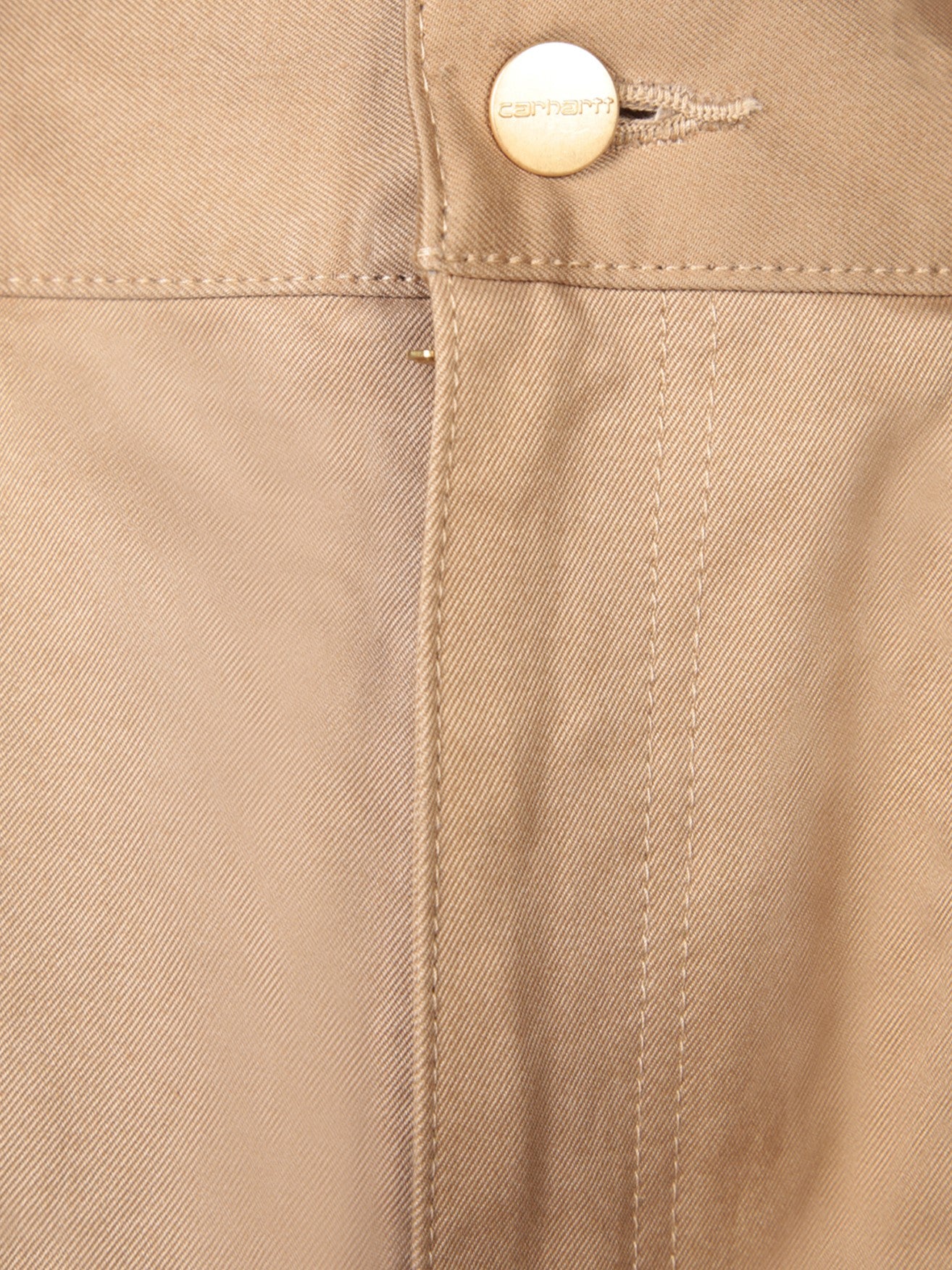 Smooth fabric trousers, button and zip closure, side pockets, cargo pocket on the right leg.