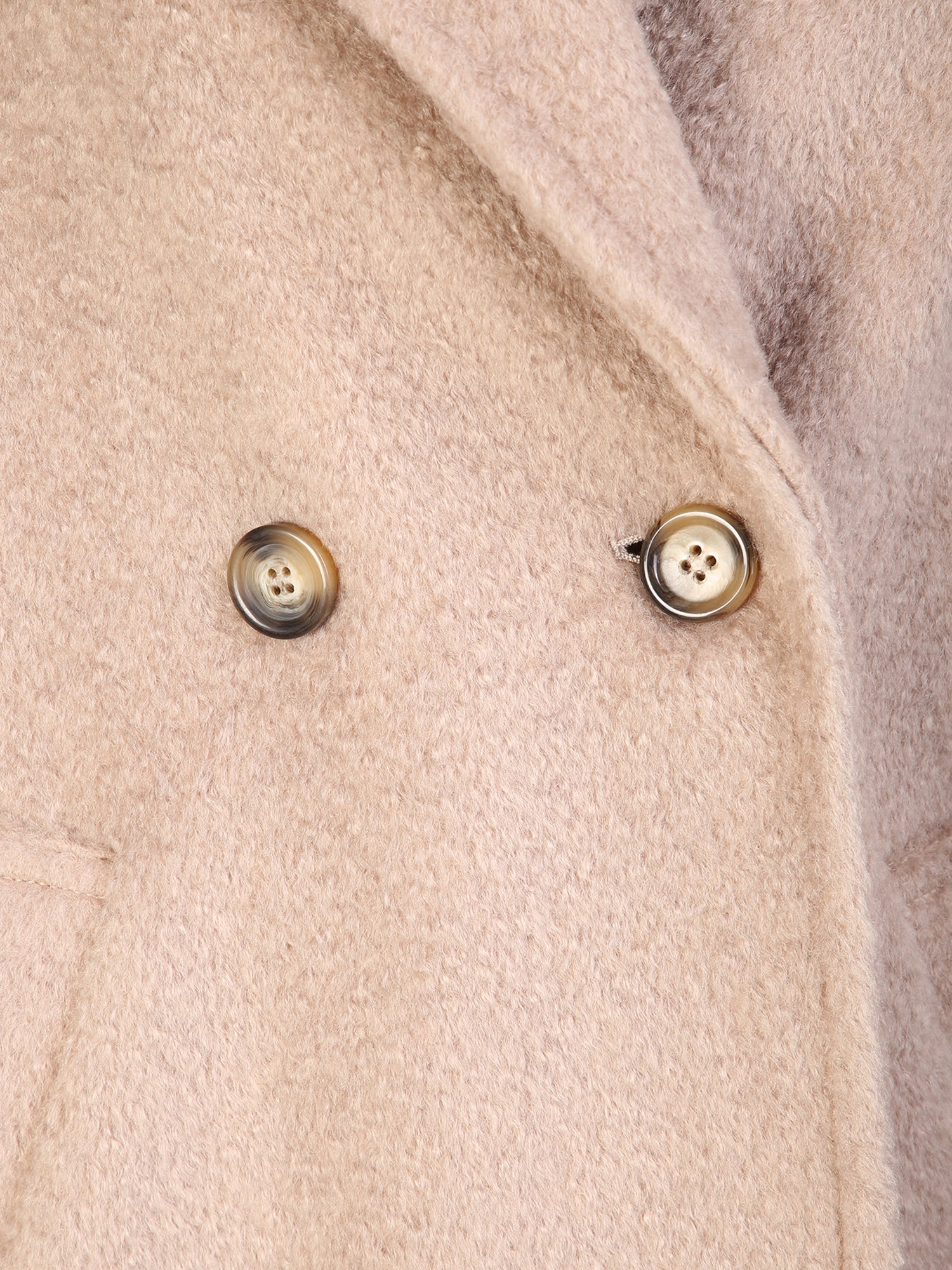 Notched lapels. Long sleeves. Double-breasted button fastening. Bouclè construction. Two side slit pockets. Color: beige