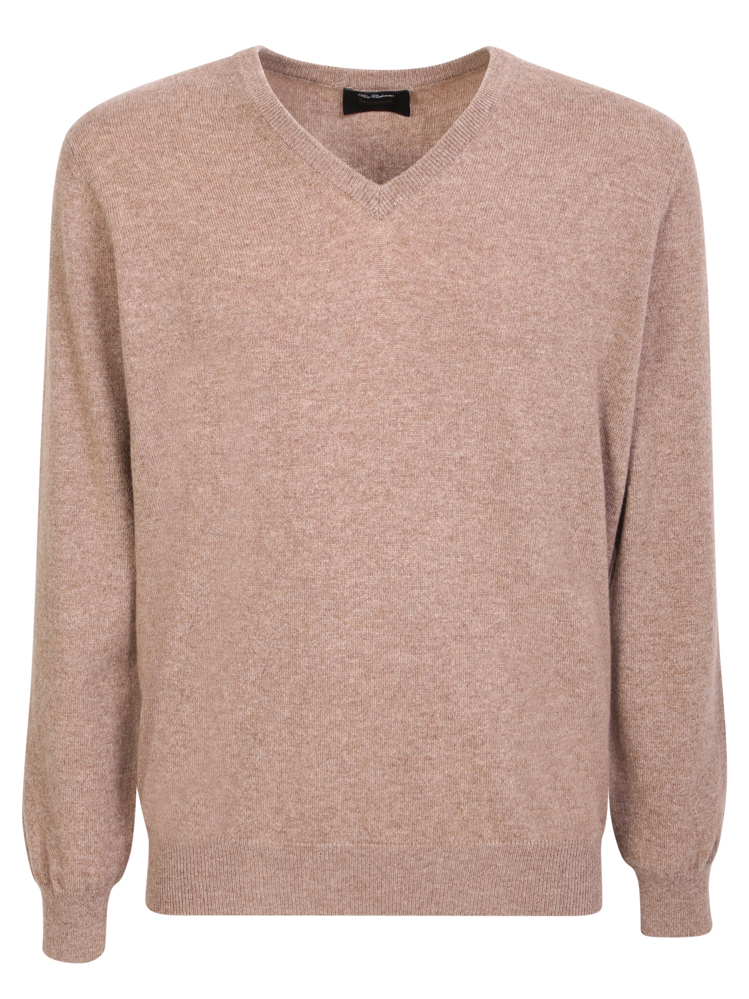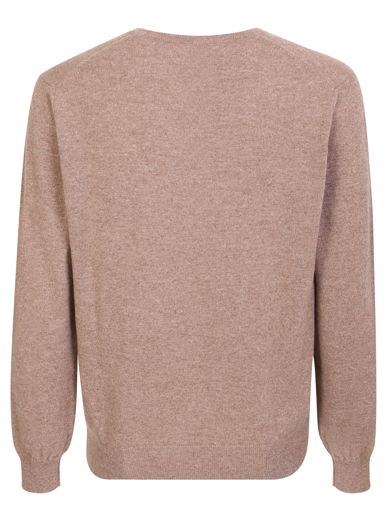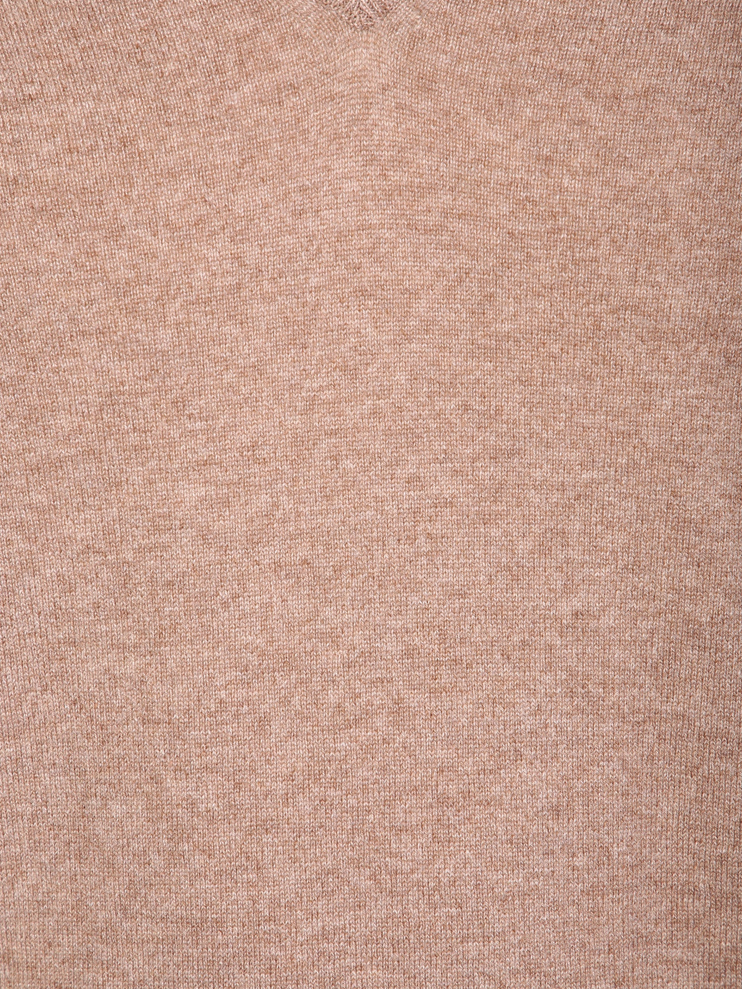 V-neck. Long sleeves. Ribbed neck. Ribbed cuffs. Ribbed edge. Straight hem. Color: mèlange beige
