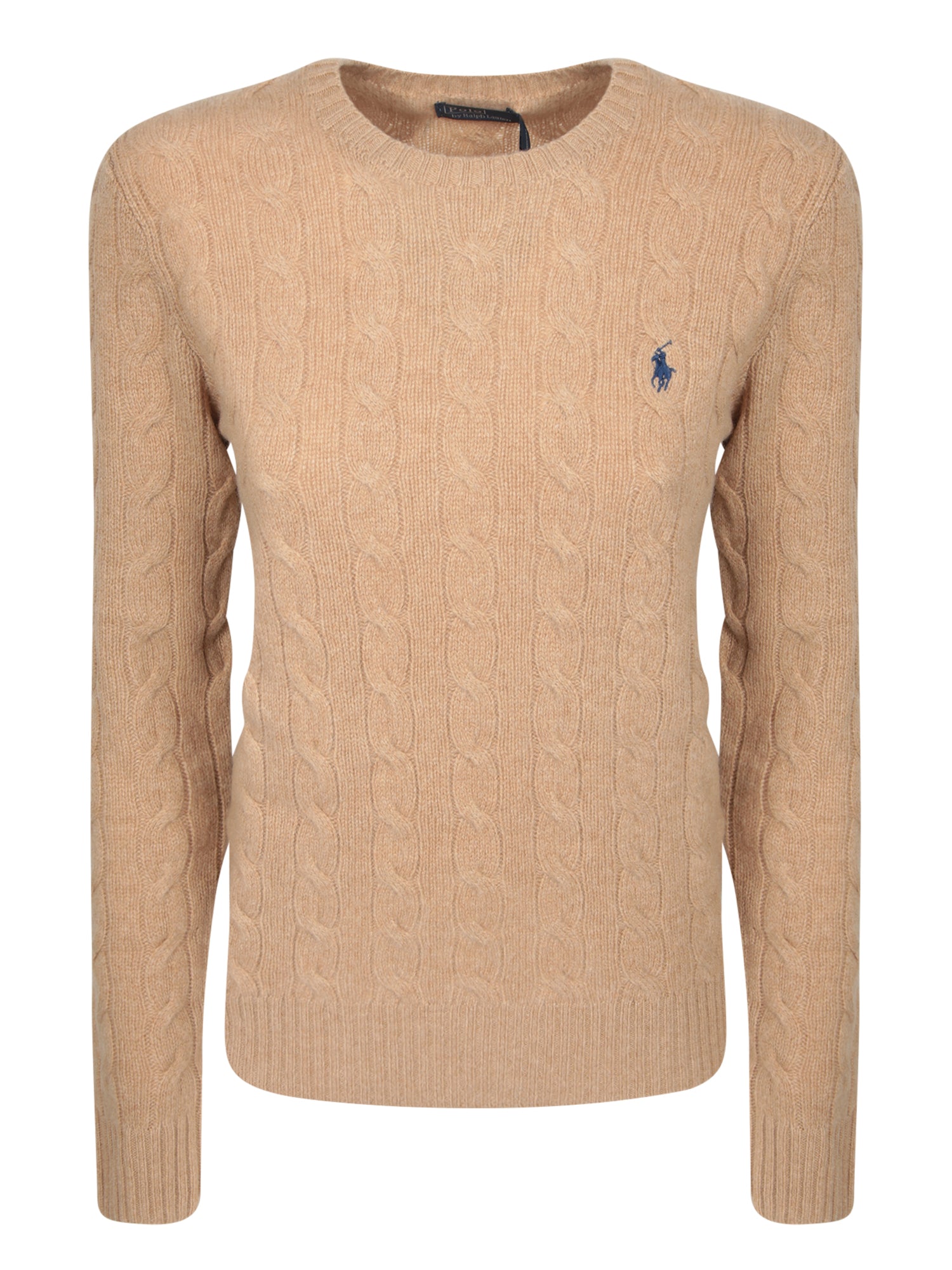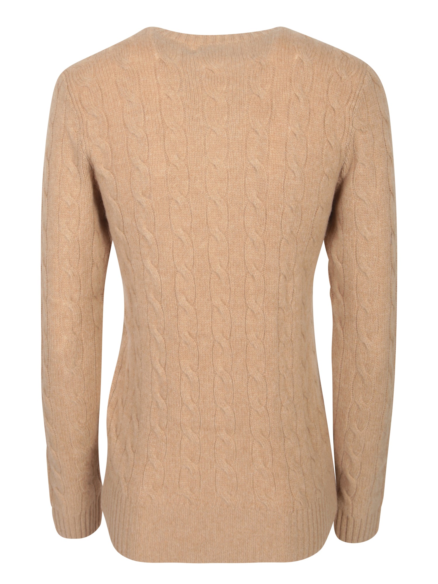 Wool and cashmere sweater. Cable knit design. Embroidered logo on the chest.
