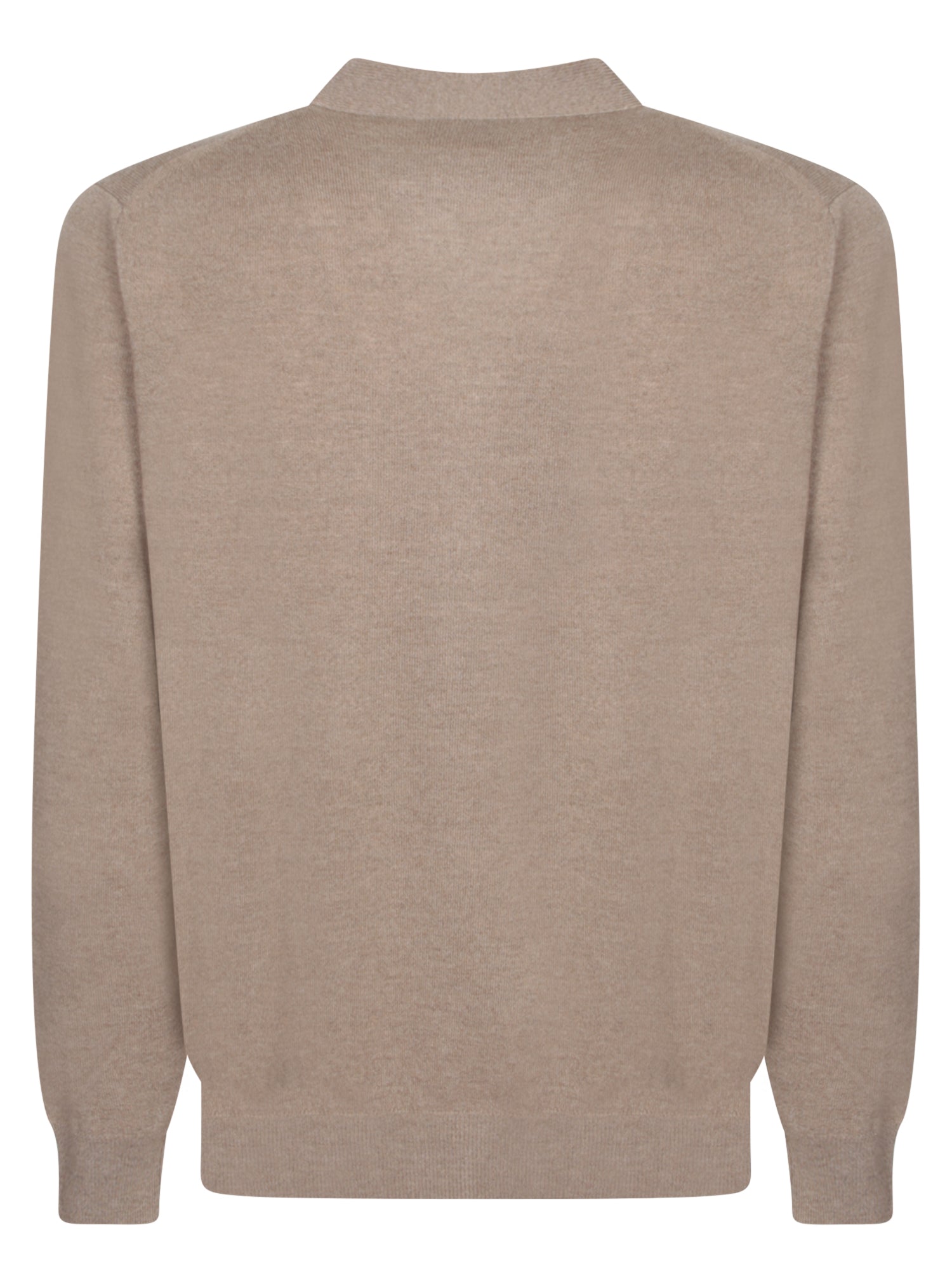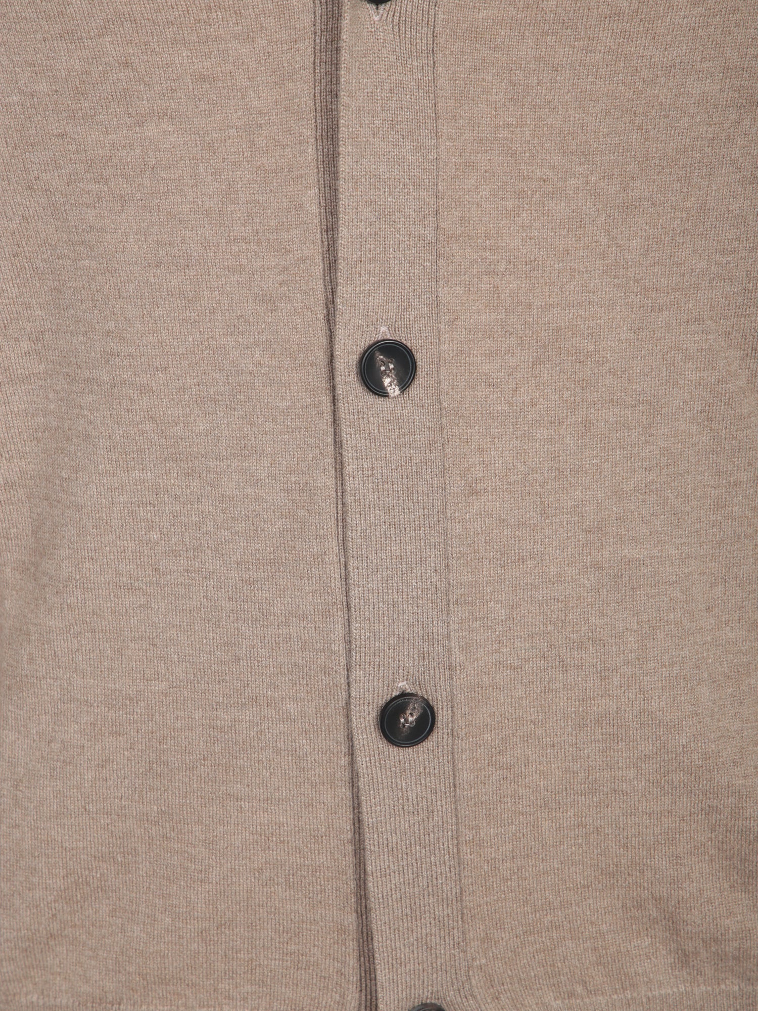 Long sleeve cardigan. Blend of wool, silk, and cashmere fabric. Front button closure.