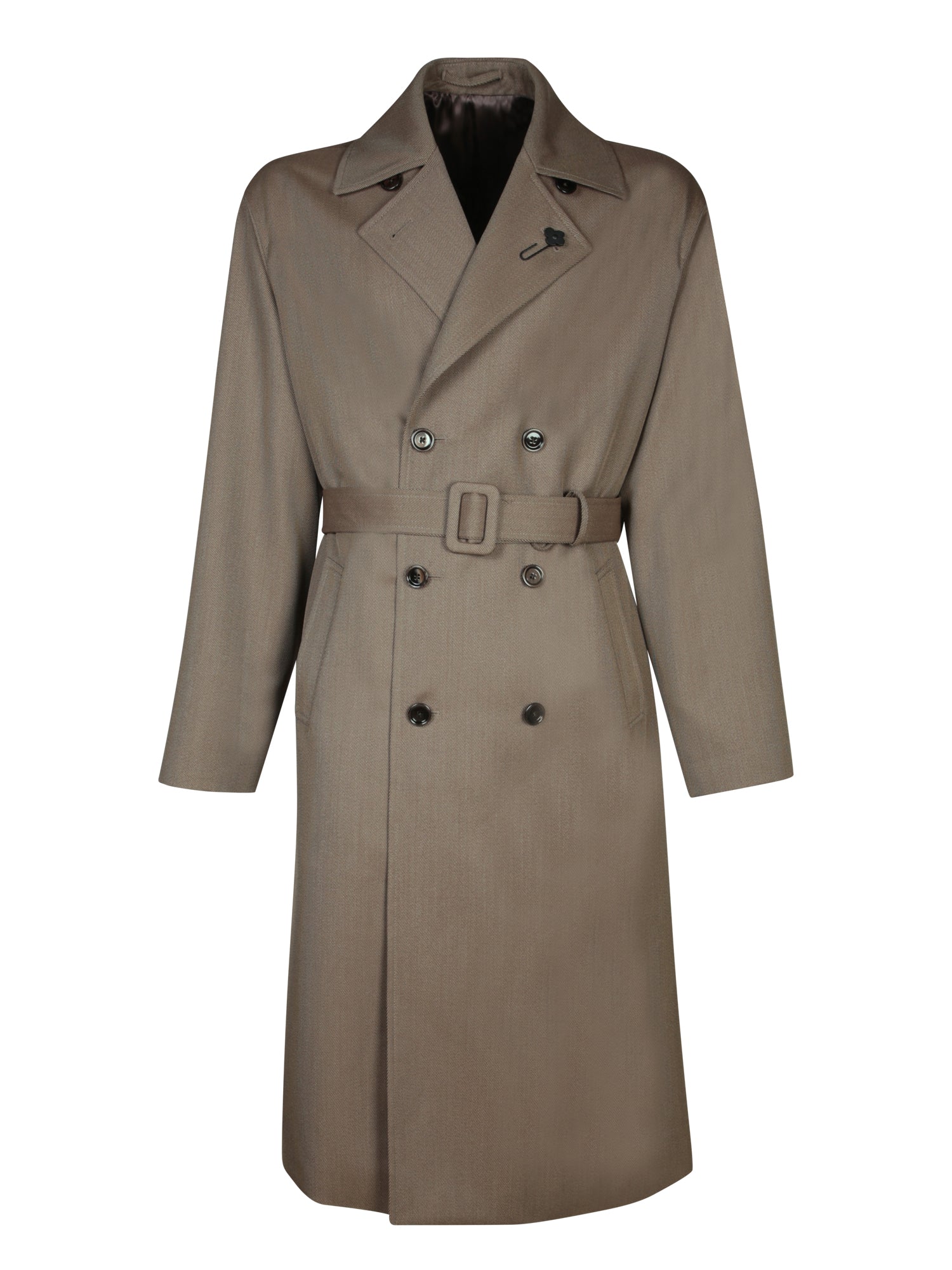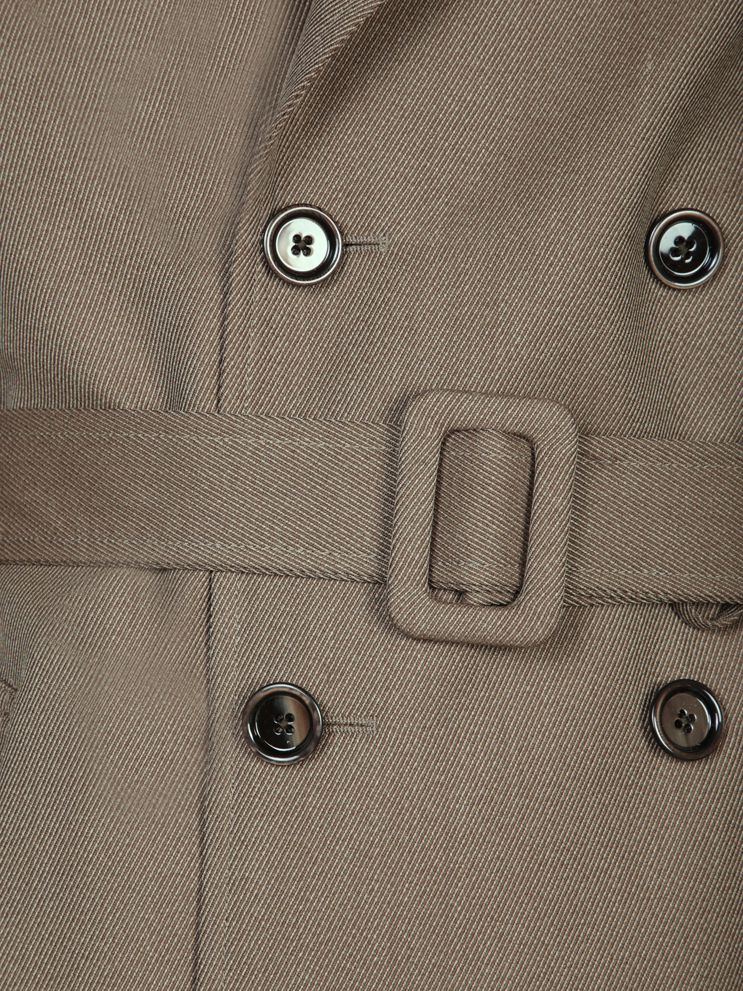 Wool trench coat featuring a double-breasted closure. Comes with an adjustable belt, buttoned epaulettes, and side pockets.