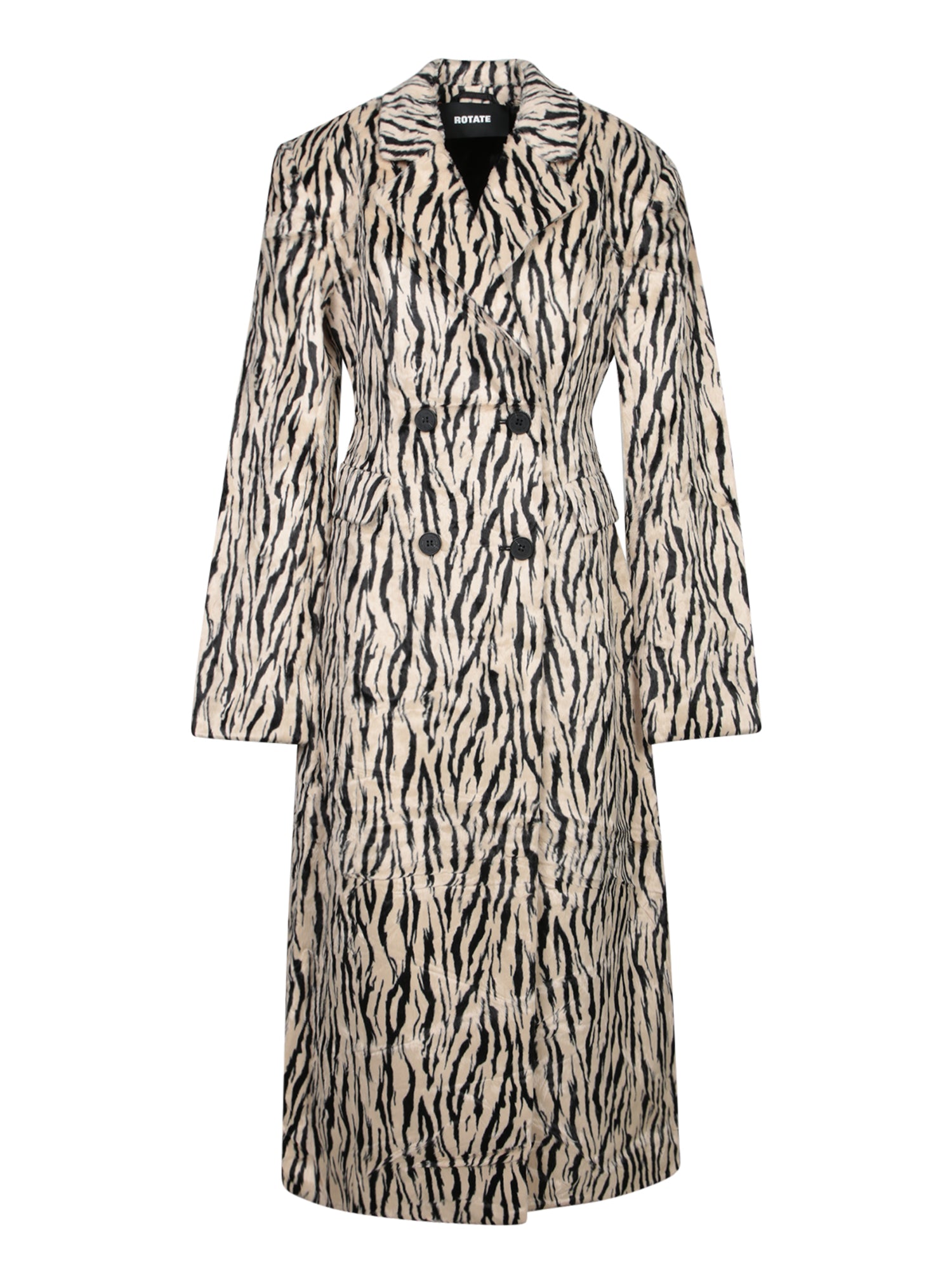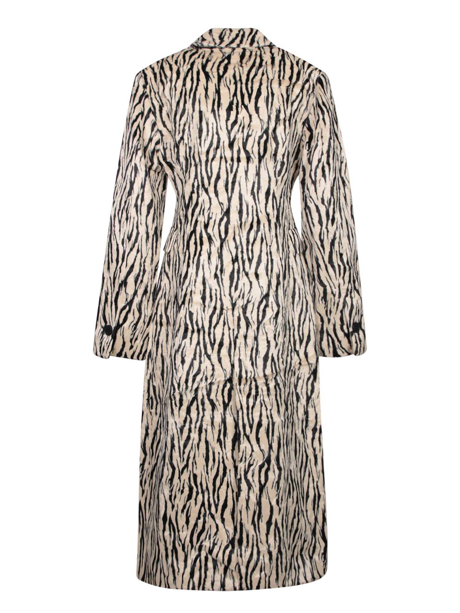 Beige Zebra Stripe Faux Fur Coat
