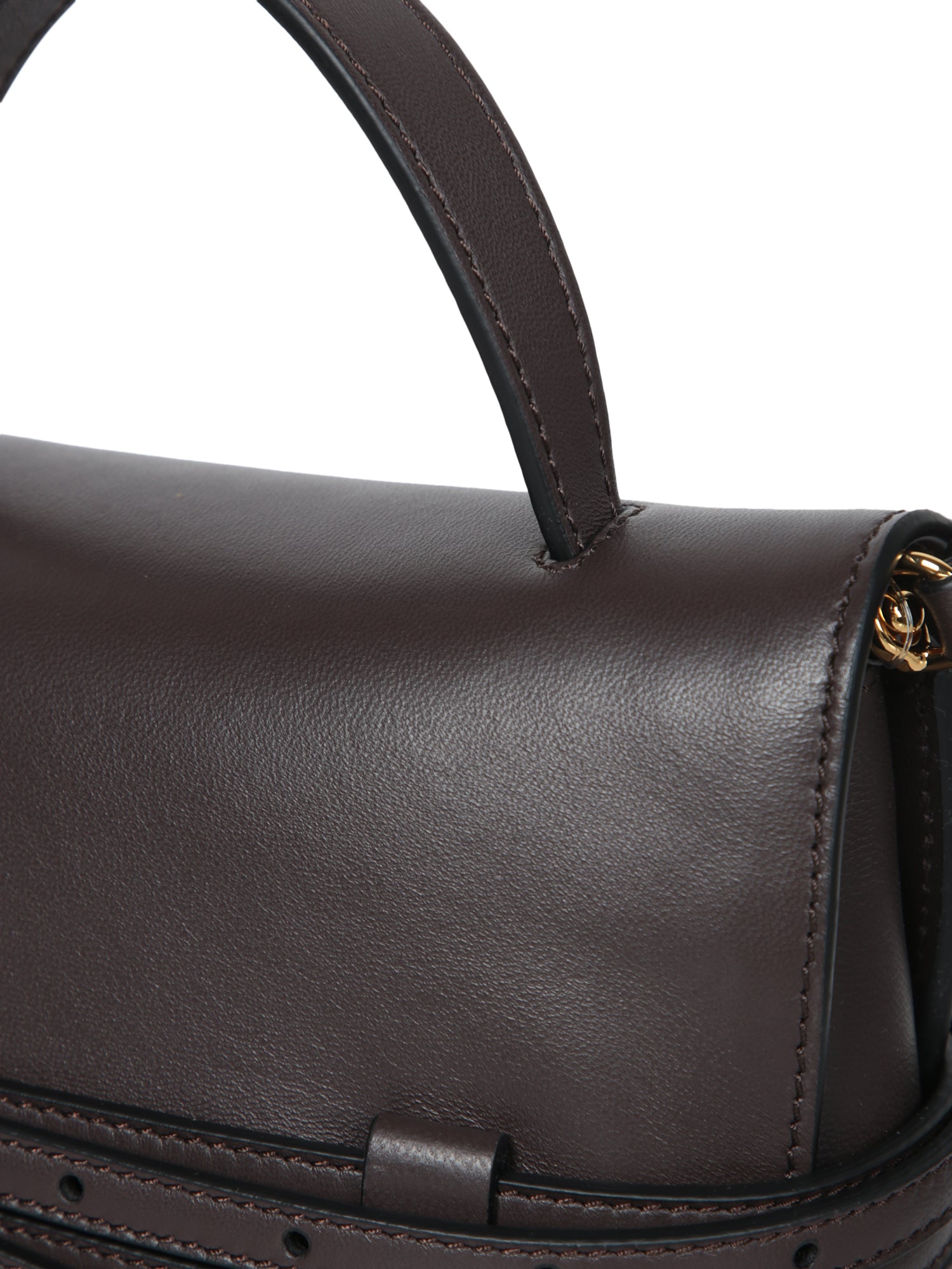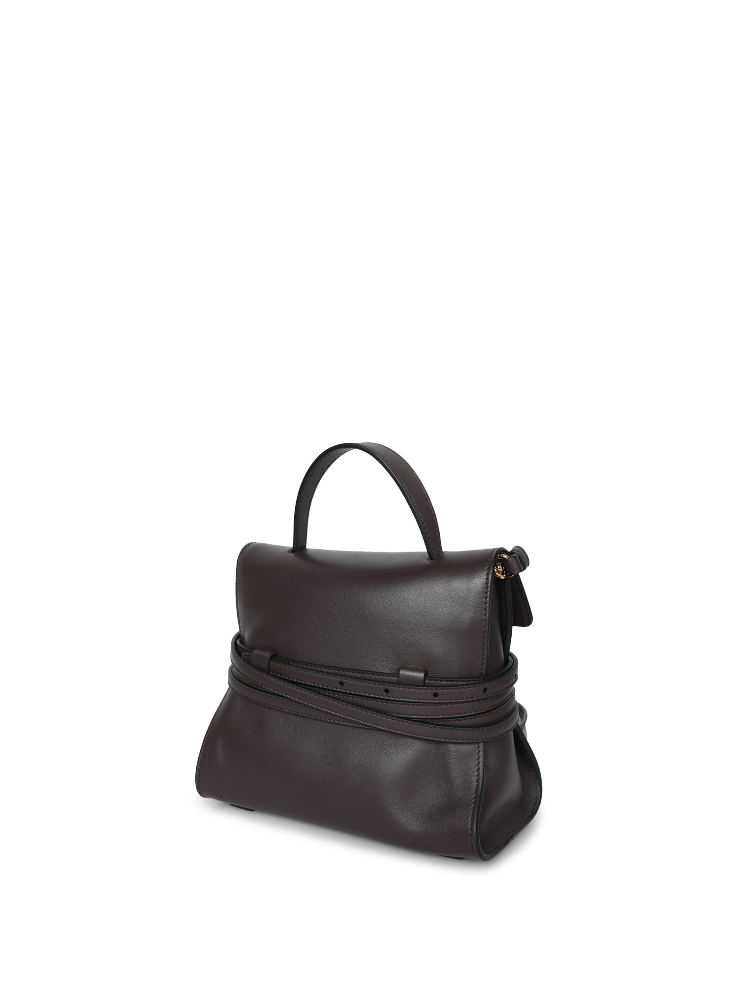 Nappa leather bag. Adjustable and removable shoulder strap. Flap closure.