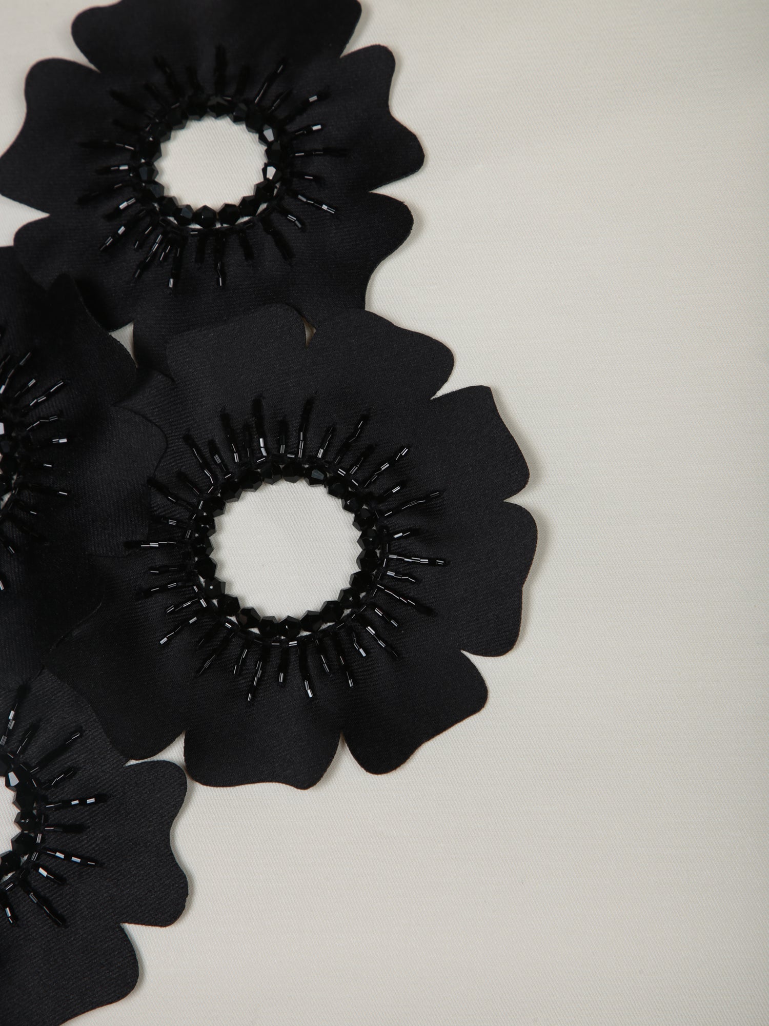 A charming blend of elegance and contemporary style, this MSGM top features three-dimensional black floral decorations that vividly contrast against the white fabric. The lace-up closure at the back adds a unique touch of sophistication.