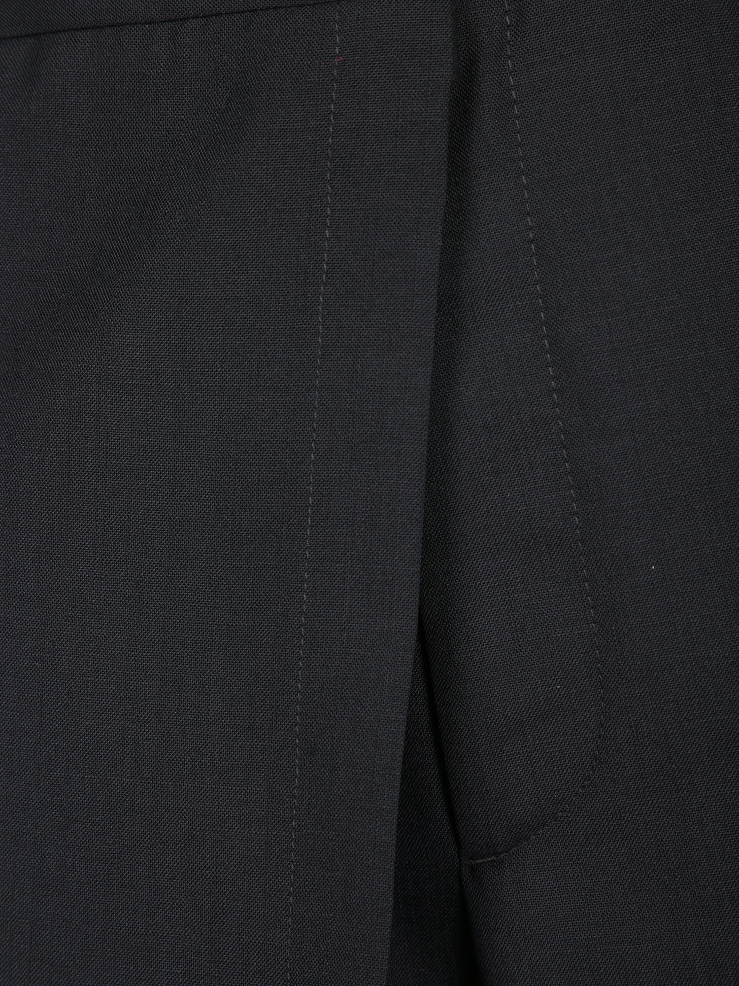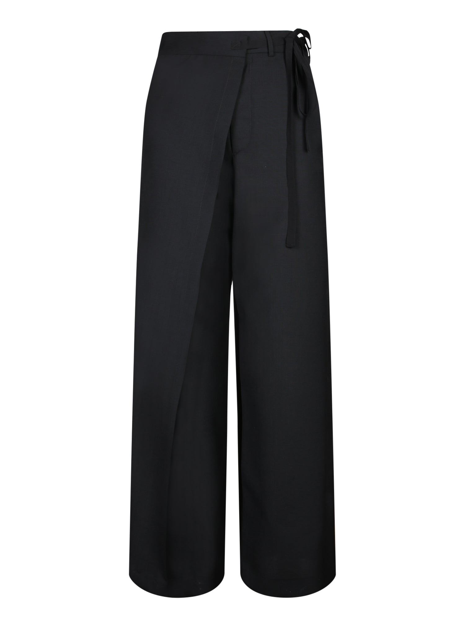 Black canvas trousers with pareo design. High waist with adjustable tie. Wide palazzo leg.