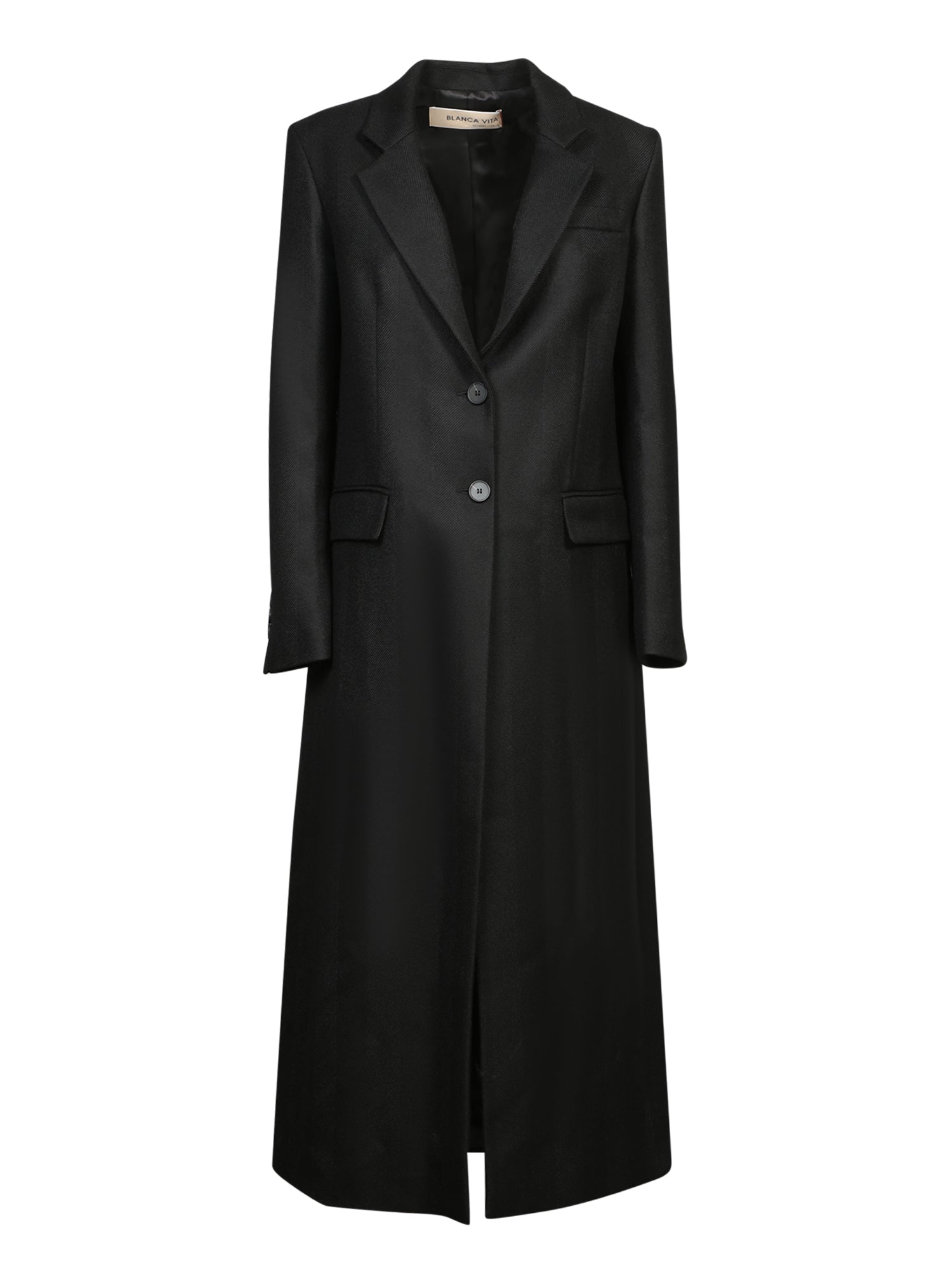 The Black Chevron Wool Blend Coat by Blanca Vita highlights a timeless design. Its sophisticated structure and elegant fit make it perfect for the winter season.