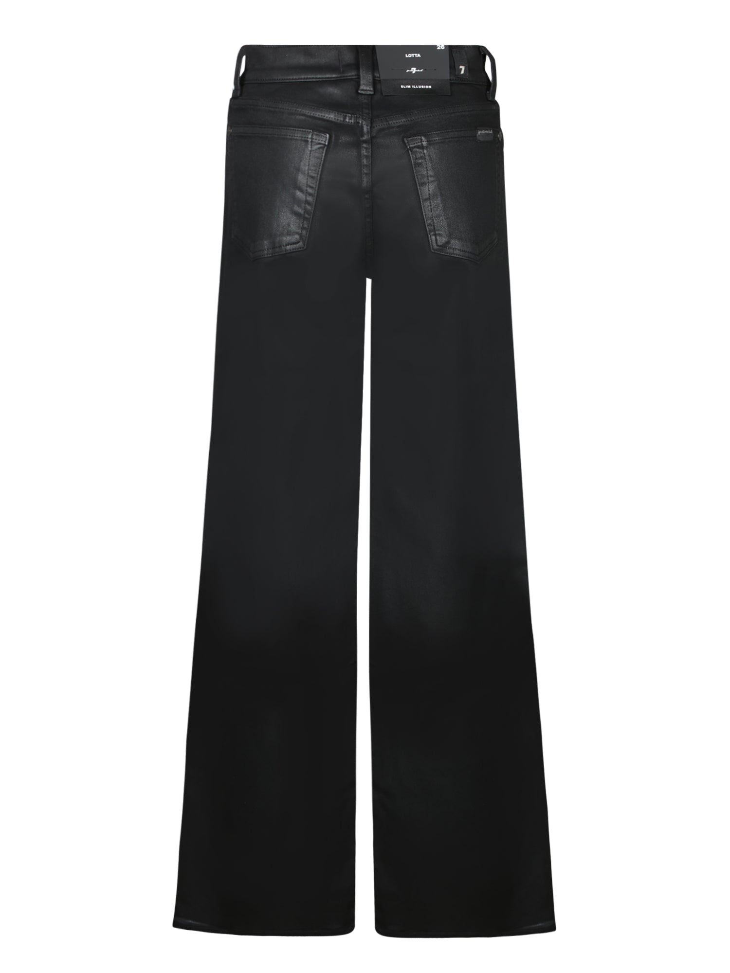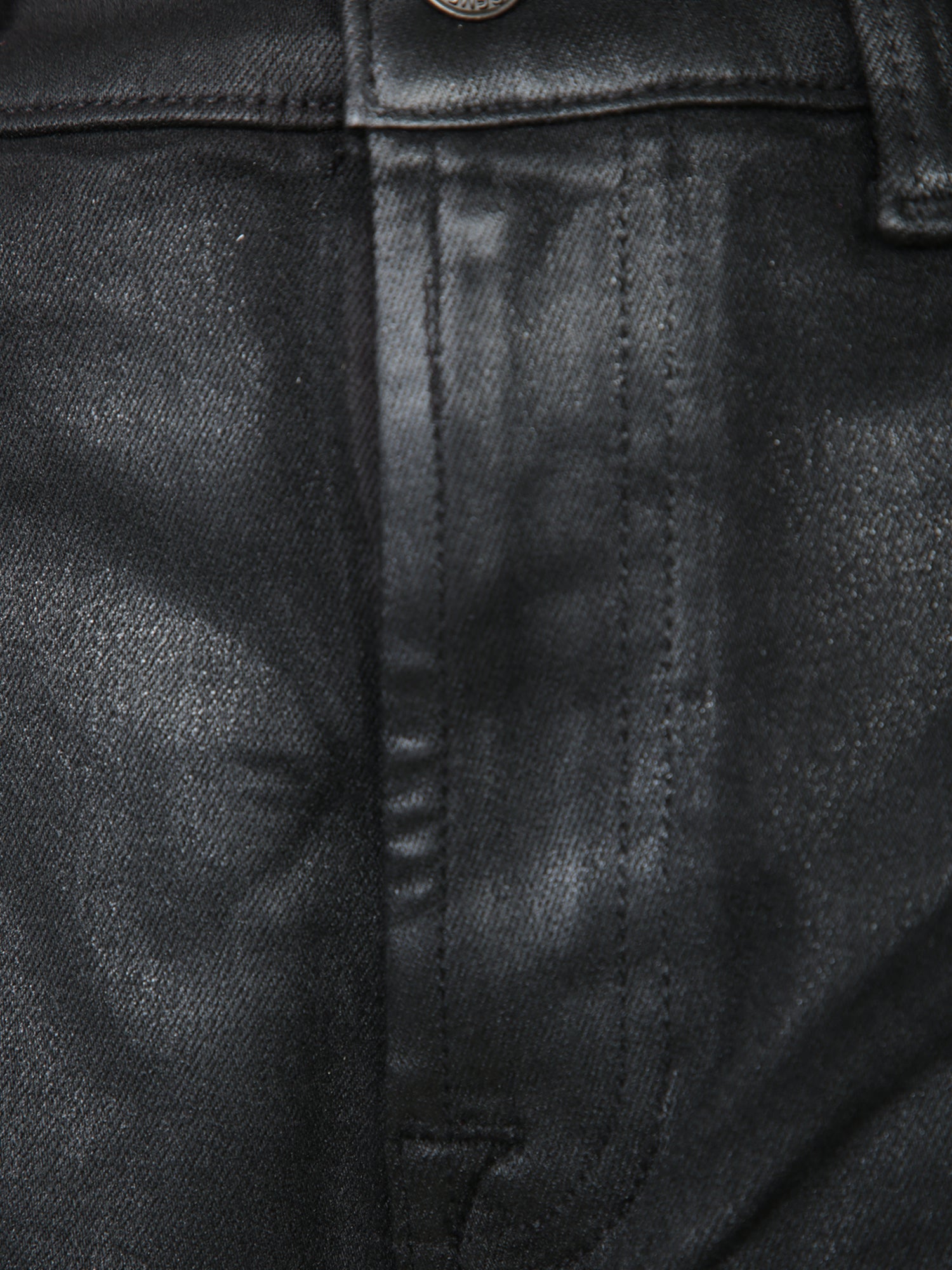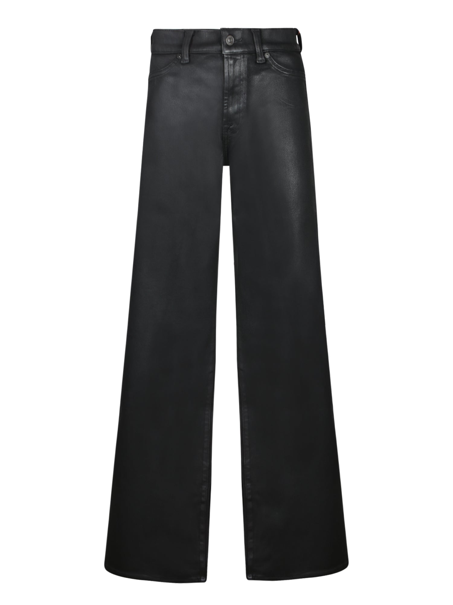 Coated bootcut jeans. Front button and zip closure. Five-pocket style.