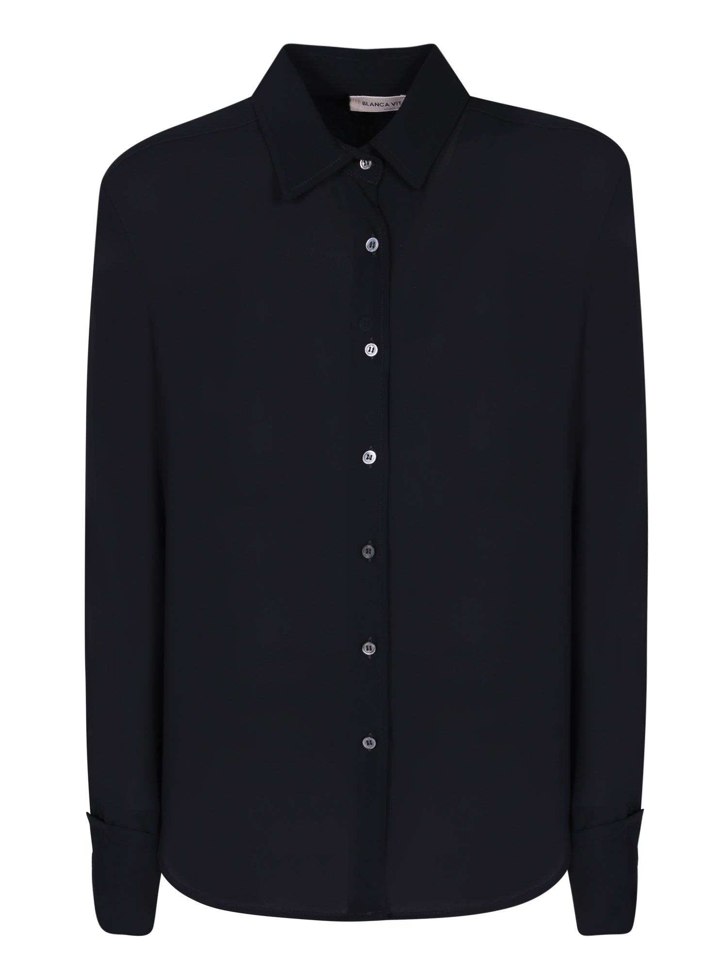 Crepe shirt with button closure. Classic collar and long sleeves with buttoned cuffs.