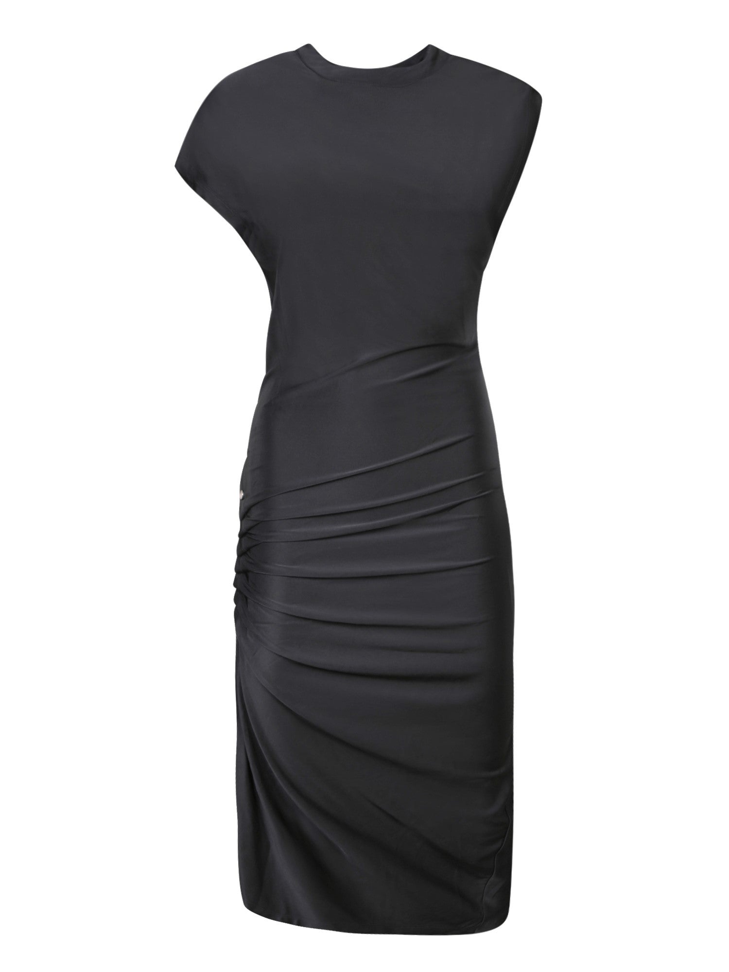 Sleeveless dress. Asymmetric design. Viscose fabric.