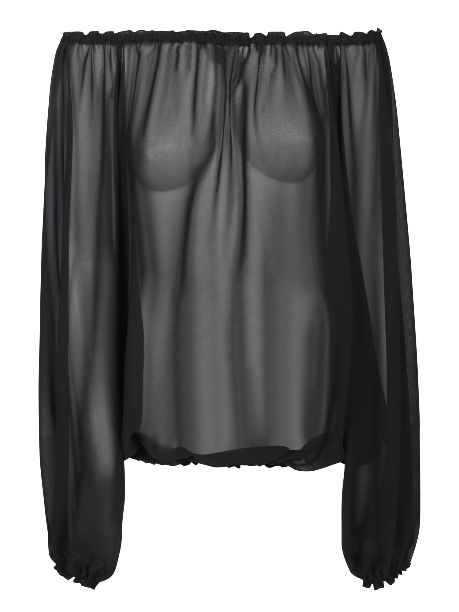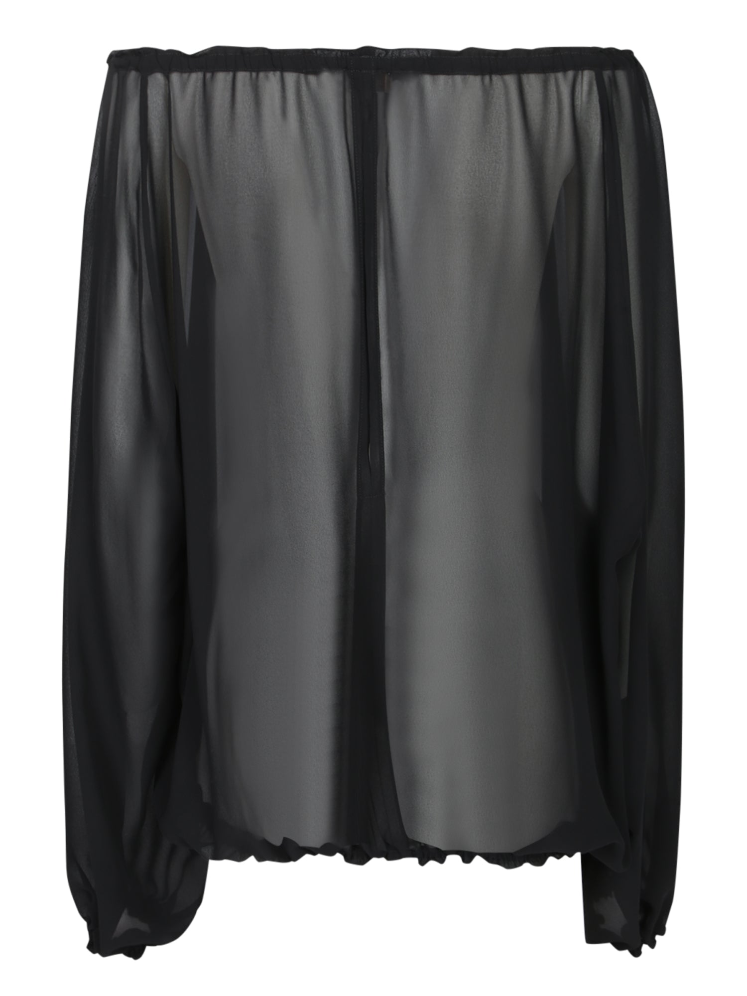 Long sleeves. Gathered detailing at the neck and sleeves. Semi-sheer georgette fabric.