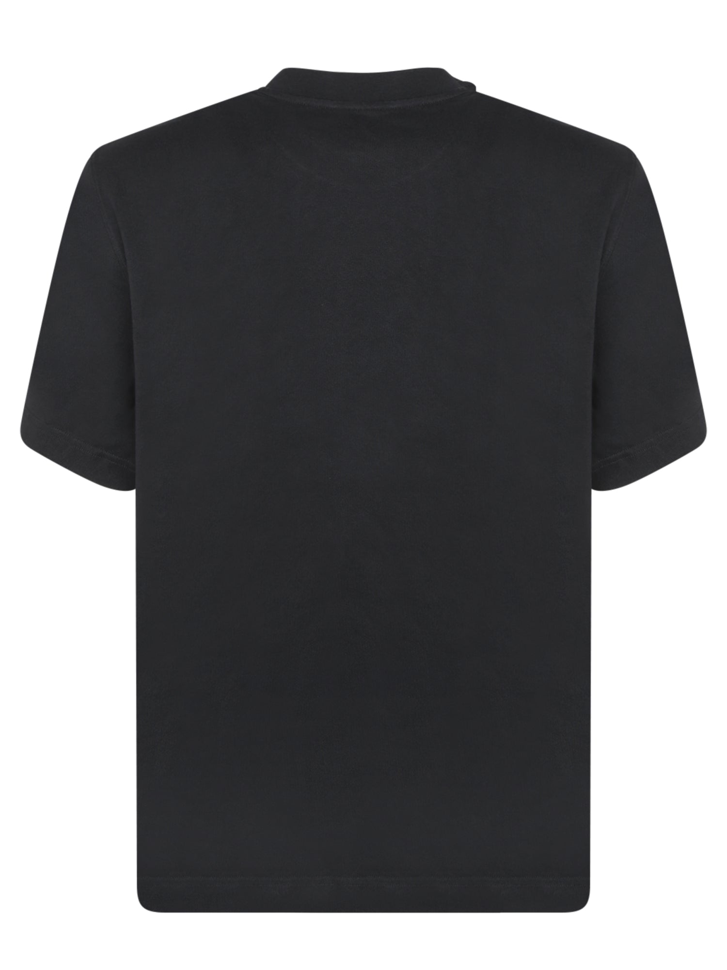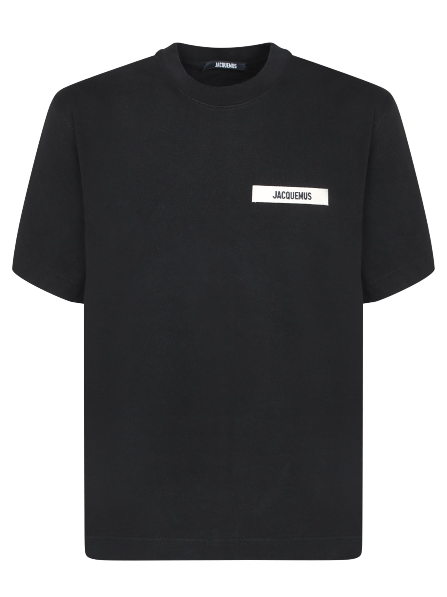 Black cotton t-shirt. Short sleeves. 'JACQUEMUS' logo on a white label applied on the front.