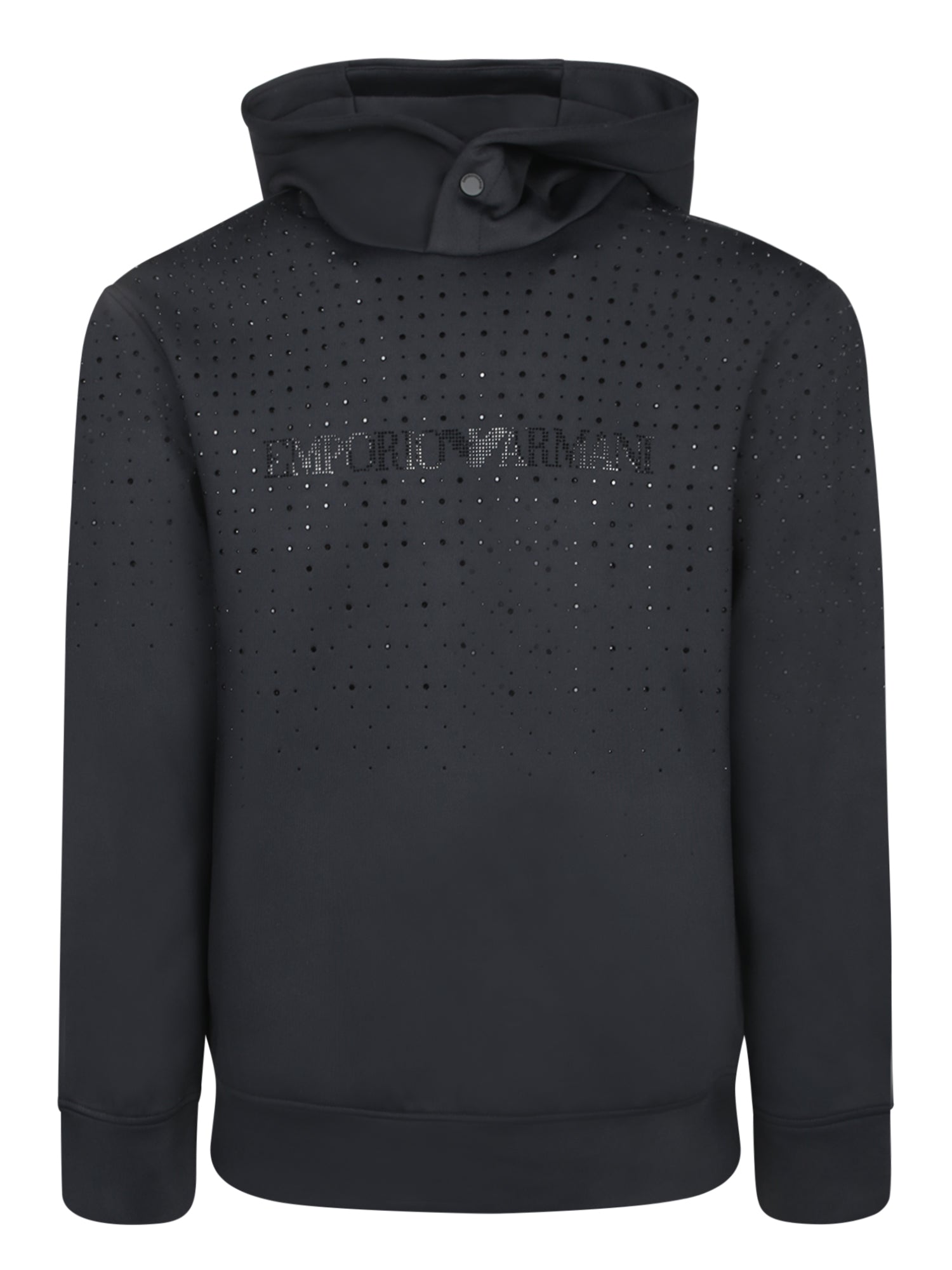 Hooded sweatshirt in technical fabric. Emporio Armani logo in rhinestones. Elasticated cuffs and hem.