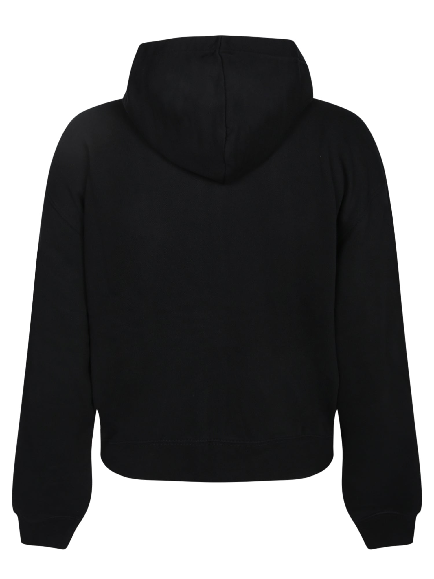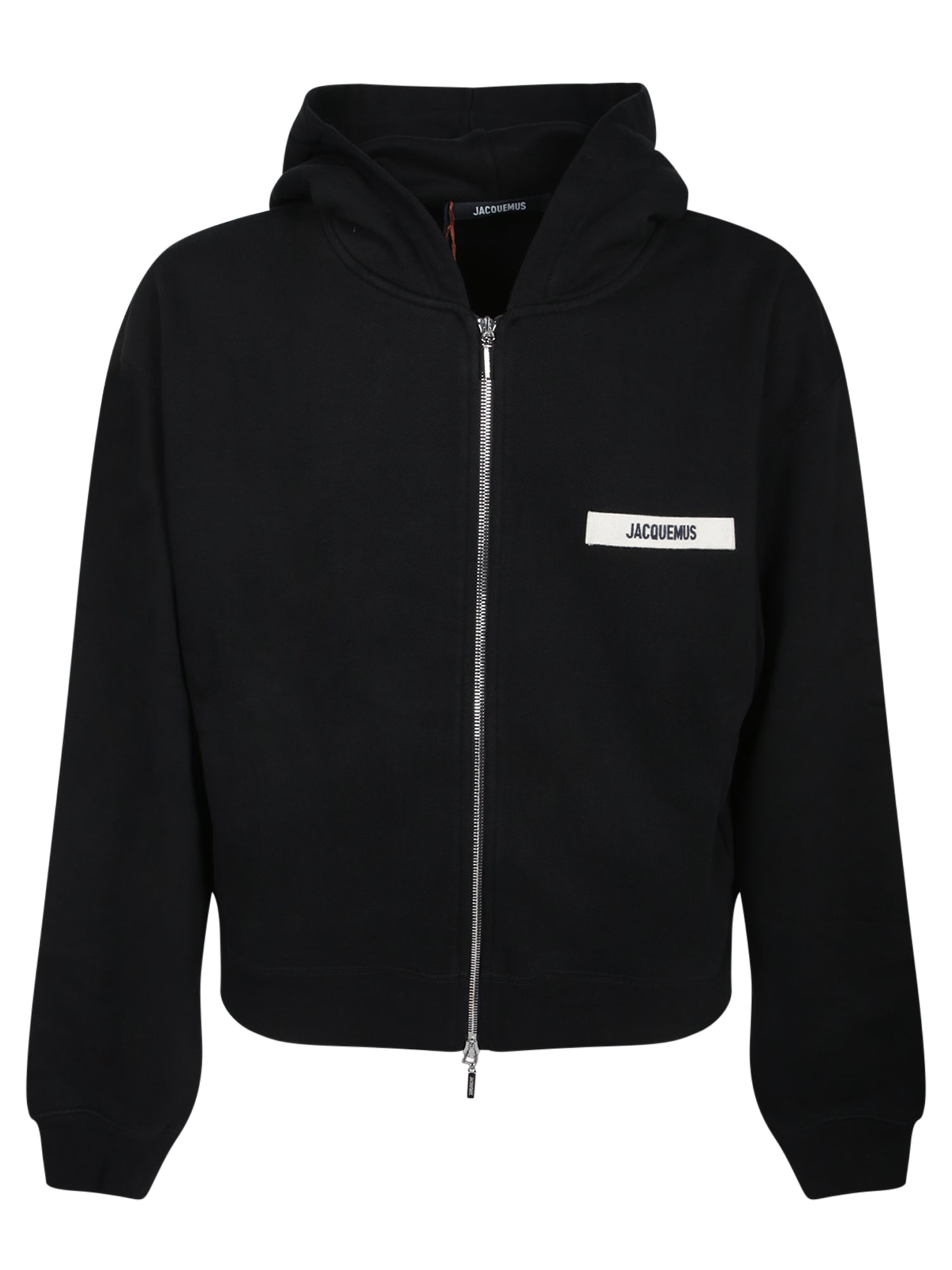Exclusive black hoodie featuring a clean and modern design. Equipped with an adjustable hood and gros-grain zip, adding a touch of casual elegance.
