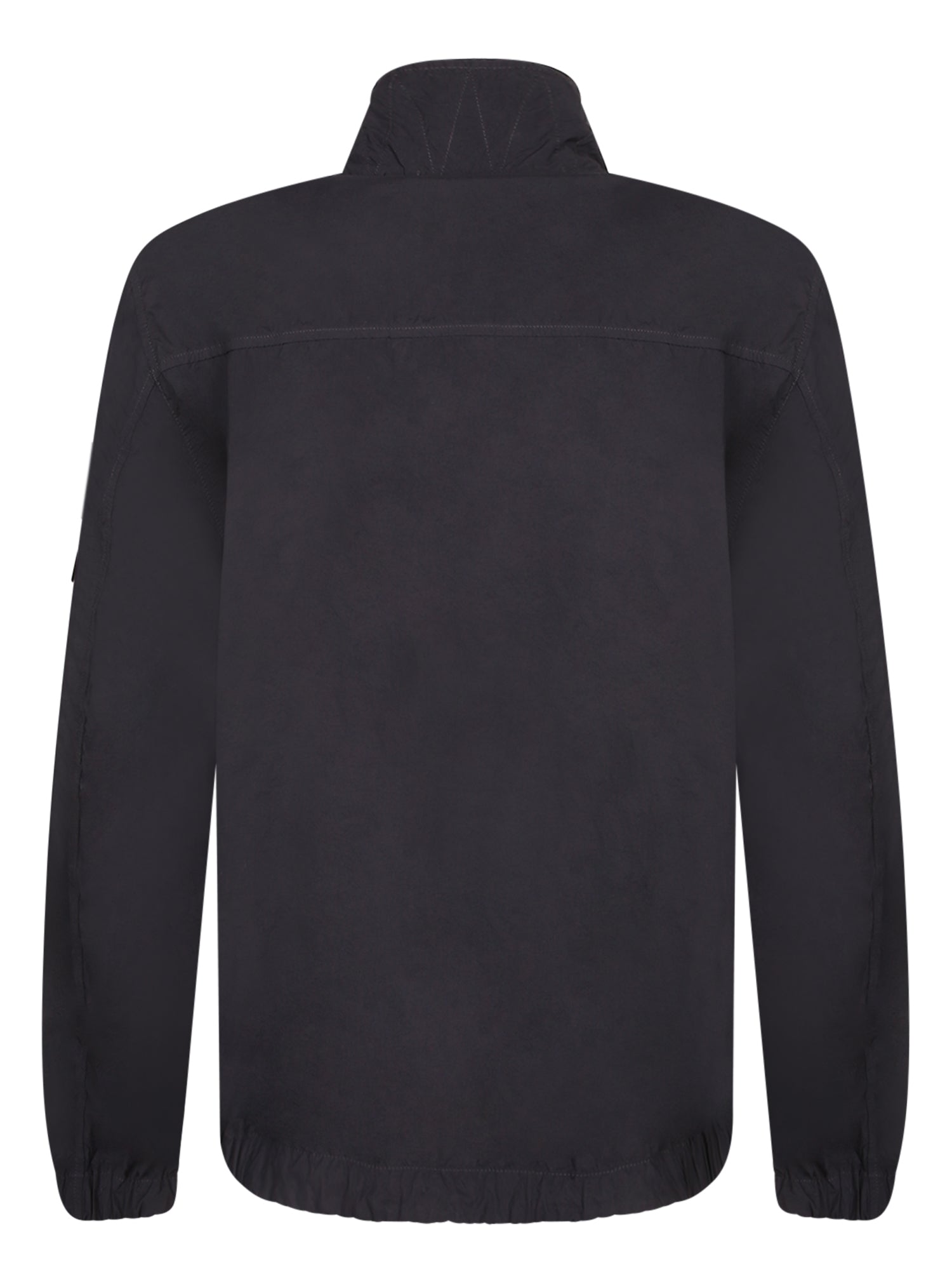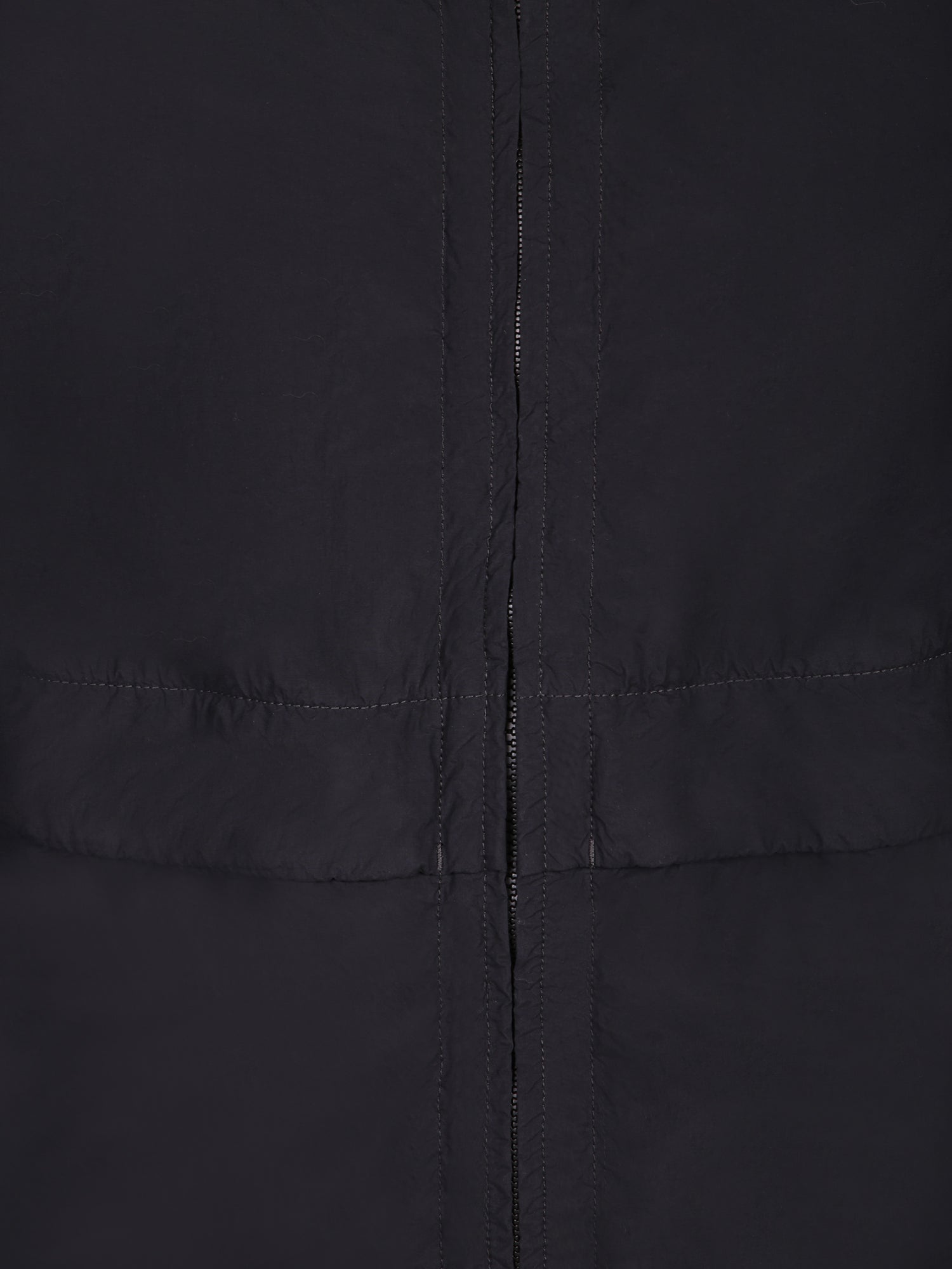 Brushed nylon fabric. High collar, minimalist details. Zip closure.