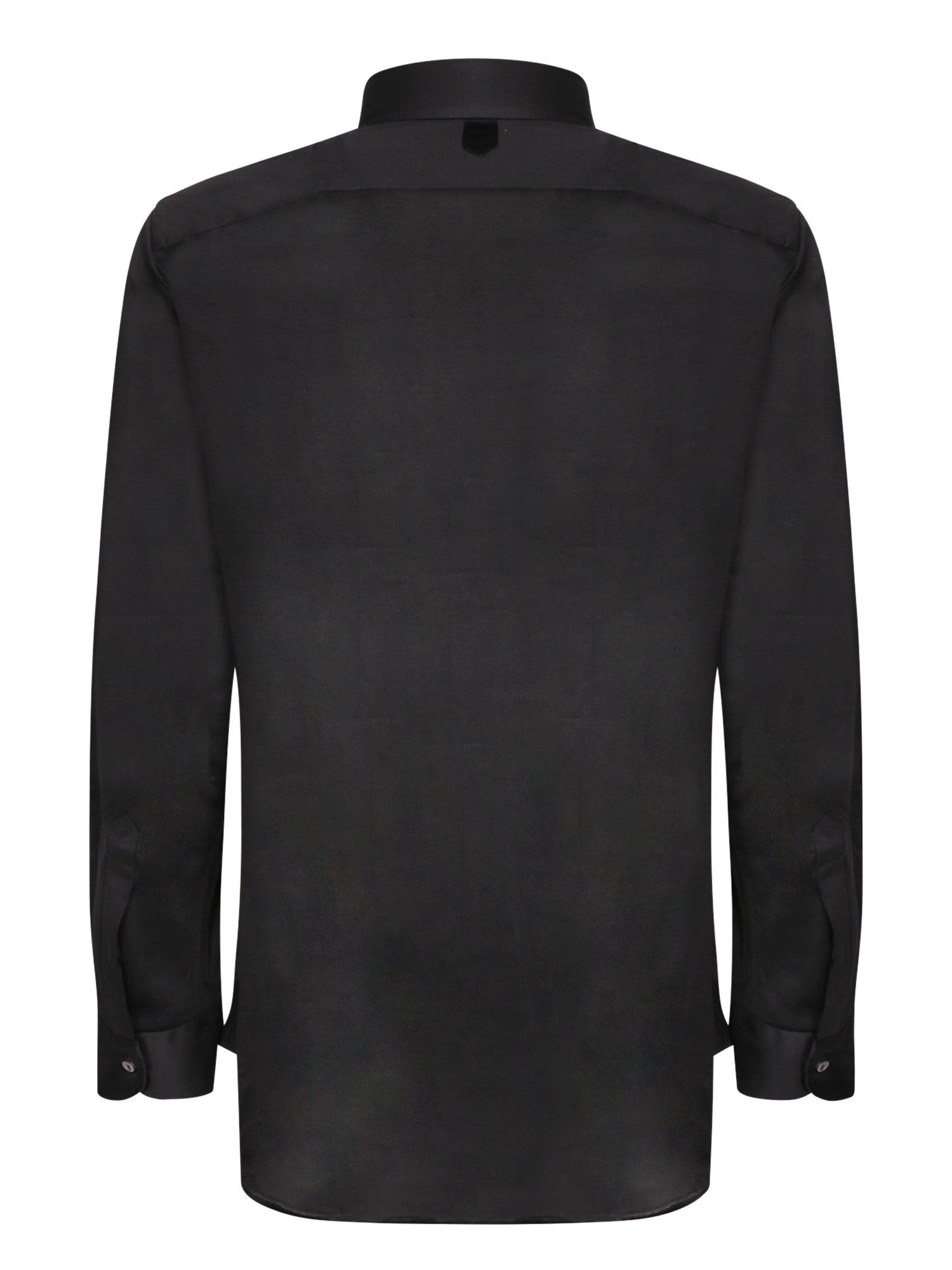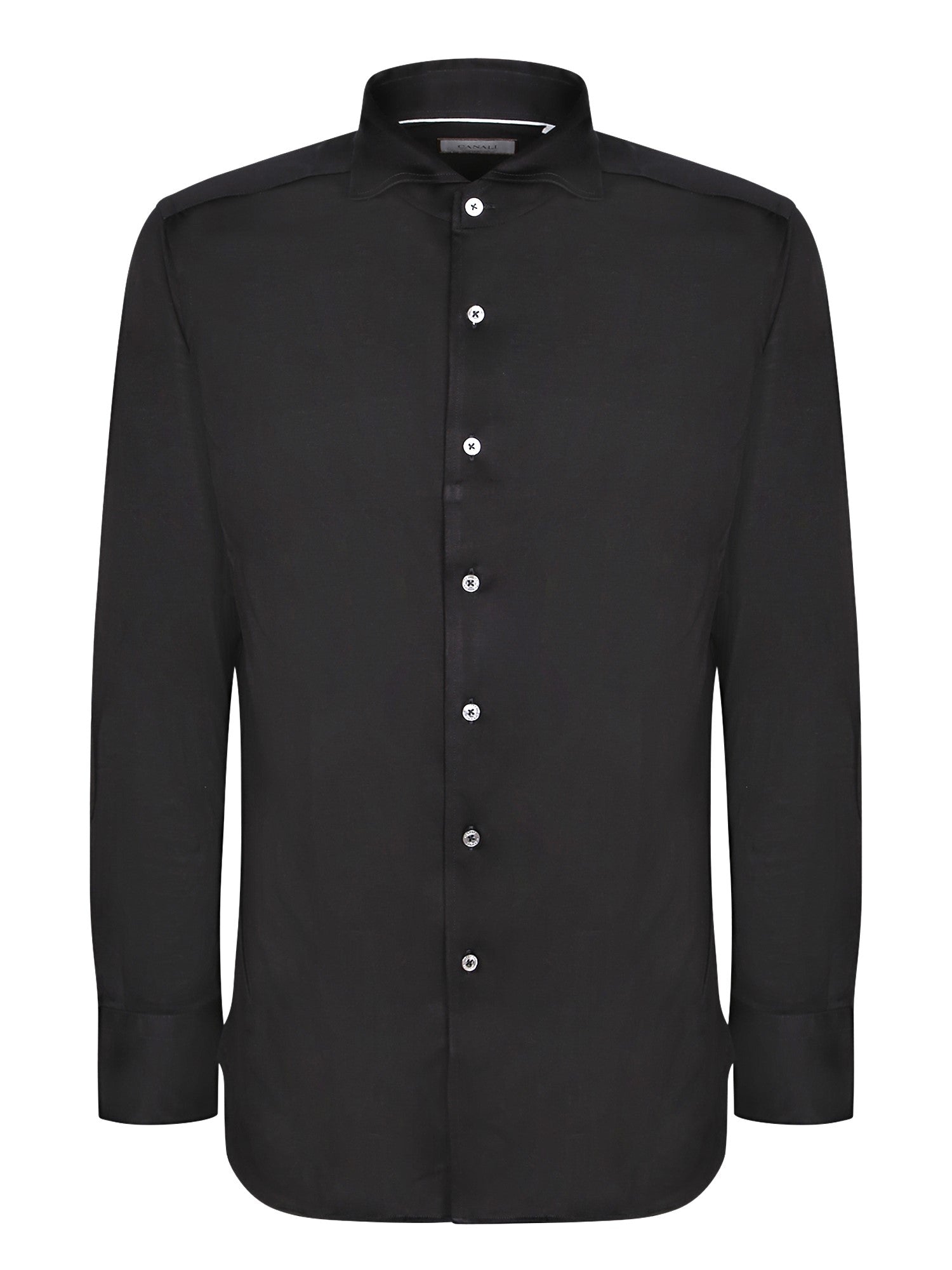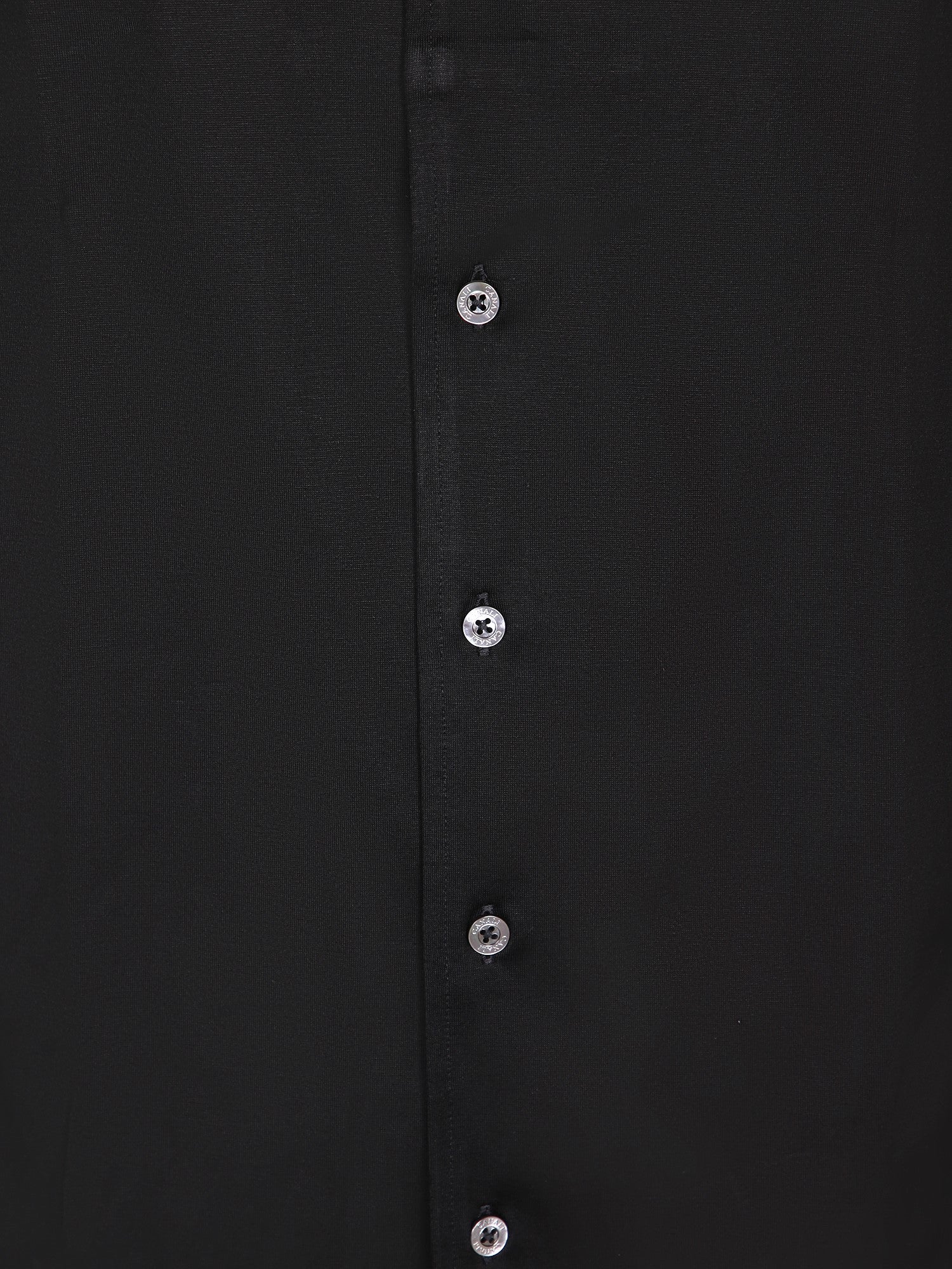 Long sleeve black jersey shirt. Italian collar and front button closure.
