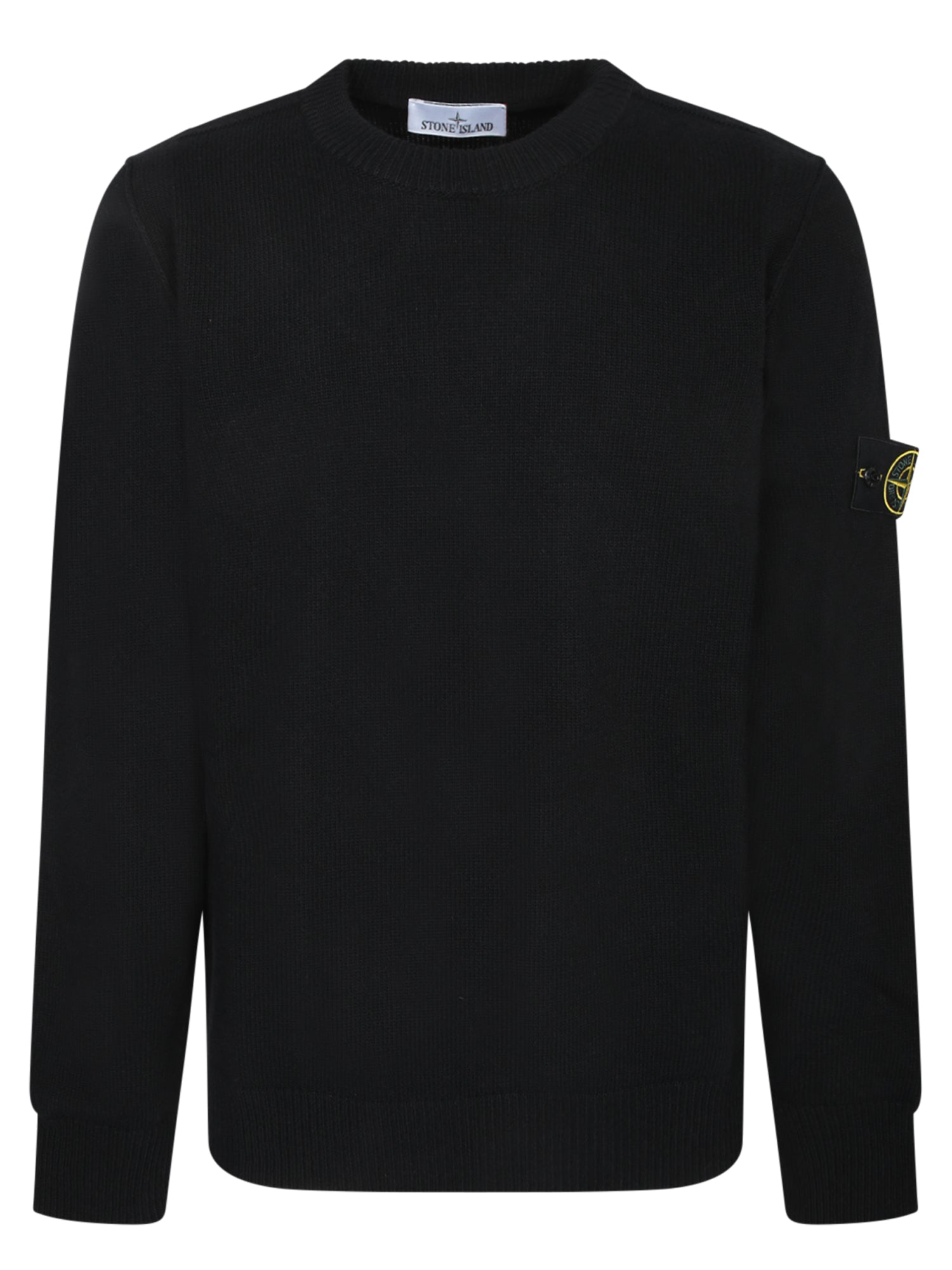 Crew neck sweater in pure lambswool. Ribbed finishes. Logo patch on the sleeve.