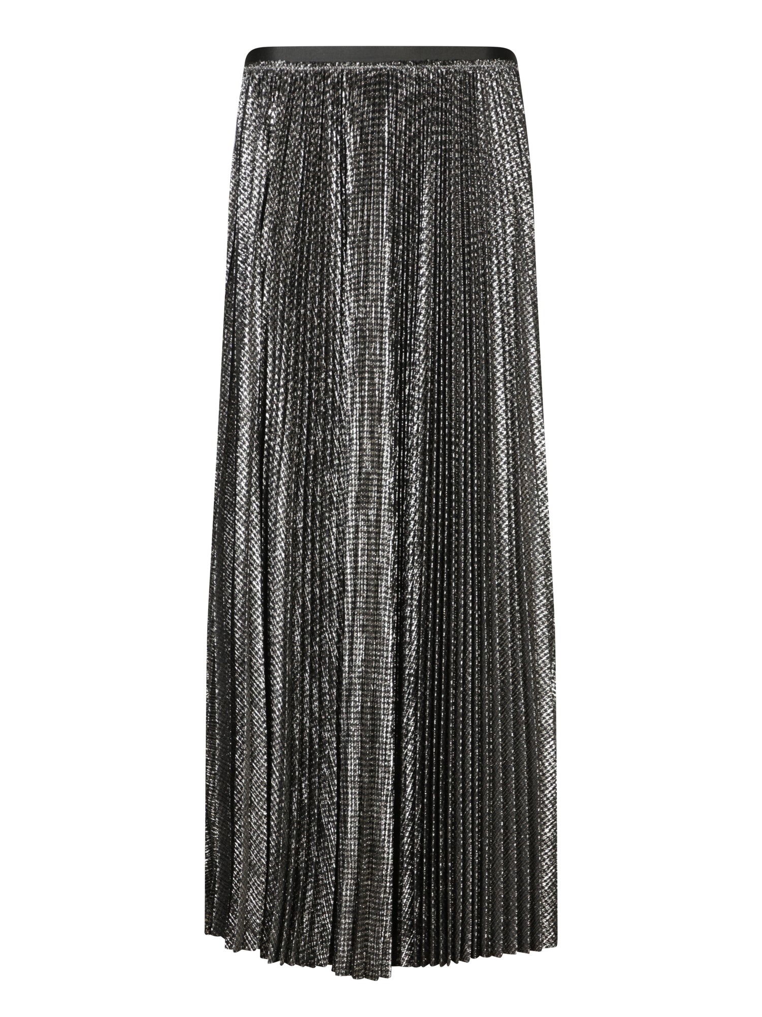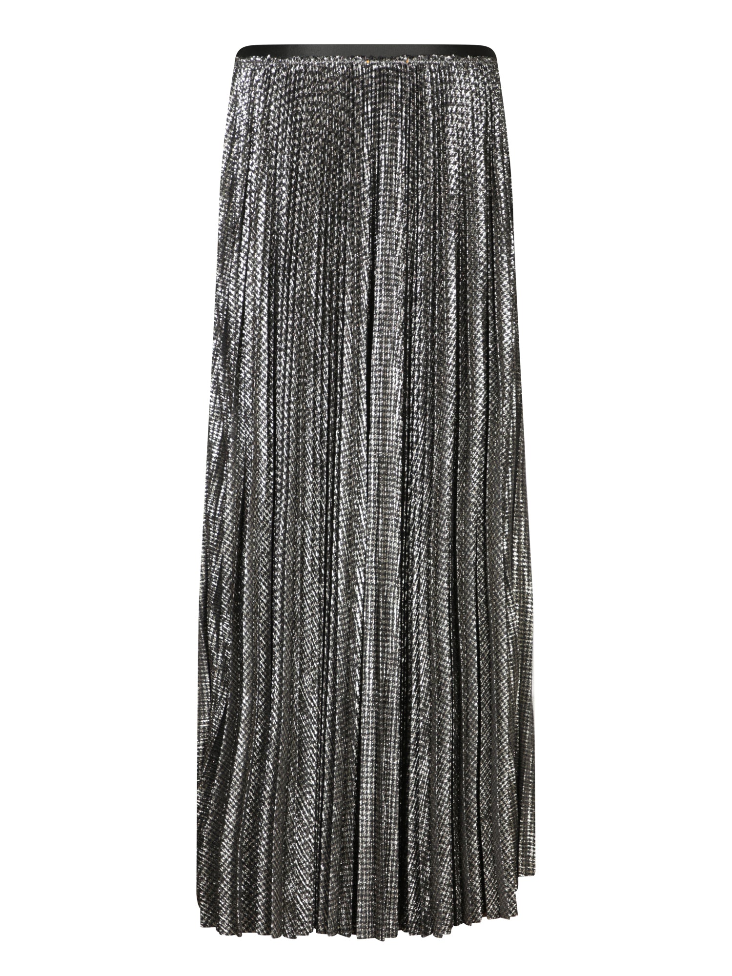 Laminated long skirt. Fluid pleated cut. Elastic waistband.